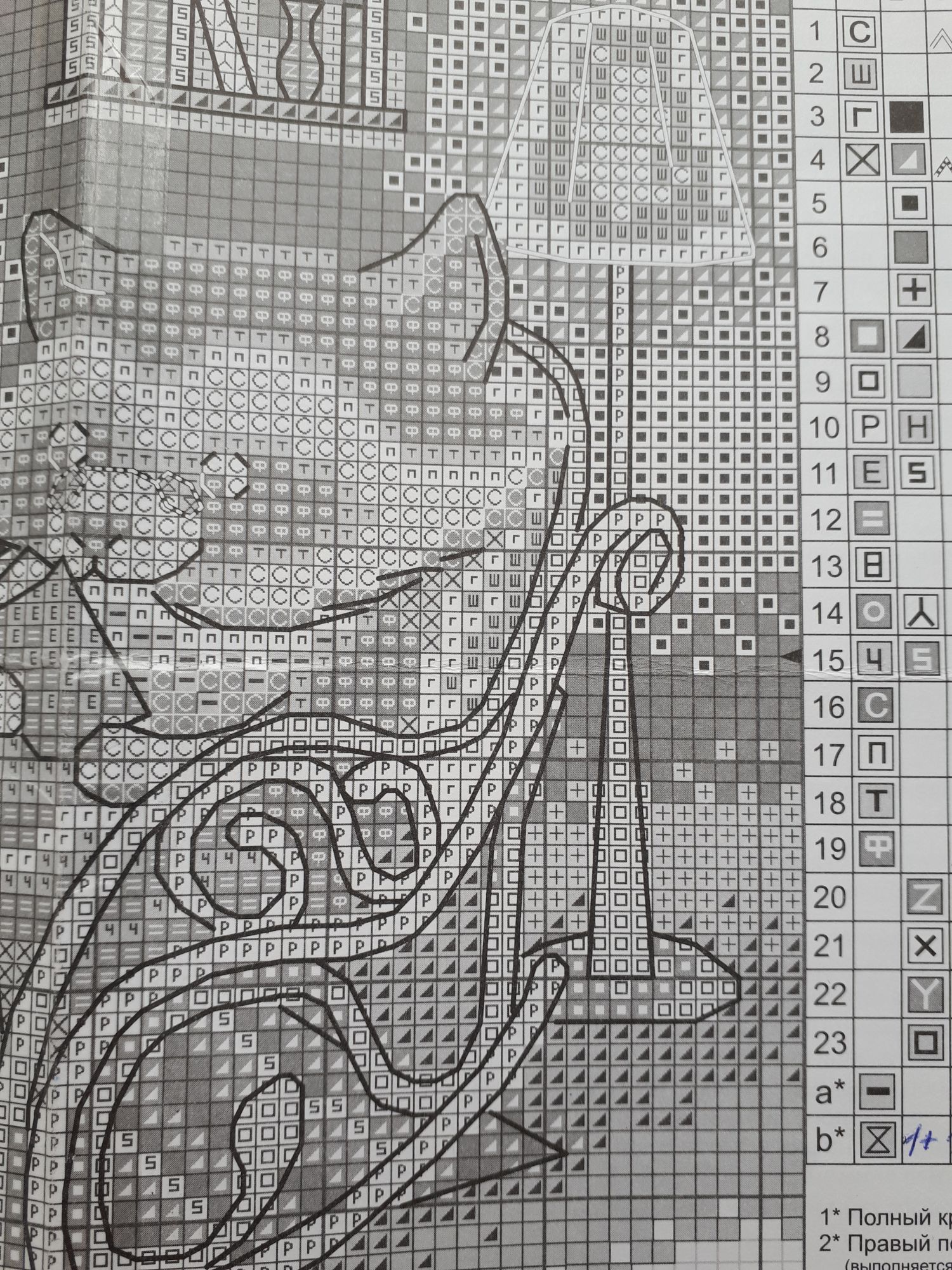 12 марта 2020 7 минут назад, korund сказал(а): А мне нравятся черно-белые схемы, на них удобно отмечать уже вышитое Черно-белые схемы я лублу Тоже фломастером вычеркиваю отшитое. Но здесь не черно-белая четкая схема, а одна серость. На фотографии может быть выглядит более контрастно, чем в жизни, но в действительности многие символы сливаются, тяжко глазам korund сказал(а) спасибо Поделиться сообщением Ссылка на сообщение