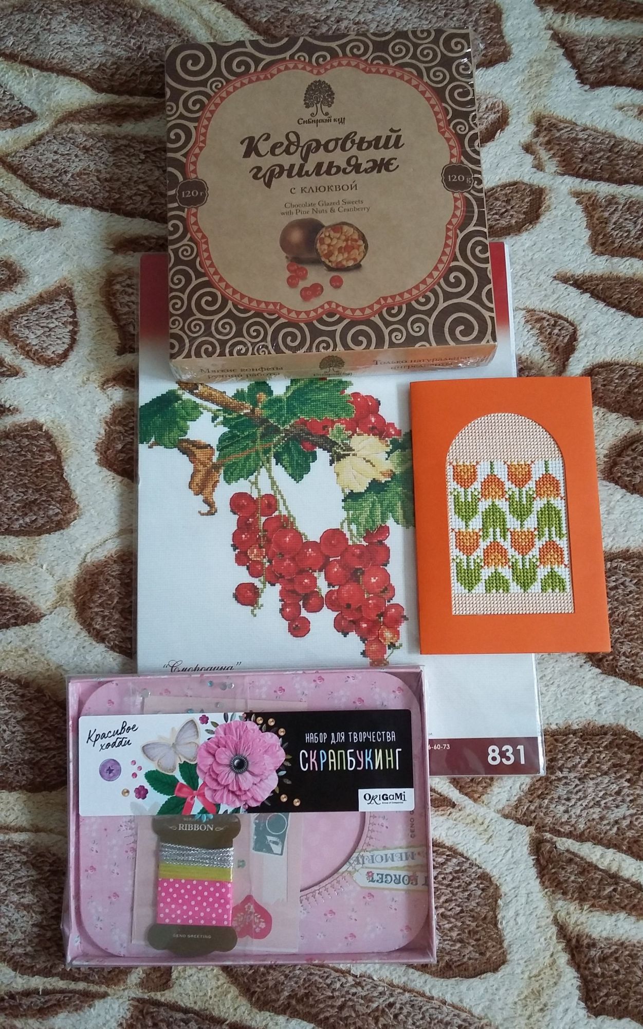 11 июля 2018 Итааааак...... Все готовы после небольшого затишья в нашей темке любоваться и радоваться чужим подаркам?:)))) тогда начинаю.... Последнее время я как то потерялась в календаре... Я конечно же знала, что приближается мой ДР,что уже наступил июль со своими множественными праздниками ( дело в том, что в течении 10 июльских дней в нашей семье у ближайших родственников 5 ДР (!!!), в том числе у меня и у моего мужа), но все равно мне казалось это где то еще далеко впереди, времени вагон, ан нет! !!! всё это уже настолько близко оказалось! Вчера вечером получила сообщение, что подарок меня уже ждет на почте. Время 19-30.... До окончания работы почты 30 мин... Но мне то уже жжет! Вы наверно понимаете меня, да? я не могу отложить получение на следующий день.... Выключаю готовящийся на плите ужин, ноги в руки и на почту, благо муж вернулся с работы и довез меня. На почте никого! счастье:)))) Получив подарок почувствовала себя именинницей ! Моей феей стала Марина arunrie из Новосибирска! Общий вид подарка . Я очень люблю зеленые, желтые, оранжевые цвета во всем: в одежде, в интерьерах квартир, в каких то мелочах, И вот я получаю такую позитивную открытку , солнечную, красивую, да еще и с теплыми пожеланиями! Приятно? еще как!!!!:))) В качестве подарка Марина выбрала мне набор от Овна . И хотя этого набора и нет у меня в списке желаний, но я на него часто засматривалась...Красная смородина у меня четко ассоциируется с моим ДР, потому как созревает в середине июле, и её заготовка на зиму как раз приходится на наши праздники... А как я люблю морс из красной смородины с малиной попивать зимой, мммммм..... ну это я отвлеклась.... Мариночка, спасибо, угодила!:)))) Еще Марина подарила вот такой набор для скрапбукинга для изготовления фоторамки, обязательно сделаем с дочкой, фоторамки мы еще не делали, все открытки да открытки:))) А ведь, девочки, все мы с вами тут занимаемся скрапбукингом! Помимо вышивки мы зачастую украшаем наши открытки разными интересными штучками! Ну и напоследок десерт! Коробка конфет . У нас таких нет. Мне всегда хотелось попробовать разные сладости из разных регионов, потому что я сладкоежка, я все это очень люблю, особенно что-нибудь необычное! Грильяж я вообще обожаю (Марина, как ты узнала об этом?:)))) ), а кедровый никогда не пробовала... на праздник открою! Марина! Спасибо тебе большое за подарок! Он получился очень милый и добрый! Ты подарила мне настроение! Мой праздник начался! И начался очень классно!!!!!!!!!!! СПАСИБООООООООООО!!!!!!!!!!!!!!!!!!!!!!!!!!!!! zdorelli, nogres, arunrie и 15 других сказали спасибо Поделиться сообщением Ссылка на сообщение