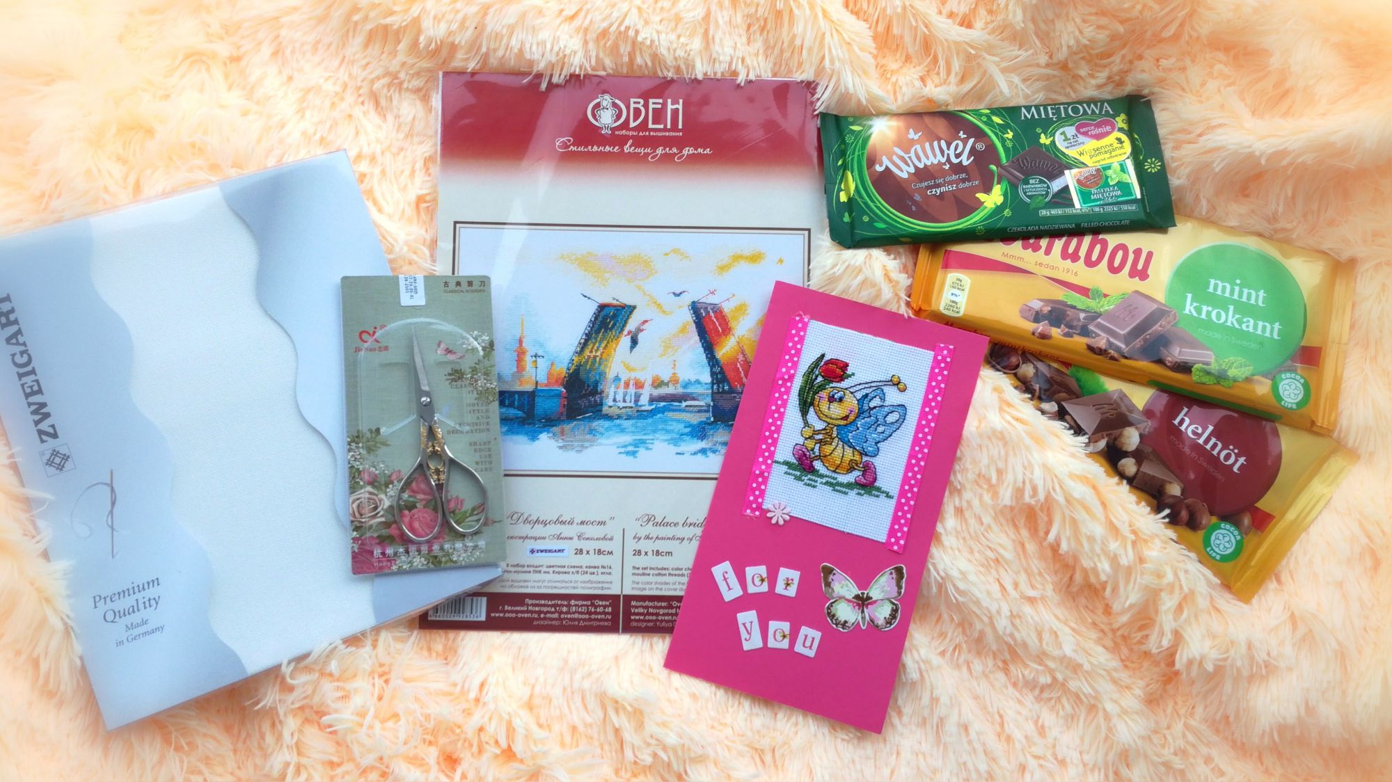 30 августа 2018 Девочки,всем привет!!!! А знаете,почему я прибежала вприпрыжку в темку,вся радостная и воодушевленная????? Даааааа, всё это потому что я принесла вам вкуснющий отчетик!!!!))))) И опять получила я свой подарочек совершенно случайно и неожиданно!!пошла на почту по своим делам,а ушла - нет поскакала,как маленькая девочка - с подарочком!! В общем, до дома я не вытерпела и распаковала заветный пакетик прямо на полянке около почты! Разгрызла буквально!! На этот раз моей феей-волшебницей оказалась Анюта Платиновый Ёж)) и она самая настоящая партизанка!! Общаемся постоянно, играем в робин,а она даже ни капельки не раскололась!))) Аня, медаль тебе!! А вот и мои сокровища!!! Ммммммм,какая же я довольнаяяяяя и счастливаяяяя!!! Посмотрите какая мега-позитивная открыточка: Эта бабочка не может не вызывать волну позитива!! когда достала её из конвертика, расплылась просто в улыбке!! К тому же, очень примечательно и мило,что от Ани прилетела ко мне именно бабочка - ведь в своей самой первой игре на форуме (Лавка желаний) я для Ани вышивала бабочек)))) К тому же,Аня,зная моё трепетное отношение к прекрасному и неповторимому Санкт-Петербургу, подарила мне набор с любимым Дворцовым мостом! можно сказать,что петербурженка прислала мне частичку Питера!)))) А ещё у меня теперь есть настоящие вышивальные ножнички!!!!!до этого пользовалась обычными маникюрными… а теперь я настоящая вышивальщица!!!))))они такие красиииивые!!! а ещё Аня позаботилась о моих запасах равномерочки,которую я полюбила окончательно и бесповоротно!))) Ну,и конечно же, какие вышивальные вечера без чашечки чая и вкусняшек??? Анюта прислала мой горячо любимый финский мятный шоколад... а для моих маленьких сладкоежек - с орешками!!)))мммммм))) мы все замурчали от удовольствия!! АНЮТА, СПАСИБО ТЕБЕ БОЛЬШОЕ-ПРЕБОЛЬШОЕ ЗА ЭТОТ ЧУДЕСНЫЙ ТЁПЛЫЙ ПОДАРОК!!! Словами не передать,как же это приятно и трогательно до мурашечек,когда с другого конца страны прилетают душевные поздравления и подарочки!!!! sette venerdi, yuss, dolli7 и 13 других сказали спасибо Поделиться сообщением Ссылка на сообщение