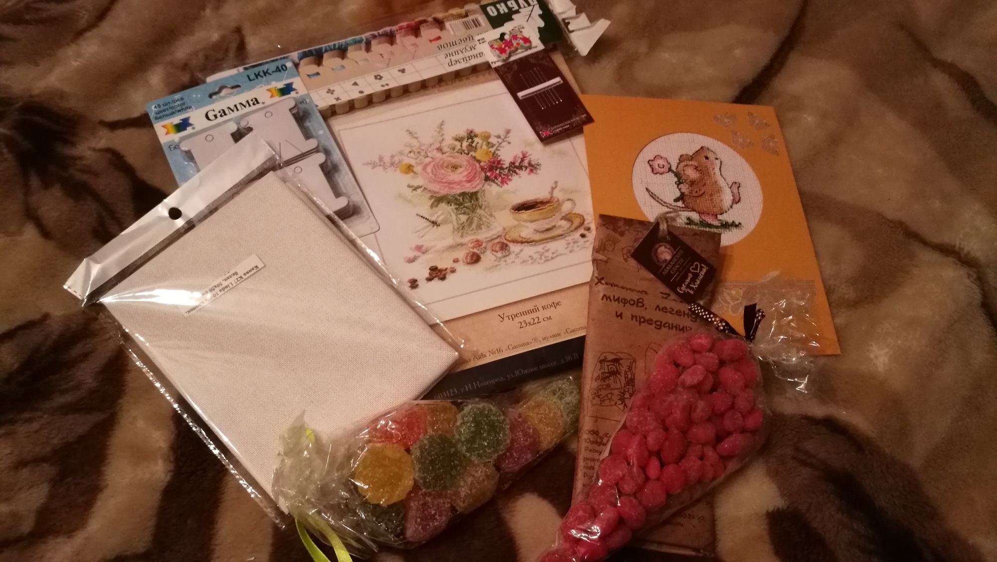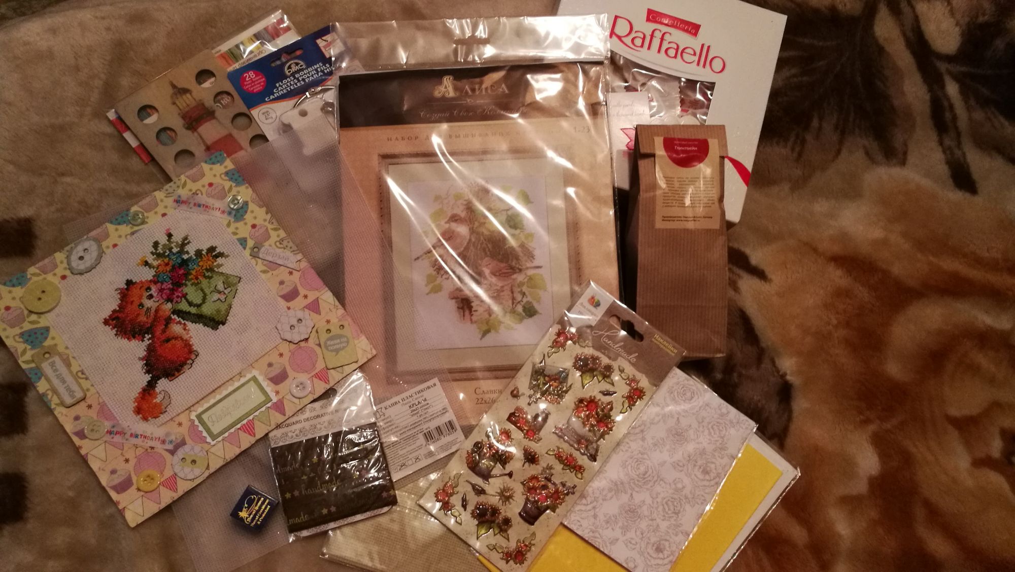 23 декабря 2018 Девочки, и я пришла с долгожданным отчетом! Простите мои дорогие феи за опоздание! Я приехала только вчера вечером и совершенно закрутилась в водовороте дел и хлопот связанных с днем рождения и просто выходных. Муж получил получил посылки еще в четверг, открыла и сфотографировала их только вчера вечером мне все просто безумно понравилось, собрано чувствуется все с любовь, заботой и мыслями о получателе Первым распаковался подарок от Ольги, это общий вид подарка. Чего тут только нет.. и сладости (шоколад, мармелад, клюква в сахаре ), бобинки, канва, магнитная игольница, иголочки, чудесный праздничный наборчик и замечательная открытка с очень трогательными и добрыми пожеланиями! Второй подарочек мне прибыл от Леночки и тоже ломился ворохом подарков! Здесь и чудесная открытка с добрыми и светлыми пожеланиями и еще одна гора сладостей и чая, заготовки для открыток, органайзер, бобинки, и замечательный набор! Сижу теперь и руки чешутся начать все три набора сразу... я невероятна благодарна этой игре, девочкам и форуму за радость в этот день рождения, который начался немного раньше и продлился дольше обычного!!!! Moshika, Olechka19, dolli7 и 9 других сказали спасибо Поделиться сообщением Ссылка на сообщение