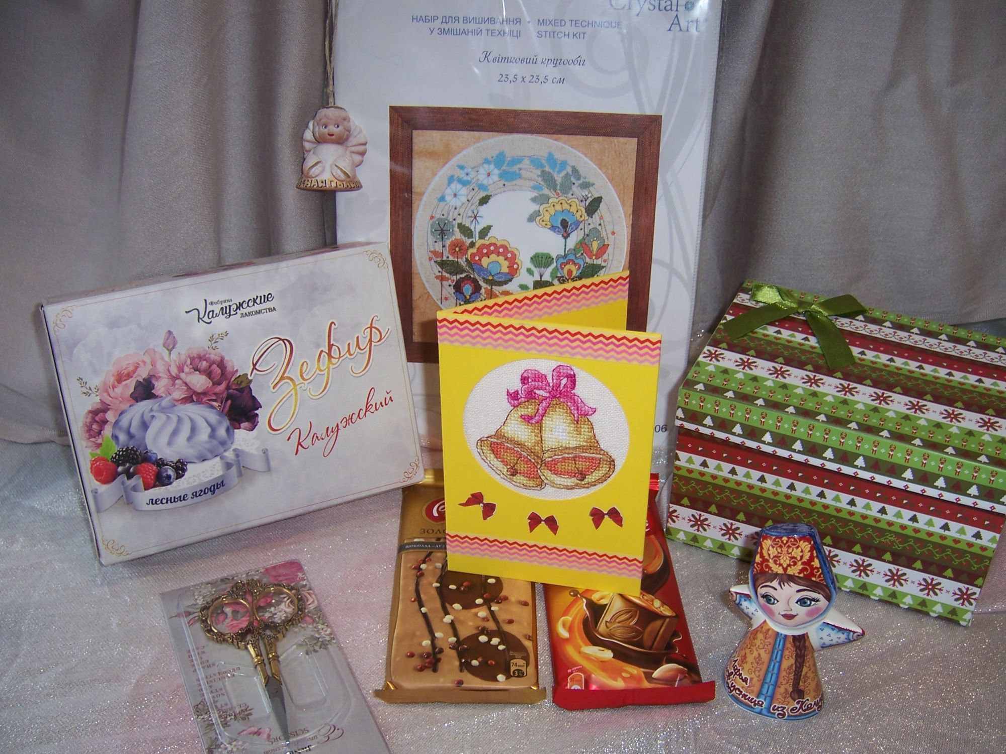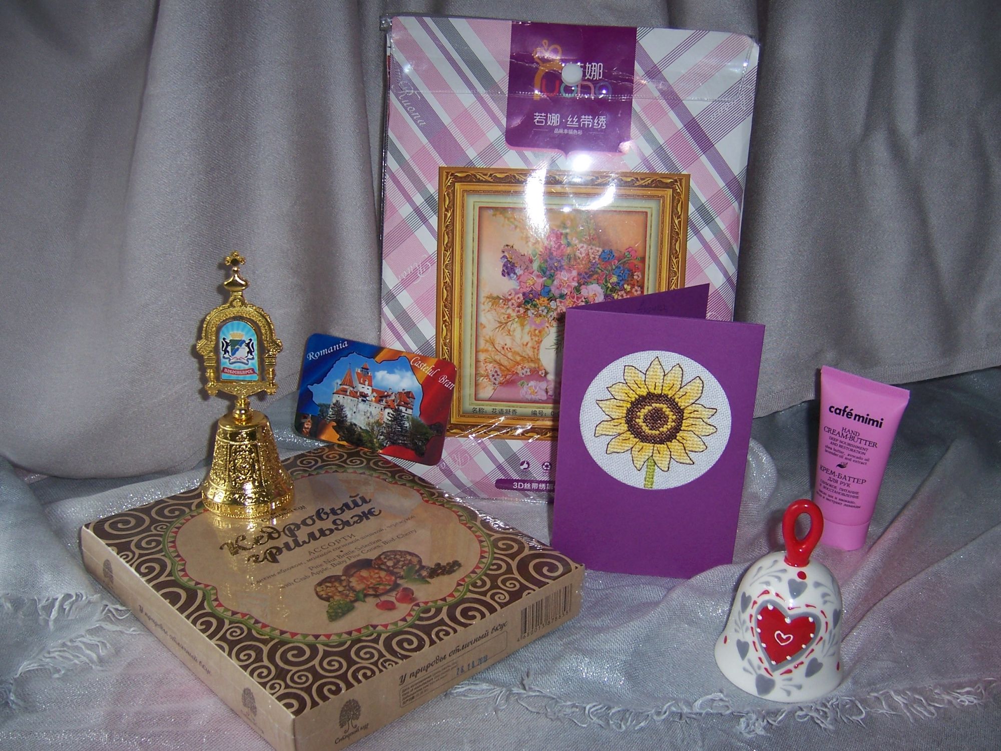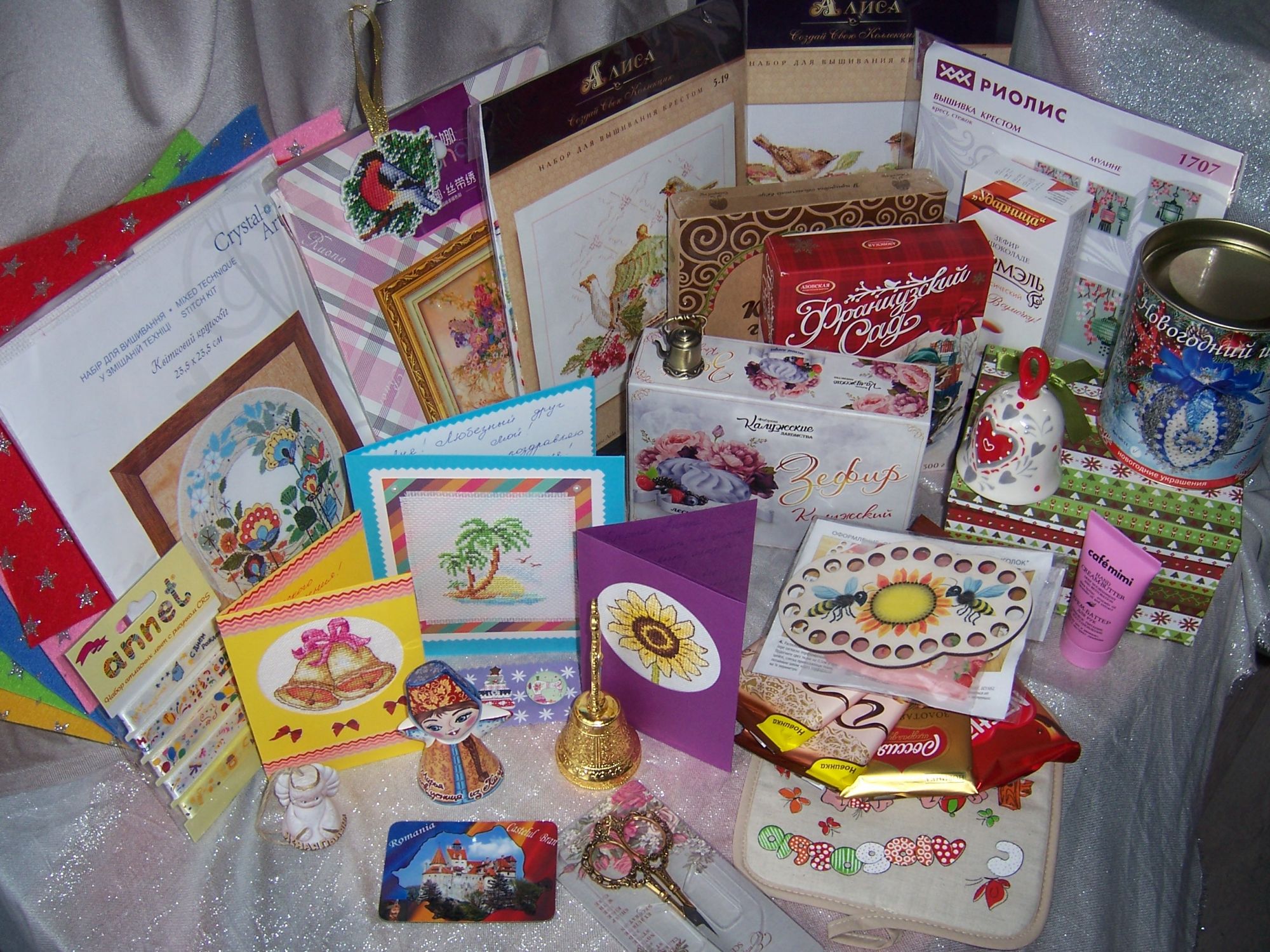 27 декабря 2018 Дорогие мои! Я пришла отчитаться! А точнее, поделиться своей радостью похвалиться (похвастаться, в смысле) и похвалить! Это нечто! Игрок из меня тот ещё: то с отправкой проблемы, то с получением. Отчёт тоже не даётся просто: вышел из строя смартфон, который сегодня выполняет все функции по взаимодействию с миром. Восстановить его работоспособность пока не удалось и, чтобы выполнить обещание и приятную обязанность отчитаться за полученные подарки, выгребла из чулана кучу проводов, всю старую технику (как быстро это выходит из оборота! Ещё года 3-4-5 назад я всеми этими устройствами пользовалась и считала себя почти продвинутой и современной). А сегодня еле разобралась: старый ноут с западающими кнопками, но новым ПО не хочет взаимодействовать с битым жизнью фотоаппаратом, у которого к тому же вытекла от старости батарея! Можно снять комедийную короткометражку "Провода и подарки". Вспомнила все старые навыки (инженера-электроника ), добавила немного смекалки и, ловя жалкие лучи, пробивающегося сквозь серое небо, солнца, перефотографировала всю гору сокровищ, полученных одновременно вчера! ИТАК, ОТЧЁТ! 1. Пакеты вскрывала, не читая надписи, сохраняя интригу до конца. В первом пакете оказался красивый свёрток в подарочной бумаге. Каково же было моё изумление, когда я развернула открытку и, прочитав поздравления, увидела подпись отправительницы! Это: МАРИНА arunrie! Потрсающе-красивая открытка с подсолнухом! Лаконичная, но несколько минут не могла отвести глаз - рассматривала. Какая-то мистическая красота, завораживающая есть в этом цветке! Я влюблена! Далее: колокольчики!!!! С Новосибирском и "про любовь" , кедровый грильяж с разными вкусами, магнитик из Румынии ( там я не была) и какой-то не ведомый мне набор! Потрясающий букет лентами! О, Боги! Красотень неимоверная! Марина, спасибо тебе большое за такой стильный подарок! 2. Следующий пакет содержал наглядное пособие по упаковке ценностей, это я говорю с восхищением, ибо, вынимая содержимое, старалась понять и запомнить принцип бережного и рационального размещения предметов, сохраняющих при этом праздничный и презентабельный вид! Кудесницей оказалась ОКСАНА ksen40. Колокольчики! Глянули на меня с открытки и зазвонили праздничным звоном в ушах и мыслях - о празднике рождения, о новом годе! Такие радостные, нарядные) Набор из моего списка (кого-то он /список/ наверняка приводит в ужас, но Оксана не поленилась пролистать его дальше цатой страницы , что само по себе - подвиг), сладости и обалденные ножнички! А ещё два совершенно изумительных колокольчика: Ангел из Ясной поляны и Марья Искусница из Калуги ! Оксана, спасибо тебе преспасибо! 3. Следующий подарок был упакован в коробку, которая как сундук, доверху была набита сокровищами! Сначала прочитала письмо! И опять изумление - это ОЛЯ Olechka19! Вот уж, воистину, фортуна игровая непредсказуема! Сначала я Оле готовила открытку, а теперь она меня поздравила! Спасибо тебе, Оленька, за все тёплые и душевные слова, написанные мне красивым (!) почерком , очень-очень приятно! Итак, открытка "про меня": , а далее целый клад! Наборы (аж 3 штуки!): парочка из списка желаний и один новогодний с фонариками, ... весенними! Сладости, магнитные игольницы, тесьма, деревянный огранайзер для мулине с игольницей, которую нужно сначала самостоятельно сделать! В этом подарке по