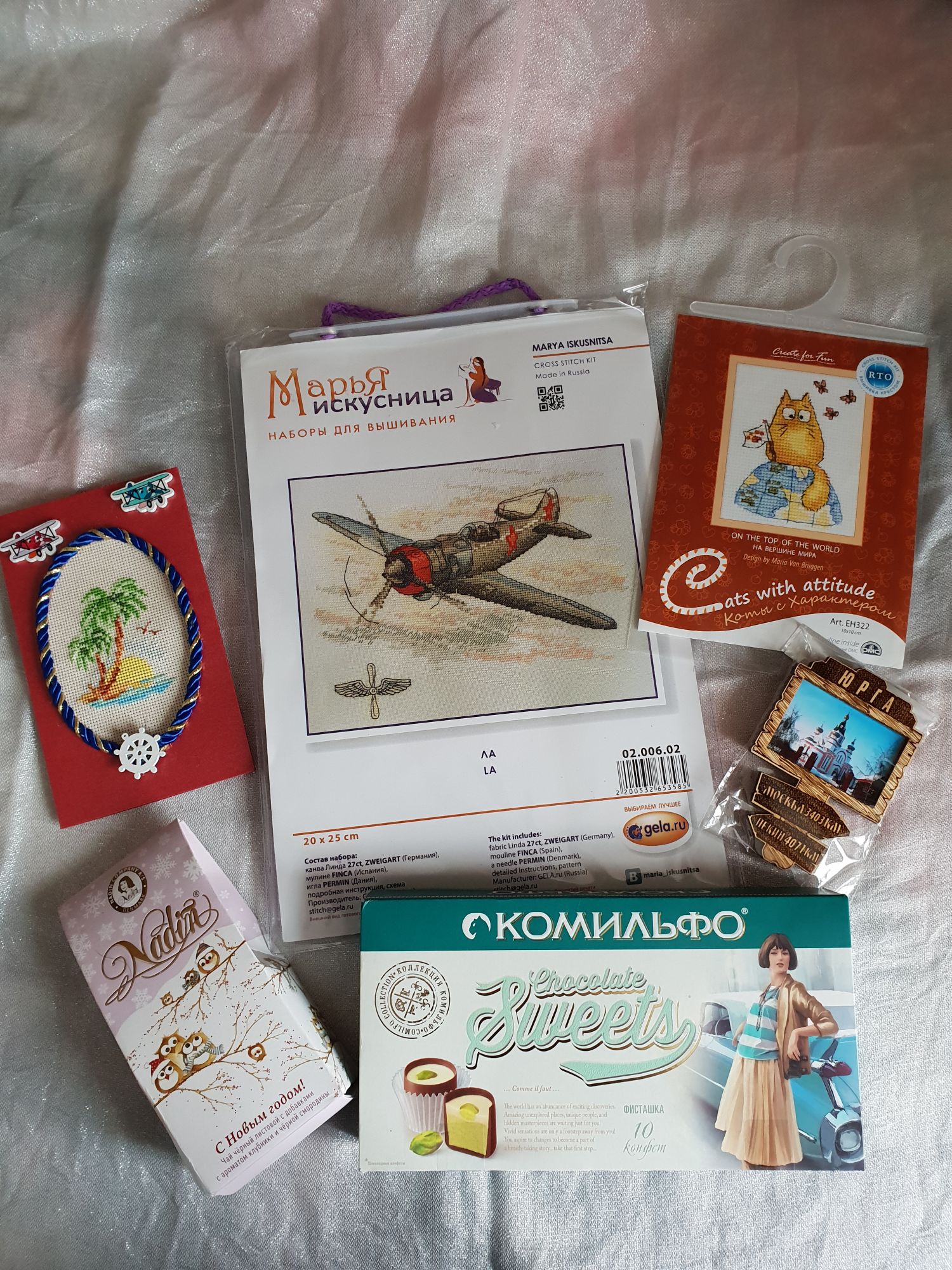 30 декабря 2018 3 часа назад, yuss сказал: Лена, я очень рада, что подарочки понравились! С открыткой был эксперимент: первый раз вышивала ее не по набору, поэтому оформление немного "повело". Самой этот песик очень нравится) Решила дополнить сюрприз маленькими наборчиками, т.к. сама в последнее время очень люблю вышить по быстрому и увидеть готовый результат. Извини, что подарочек немного задержался, перед новым годом просто еле выбралась на почту. Еще раз с прошедшим днем рождения и с наступающим новым годом))) Юлечка, спасибо еще раз за поздравления и открытку! Она, правда, прикольная с таким сюжетом ! Посмотреть на нее и не улыбнуться - нельзя))) А то что подарочек задержался, так это даже мне к лучшему. У меня две последние недели декабря получились празднично -подарочными! K_AnnA_D, KoViVi, nogres и 1 другой сказали спасибо Поделиться сообщением Ссылка на сообщение