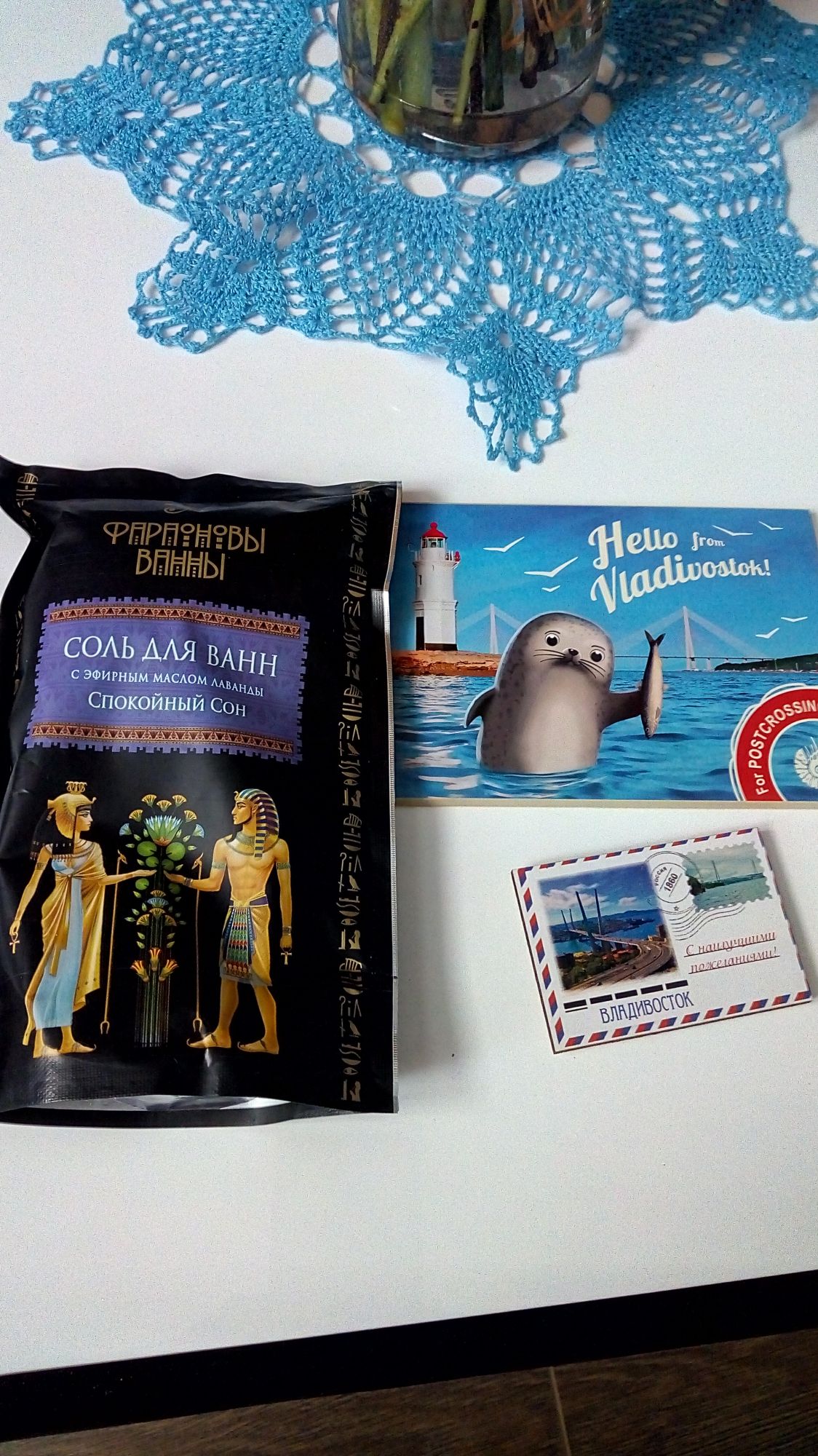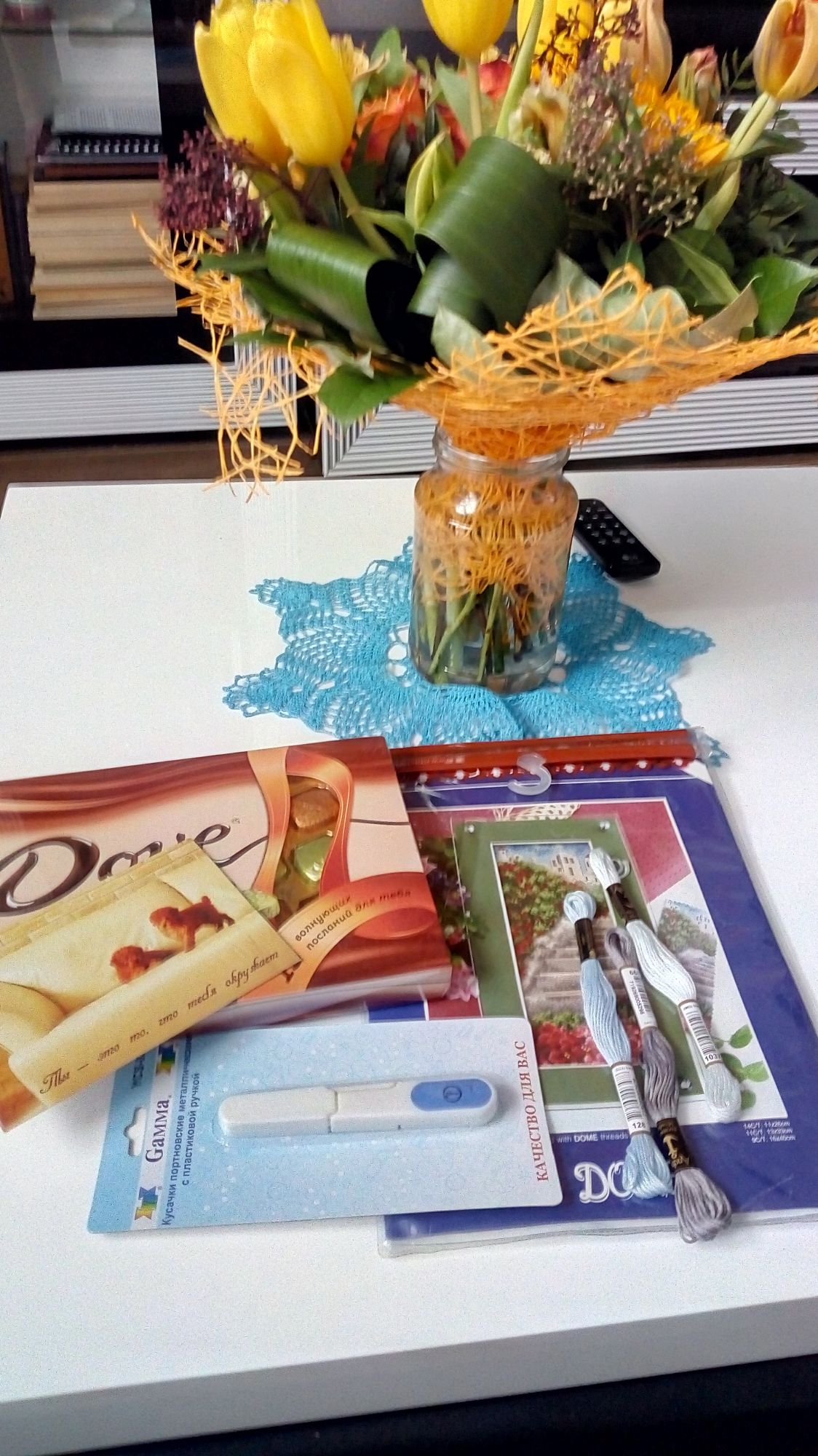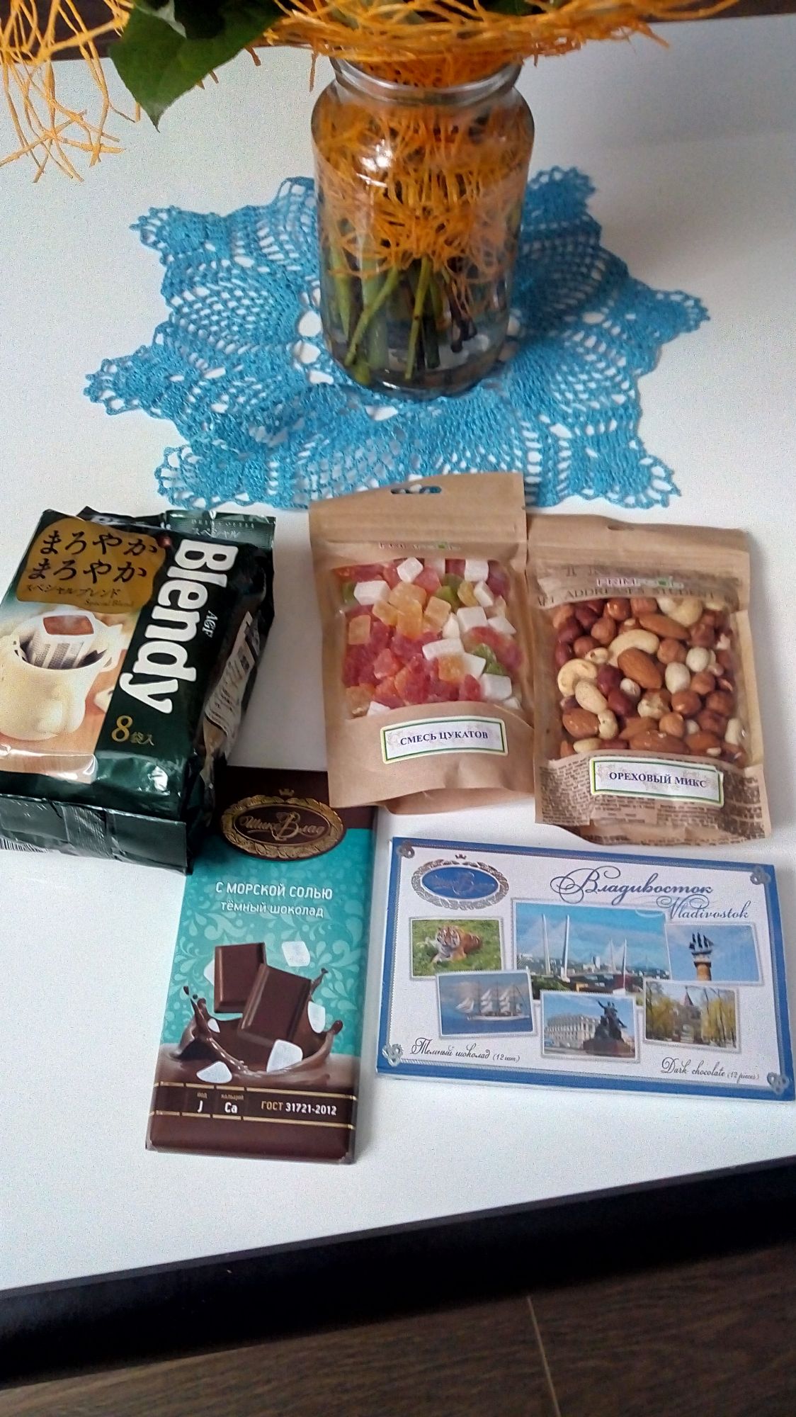 4 марта 2018 Девочки, как и обещала рассказываю все по порядку, т.е по мере поступления извещений. Первый подарок от Анны из Владивостока, я бы сказала подарище: много не только вышивальных подарков, но и вкусняшек. Это общий вид подарка в кадр еле всё поместилось. Два наборчика из моих хочучек, тесьма для рукоделие и необычные ниточки, надо про них почитать в интернете. Посмотрите какая классная открытка с пирожным, внизу киска и пинкипчик ( буду по- твоему образцу сама учиться такие делать) тоже с киской. Я много принимала участие в разных играх на форуме и всегда мечтала, чтобы пришел сюрприз с Дальнего востока, очень хотелось вкусняшек попробовать, которых не купишь больше нигде. Мечта исполнилась, посмотрите сколько вкусностей теперь у меня. И ещё для ознакомления с городом набор открыток, там такие фотографии Владивостока классные. Очень красивый город, мечта есть его посетить, прогуляться по проспектам с необычными названиями. У меня муж был там в командировке, купил тогда красную икру на Светланском проспекте. Ещё в подарке была морская соль и магнитик. Аня, огромное спасибо за такой щедрый и интересный подарок! Следующее извещение пришло от Люьы- Жалейки, мы с ней уже пересекались в одной из игр, судьба нас снова свела вместе. Это общий вид подарка. Когда открыла почтовую коробку, первым делом на меня смотрел кот с дивана ( мой желанный наборчик). Я ахнула и давай доставать остальные подарки. Это были бобинки, лента декоративная и канва для вышивания салфетки ( я даже не знала, что фирма Гамма такие выпускает). Отрыточка- сама шедевр, такая трогательная и сделана на пять с плюсом. Шоколадки и смесь из орехов и сухофруктов- мои сладости и взрослое баловство. Люба, я счастлива от получения такого подарка, спасибо-спасибо! Третий подарок получила от Елены, от aleksaA. Только Марабелька показала подарок от Лены и вот смотрите на второй от нее подарок. поближе набор, ниточки Анкор, вспарыватель( у меня его не было) и открыточка . Ну и ,конечно, конфеты. Леночка, спасибо, довольна очень! После таких подарков хочется вместе с Вами сесть за праздничный стол, угостить Вас тортиком с чаем и поболтать на рукодельные темы и планы по вышиванию. Ещё раз спасибо за посылочки. Пикусёнок, irinka-mandarinka, sette venerdi и 15 других сказали спасибо Поделиться сообщением Ссылка на сообщение