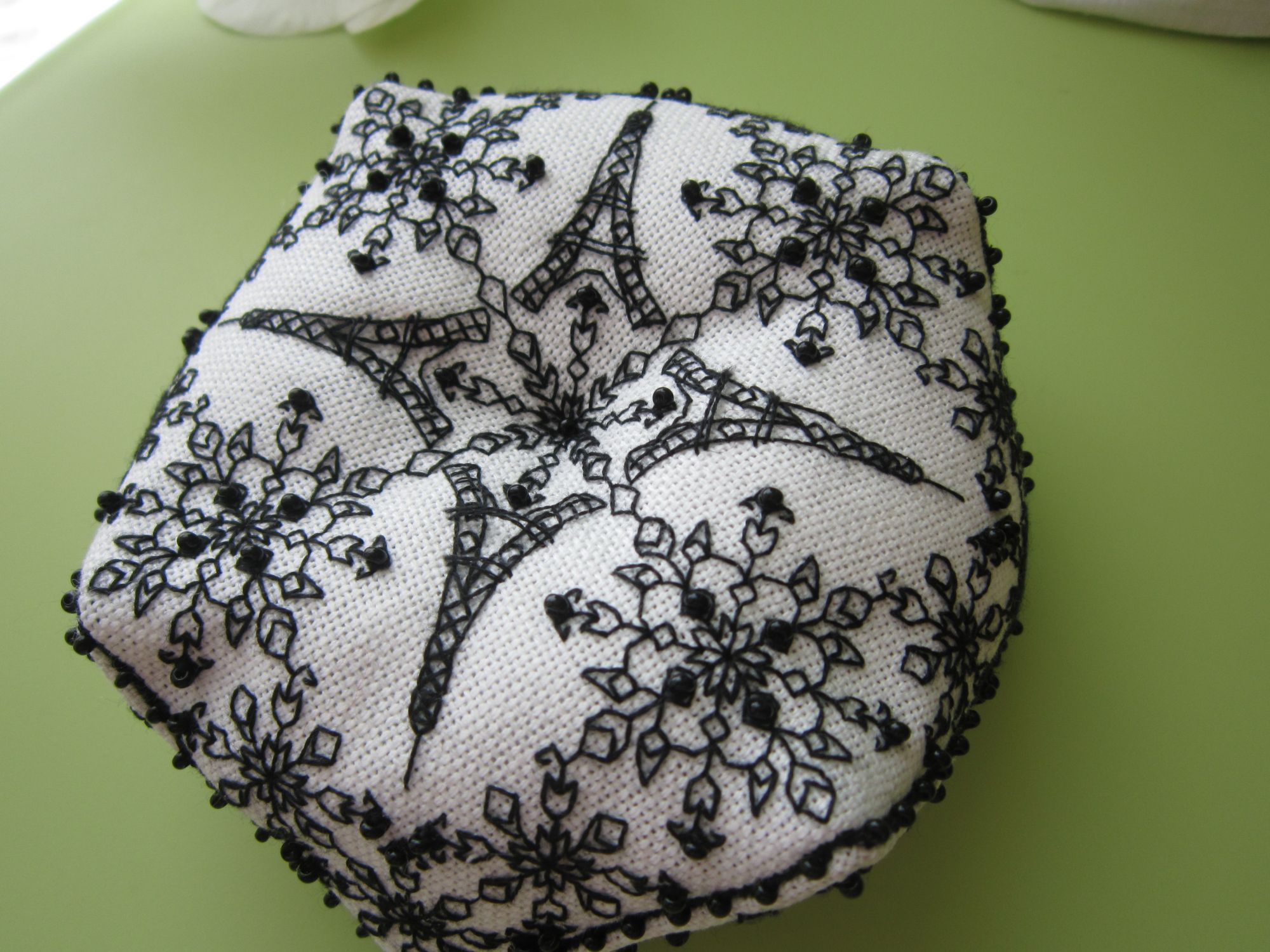 3 апреля 2018 Всем привет! Так случилось, что, не подозревая о весеннем конкурсе "Необычные вышивальные техники" я еще в конце января начала вышивать очаровательный дизайн La Tour Eiffel по схеме Елены Душкиной-Шатт. Этот дизайн предпололагает вышивку бискорню в технике блэкворк. Бискорню вышивалось в подарок моей замечательной подружке тезке, да еще и художнице и вышивальщице с очень хорошим вкусом. Поэтому к выбору рисунка я подошла очень осторожно – нужно было что-то очень изящное и, безусловно, красивое. Елена в своей схеме предлагает свободу выбора как основы, так и ниток. Я решила остановиться на классике - «белое и черное». Основа – белая Линда 27 каунта, нить ДМС черного цвета. Сказать, что вышивка меня затянула – это ничего не сказать. Я специально вставала пораньше, пока мои мужички спят, чтобы вышить ниточку-другую. Орнамент крайне удачный – один элемент плавно перетекает в другой. Даже вышитые два-три элемента создают эффект изысканного, тончайшего и легчайшего кружева: Это совсем не похоже на утомляющий многих бэк. Блэкворк – это просто волшебство созданное всего лишь нитью одного цвета. Если времени для вышивки в достатке, то результат будет очень быстрым. У меня со свободным временем напряг, поэтому небольшая бискорню вышивалась довольно долго – пару месяцев. Вот что у меня получилось в результате: Пузико: Я необычайно довольна – главное чтобы одариваемая тоже оценила. Но об этом я узнаю только в начале лета, когда и сделаю подарок ( я люблю подготавливать подарки заранее, чтобы потом не переходить в режим ошпаренной кошки). И небольшая историческая справка: Скрытый текст Родиной блэкворка принято считать Восток. Именно оттуда эта техника вышивки попала в Испанию, а дальше и в остальные страны Европы. В 1501 году Екатерина Арагонская, дочь королевы Изабеллы Испанской и короля Фердинанда приезжает из Испании в Англию и вскоре становится супругой короля Генриха VIII. И в течение 25 лет, находясь у власти и обладая немалым влиянием, она сумела заразить сотни придворных дам своей увлеченностью и приверженностью вышивкой блэкворк, называемой в те времена «испанская работа», которые с удовольствием следовали примеру своей королевы, просиживая за пяльцами. Развод Екатерины и Генриха послужил тому, что Испания, как и все испанское, оказались в опале, а выражение «испанская работа» со временем заменили на «черная вышивка». bridgit, lamina-65, soln33 и 23 других сказали спасибо Поделиться сообщением Ссылка на сообщение