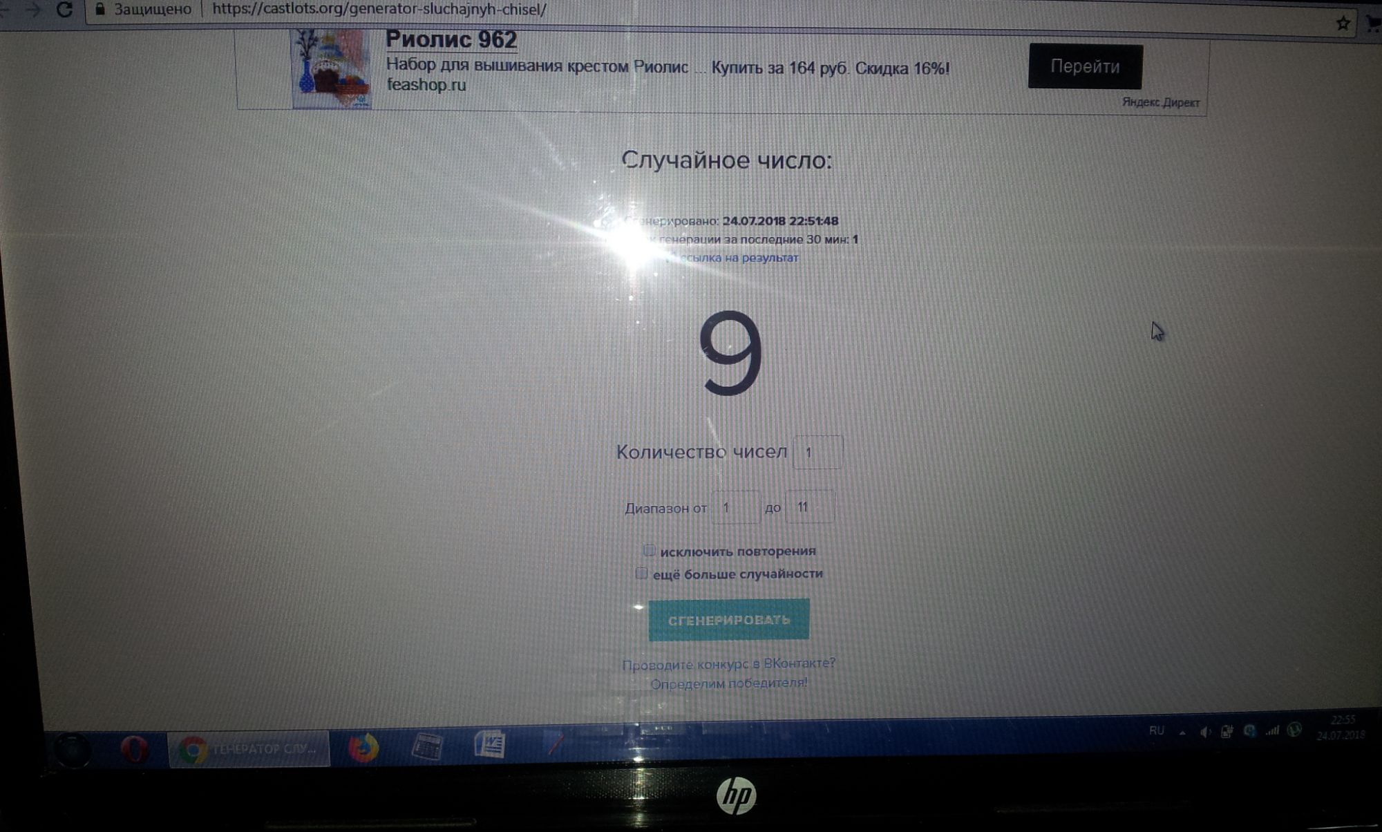 24 июля 2018 Добрый вечер всем...Девочки,сейчас разыграем конфетку..Участвовало 11 девочек 1. Кисюня 2. Nata_Struchkowa 3. Nadinka-Blondinka 4. solnce7 5. Sky026 6. -Solovey- 7. ksen40 8. Каори 9. Ponochka 10. АриЯ 11. ALT Включаем генератор случайных чисел...Делаю на трёх разных сайтах...Иииии.. Ponochka Юля,поздравляю...Жду адрес электронной почты в личку... Galagenka, malenta, -Solovey- и 24 других сказали спасибо Поделиться сообщением Ссылка на сообщение