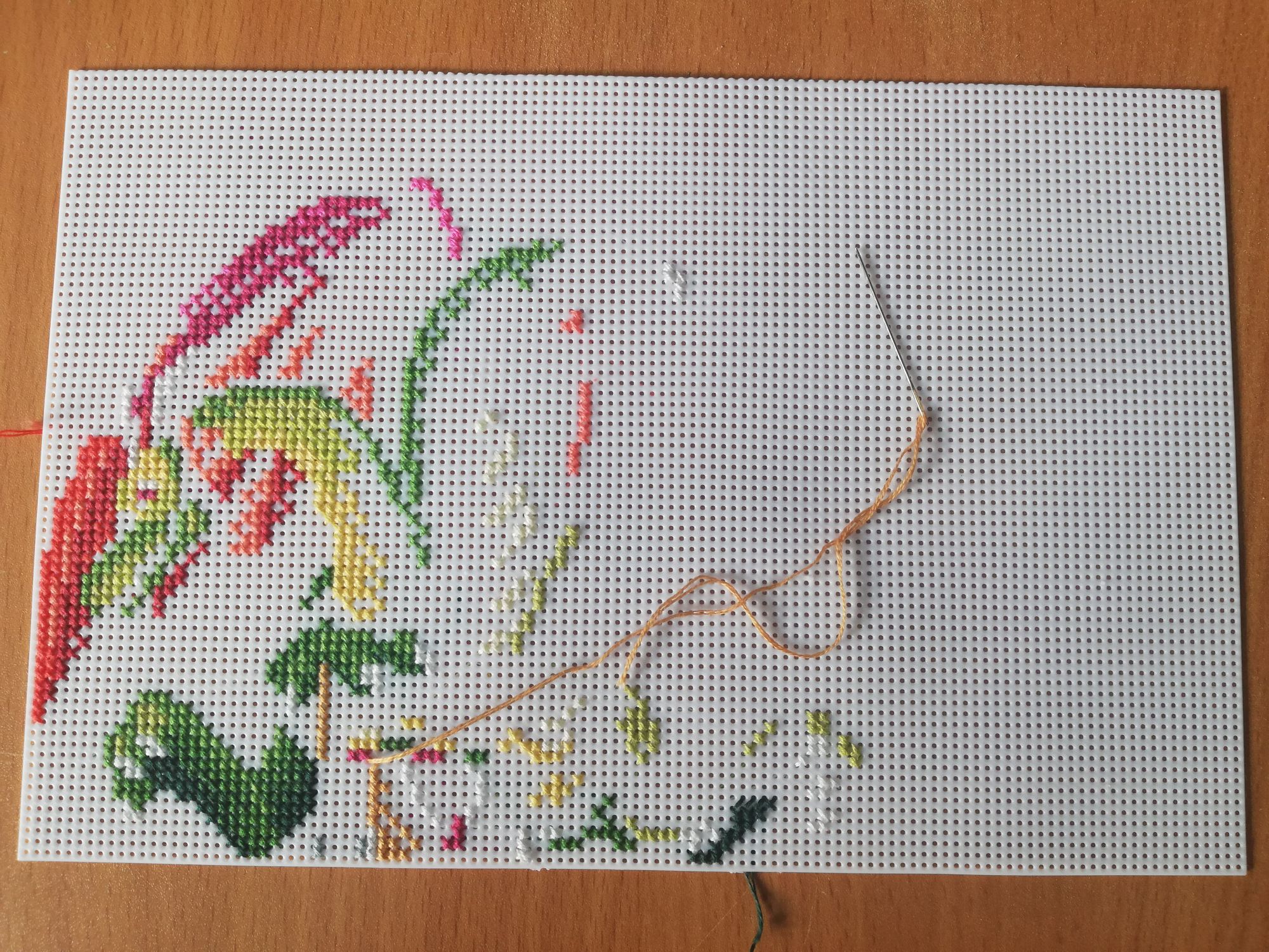 15 июня 2021 Начну с того, что я - хомяк. Не то чтобы это новость, конечно) А вот компания новых наборчиков, едущая ко мне... *загадочно лыбится, аки Чешир* Продвижений у меня везде по чуть-чуть)) Сыр было: --- стало: . Это всё, вот прямо всё, что вышилось за 2 недели в крупных домашних процессах так забавно появляются сначала дырки и только потом сам кусок сыра к ним))) Разбавила я Сыр разве что взявши 1 разок в руки Кроля (да и то на немножко). Зафиксирую, пожалуй, прибавки в нём, а то в домике он и не появлялся ещё: . Очень медленно и лениво идёт, очень. Наконец-то и правда сделала первые крестики у Павлинов: . Кааайф! Старалась между перьями нитки не протягивать, но решимости хватило не на всё, кое-где поленилась разрезать-крепиться... Начала вторую сторону Жар-Птицы: . Не знаю, как буду делить внимание между этими 2 птицами, они обе крутые))) Горыныч тоже прирастает, было: --- стало: . Как-то он довольно культурно левой стороной проявляется, у первой головы только чуть рога заполнить осталось)) И первые крестики для Трицератопса: . По сравнению с летучим собратом у него шкурка прямо ощутимо сложнее А финиш Птеродактиля я так пока и не покажу... Зы. Первая посылка приехала, получена, зафотографирована, сейчас отчёт начну писать)) Хозяйка смешных зверей, tulipe, maui и 9 других сказали спасибо Поделиться сообщением Ссылка на сообщение