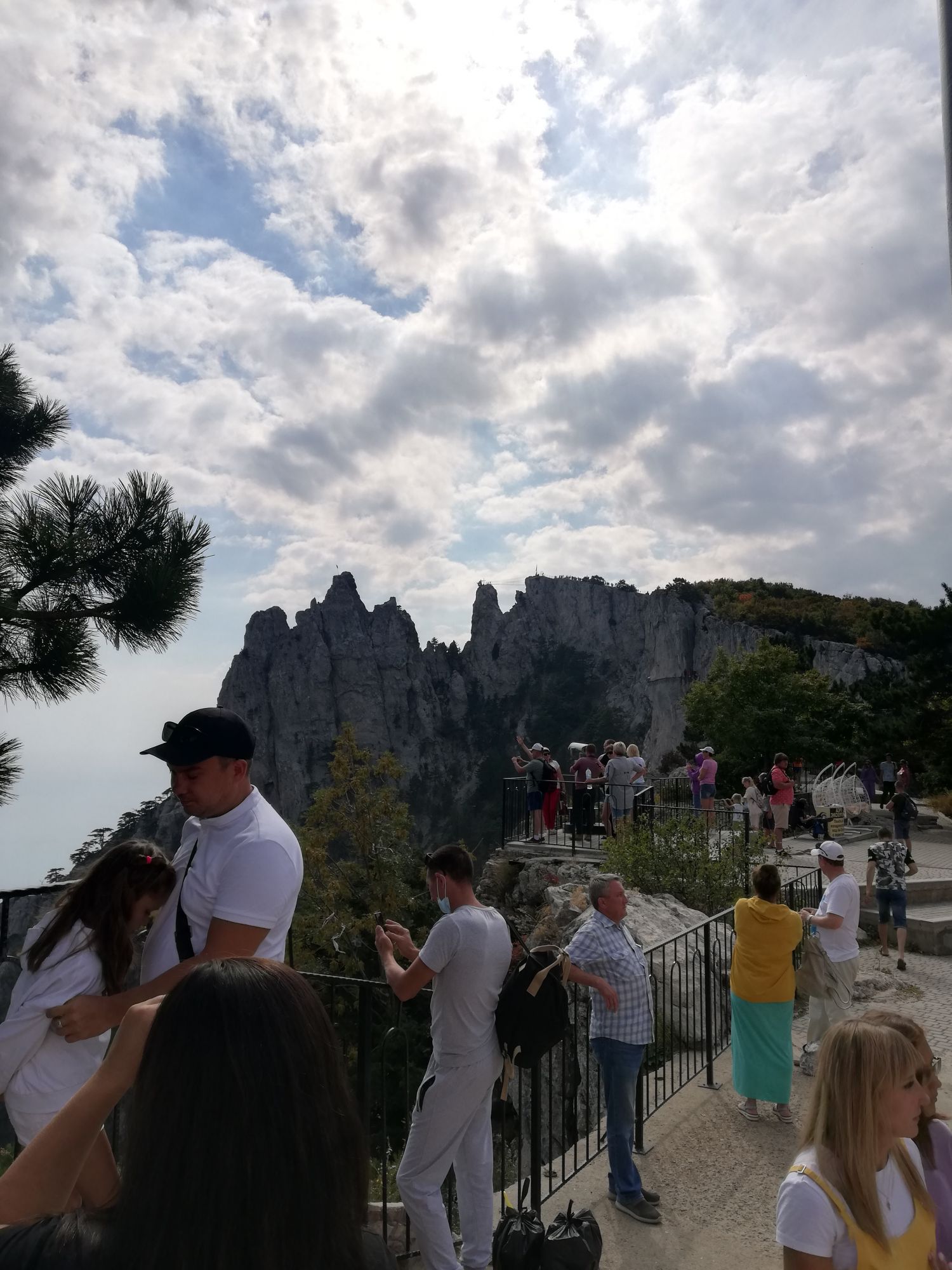 29 сентября 2021 Дальше была Большая Ялта и культурно-дворцовая программа)) Из-за рельефа Ялта - город лестниц, отличное место для подтягивания ОФП И ещё город совершенно не приспособлен для перемещения на авто. Если на улице есть по проезжей полосе в каждую сторону, то это уже шик, можно сказать, целый хайвей В плане застройки много, очень много маленьких домиков, причём с каким-то ощущением общей неухоженности. Какой-то сплошной Большой Халупинск В общем, это, пожалуй, вообще первый город, который даже завлекательной картинкой для туриста меня совершенно "не купил" (хотя обычно благодушно-восторженно настроенная я, пусть и мимолётно, влюбляюсь во всё увиденное по пути) А вот дворцы интересные)) Массандровский дворец : . Он довольно компактный и выглядит чуть ли не игрушечным пряничным домиком Напротив входа посажены секвойядендроны, и это они ещё можно сказать деревца-подростки: ))) Почему-то нет фото Ливадийского дворца Лачточкино гнездо было посмотрено только с такого вот ракурса: . К этому времени накопилась усталость от поиска паркоместа (и ощутимой платности рядом с интересными местами) И он тоже маленький! Совсем игрушечка))) Возышающийся над городом памятник Ленину: . Золотое пальто немного "поела моль", но в целом все равно внушительно смотрится))) Воронцовский дворец : . Забавно сделано - каменные львы сначала лежат, на следующем уровне приподнимаются, а у входа уже стоят в полный рост))) У входа посетителей опять же встречает Дерево, на этот раз платан: . И сирень в парке, пусть индийская, но цветущая в сентябре Сирень! По этому дворцу я прогулялась и внутри, сдержанные, немного строгие интерьеры)) А в жилую часть - на 2 этаж - не пускают, старые перекрытия не выдержат нагрузки((( Из не совсем ожиданного - Ай-Петри виднеется и возвышается прямо над городом, вид от Воронцовского дворца: . Я почему-то считала, что она куда дальше "в горах"))) Кстати об Ай-Петри, следующий день был посвящён как раз этой вершине))) Когда я узнала, что на неё идёт канатная дорога, сразу загорелась - надо! Фуникулёры - это любовь Но тут оказались просто залежи подводных камней. Я не знаю, какая там обстановка с самого утра, но около полудня - ОЧЕРЕДИЩА До попадания на саму канатку прошло часа 2.5! И бонусом вокруг беспрестанно фланируют шабашники, мол, люди! Одумайтесь, не ждите! Давайте к нам в газельку! Мы вас в лучшем виде доверху домчим! Вы не передумали? Точно-точно? А, может, всё же с нами? Надоедают знатно (особенно если 2 часа стоишь, да...) Ещё и нагло врут, что на машине не доехать, там заповедник и вообще. Ну то есть они, может, и правда везут какими-то тропами по заповеднику, с экскурсионной программой - но ничего не мешает проехать по простой дороге, она есть. И машин наверху много))) Ну да ладно, само путешествие приятное, особенно круто подъезжать к отвесной скале наверху))) Виды: , экстремальные развлечения: . Про подвесной мостик между зубцами я слышала и очень хотела испытать))) А есть ещё и дорожка по скале О мостике)) Если честно, я думала, будет намного страшнее)) Но на тебя надевают страховку и прицепляют сразу 2 карабинами к стальному канату - и как-то сразу никакой паники))) Вниз было решено идти пешком - на километровый подъём я всё же не решилась а прогуляться было интересно)) ... Поначалу спуск был довольно крутым, но все равно прогулка по сосновом лесу задалась)) Идёшь-идё