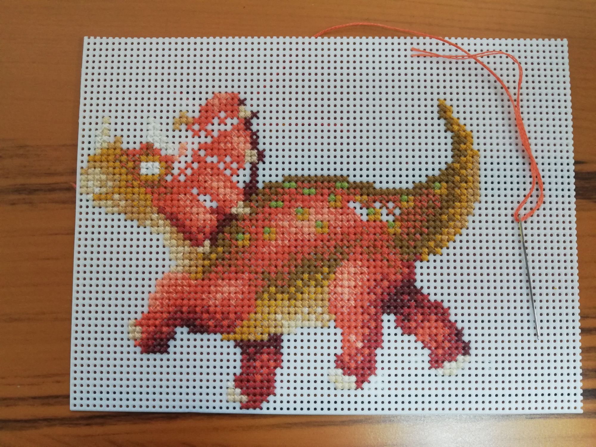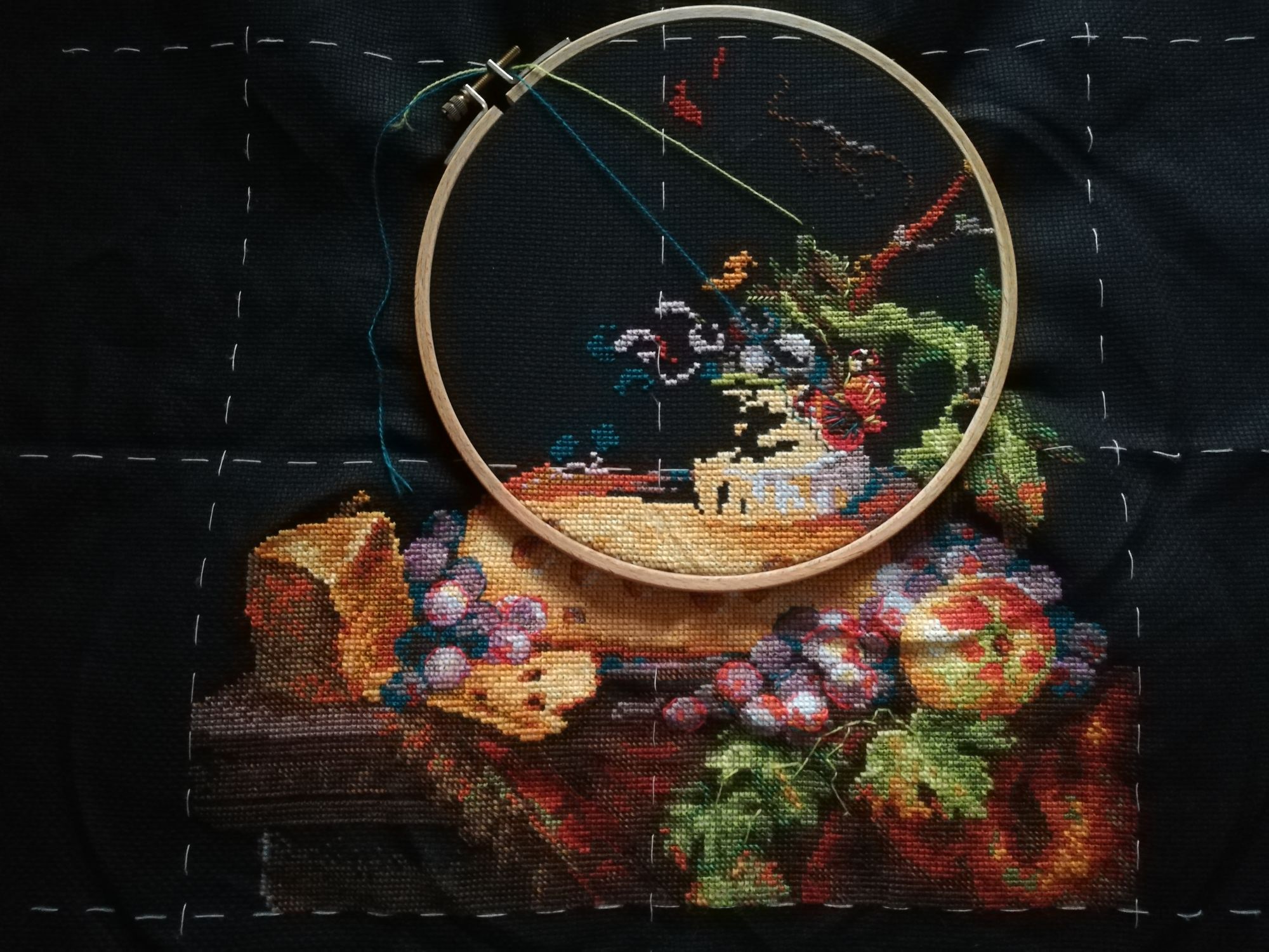 8 октября 2021 Всю неделю собираюсь с силами на вышивальный отчёт Во-первых, финишировал Трицератопс Было: --- стало: --- итог: . Вышивался динозаврик без спешки, скорее смаковался - в основном на природе, но и в более городских проходных условиях не терялся))) Красная шкурка сделана в приятных оттенках, шились они в полнейшее удовольствие))) А уж выражение на мордочке и поза, этакая радостная энергичность... Очень удачная разработка))) Это когда-то должно было случиться - накосячила с вырезанием((( забыла про потерянный крестик и прошлась по имеющемуся контуру. Теперь в одном месте половинки не сходятся ну и ладно, по второму кругу вышивать одну из половинок не буду, хотя ниток на такой выверт и хватит))) Немного статистики: Число крестиков: 3116 + 461 бэка (3577) Вышивалось: с 30.05.2021 по 1.10.2021 Всего дней: 125 (в среднем по 25 крестиков и суммарно по 28 в день) Дней вышивки: 36 (в среднем по 86 крестиков и суммарно по 99 в день) Максимум: 295 Процент бэка: 12,89% Во-вторых, Сыр было: --- волевым решением всё же передвинула пяльцы после месяца колупаний в правом углу: --- и на выходных случился день с вышивальным тысячником: . Очень хочу его довести до ума, но опять почти не вышивается дома... В-третьих, Горыныч, было: --- стало: . И на закуску чуть-чуть овощей)) Баклажанчик было: --- стало: . Вот как по-разному могут восприниматься медленные продвижения для разных процессов)) Кроль тянууулся и тянууулся, а баклажаны я, как Фигуристку, понемножечку смакую)) Аментет, Кисуля, maui и 12 других сказали спасибо Поделиться сообщением Ссылка на сообщение