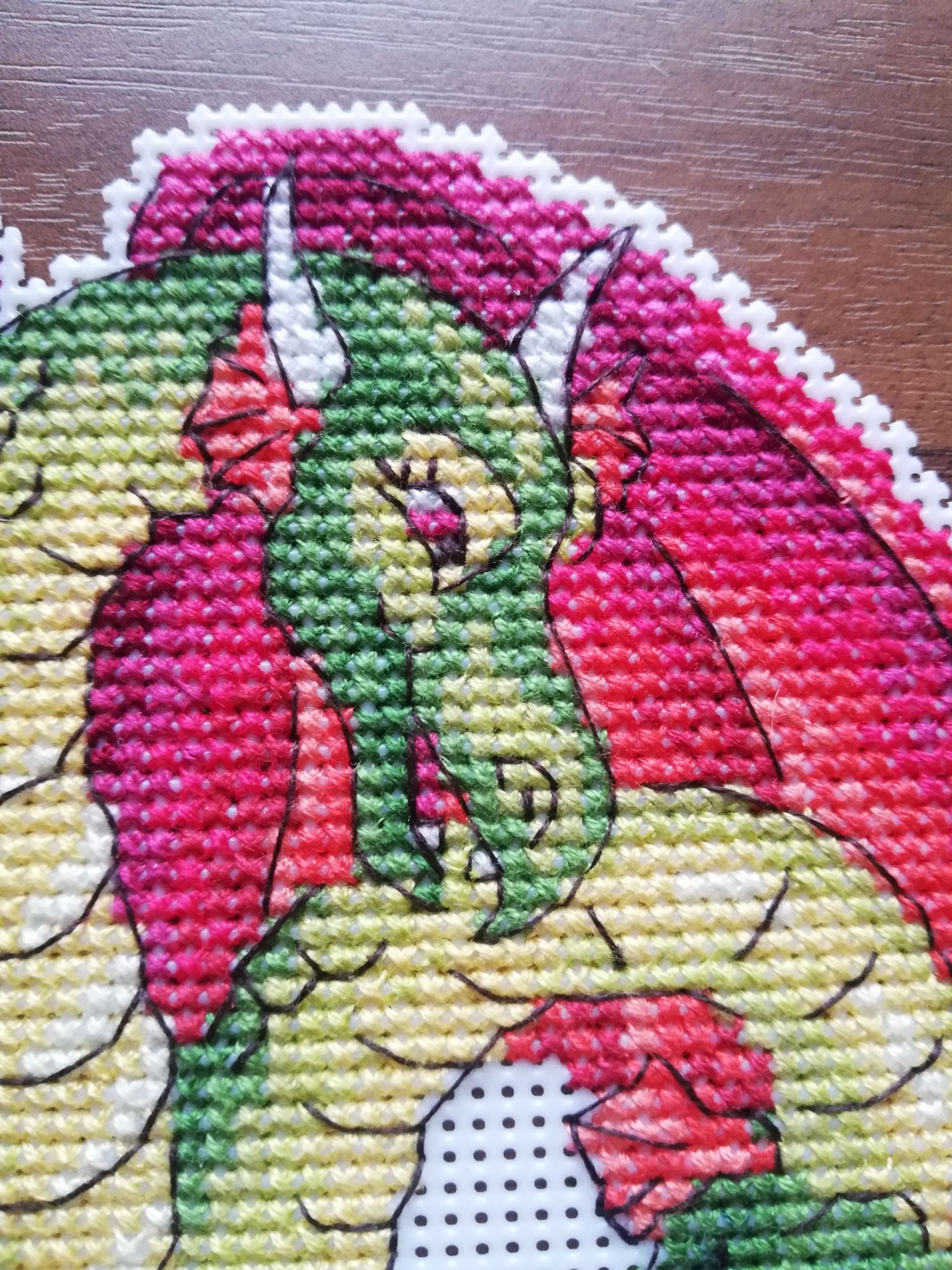8 ноября 2021 А покажу я сегодня много всего Первое и самое главное --- мне всё же удалось доделать Горыныча в октябре! Встречайте красотку))) Было: --- стало: --- готово: . Ох и запарилась я внутренние контуры обрезать! Всё боялась, что какую-нибудь лапу или крыло в запале усердия то ли отчекрыжу ножницами, то ли просто сломаю В процессе вышивки же зелёная бестия проявила характер: в паре мест я довольно ощутимо обсчиталась, пришлось распарывать, а то ж фигурка двухсторонняя, как потом другой стороне объяснять, почему крыло короче и шея не там? а офисный процесс вдвойне обиднее пороть... В остальном же шло с огромным удовольствием и как могло быстро))) Ниток осталось ощутимо, на ещё одну сторону точно хватит)) Разве что "старая" схема без малейших вкраплений розового в черно-серое уныние не добавляла удобства... И немного статистики: Число крестиков: 7677 + 1001 бэка + 9 фрузиков (8687) Вышивалось: с 4.05.2021 по 27.10.2021 (распакован 27.04.2021) Всего дней: 177 (в среднем по 43 крестика и суммарно по 49 в день) Дней вышивки: 84 (в среднем по 91 крестик и суммарно по 103 в день) Максимум: 300 Процент украшений: 11.63% Немного не хватило чтобы устроить Большой Октябрьский Финишепад, поначалу я неплохо продвинула Баклажан, но потом сдулась, было: --- стало: . Осталось совсем чуть-чуть, но пока не хочу я его брать... Феечка добралась до освободившихся после Сыра пялец, первые намётки: . Равномерочка ой классно))) Ещё один набег на Жар-Птицу, было: --- стало: . Почти готовы крестики))) А потом будет бэээээк Волшебная сила нытья - пока что Анемоны движутся, было: --- стало: . Не знаю, насколько меня хватит, но надеюсь максимально долго не сдаваться))) И на закуску подросший Капитан Джек Воробей Попугай, было: --- стало: . 6 процессов, где это видано, чтоб столько за раз казать!!! Аринесса , Дикая белочка, Грёза и 8 других сказали спасибо Поделиться сообщением Ссылка на сообщение