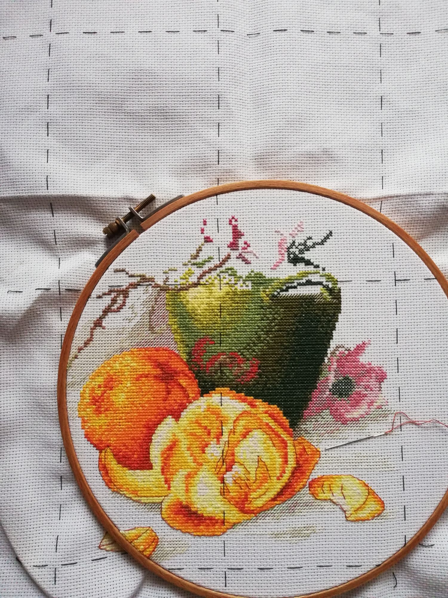 29 ноября 2021 Поделюсь небольшим продвижением по Апельсинчикам, было: --- стало: , пяльцы благополучно переставлены на верхнюю часть, и я там даже немного поковырялась: . Но пока что несколько энтузиазм поугас ...А также продолжением огородных работ в виде нового старта от МП Студии. Были выбраны яблочки, , М-596. Подготовка и первые крестики: . Уже радостно вышила всё красными тонами опять, видимо, нехватка яркости в организме))) Очень рада вернуться к Феечке, я соскучилась по этой равномерочной нежнятине. Но там, конечно, хорошо намешано, особенно на ногах. Но уже начали угадываться контуры, было: --- стало: . mariko80, Кисуля, maui и 15 других сказали спасибо Поделиться сообщением Ссылка на сообщение