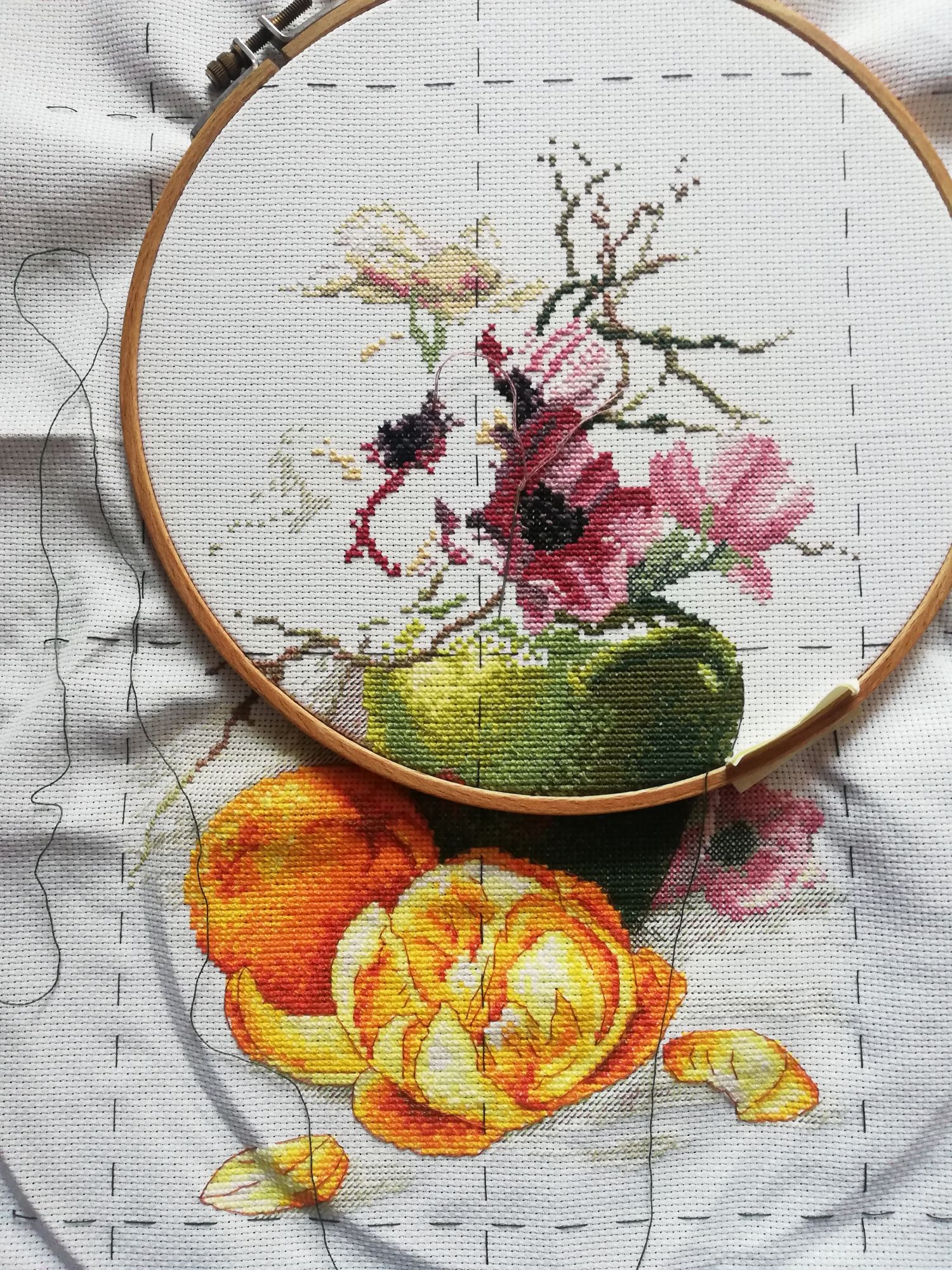 8 марта 2022 Загляну я, пожалуй, в этот прекрасный солнечный весенне-морозный праздничный денёк сюда с небольшим отчётом))) Во-первых, я наконец-то завершила Жар-птицу! Полтора месяца ждала она 26 финишных бэчинок Было: --- стало: --- готово: . Даже вырезала, что называется, не отходя от кассы))) Очень крутая и яркая разработка, очень))) Пересекаться с ней удавалось редко, но от этого процесс был только слаще) Схема, с добавлением розового в серо-чёрные тона, стала попроще читаться, хотя всё равно до идеала ещё более чем есть куда стремиться Ниток осталось много, кроме, кажется, самого тёмного цвета для бэка (но, может, я с другим каким процессом путаю, а глянуть сейчас не могу). Сами нитки - Кировчане как Кировчане. В комплектации была иголка, что плюс, но она была великовата для пластика (но так я её и не сменила). И статистика: Число крестиков: 7040 + 2117 бэка (9157) Вышивалось: с 30.01.2021 по 7.03.2022 Всего дней: 402 (в среднем по 17.5 крестиков и 23 суммарно за день) Дней вышивки: 30 (в среднем по 235 крестиков и 305 суммарно за день) Максимум: 1108 Процент бэка: 23,12% (пока что это самая "обэченная" моя вышивка) Во-вторых, старт на смену Пейзажу) Думала я думала, ходила вокруг да около... И взяла следующий Пейзаж, (Овен 124). Подготовка и первые крестики: . Идёт пока медленно, но вышивается в принципе лениво. Комплектация примерно такая же, как и у его соседа) Ну и в-третьих, 3 копейки продвижений на Анемонах, было: --- стало: . Удивительное рядом --- показала брату Тигров, так он отказался от футболки с одним из героев! Слишком, говорит, недолговечная штука, а Тигры круты. Всех, говорит, хочу Вот и думай тут, себе-то я их тоже хочу))) Путешественница, Дикая белочка, vasilisa-1977 и 13 других сказали спасибо Поделиться сообщением Ссылка на сообщение