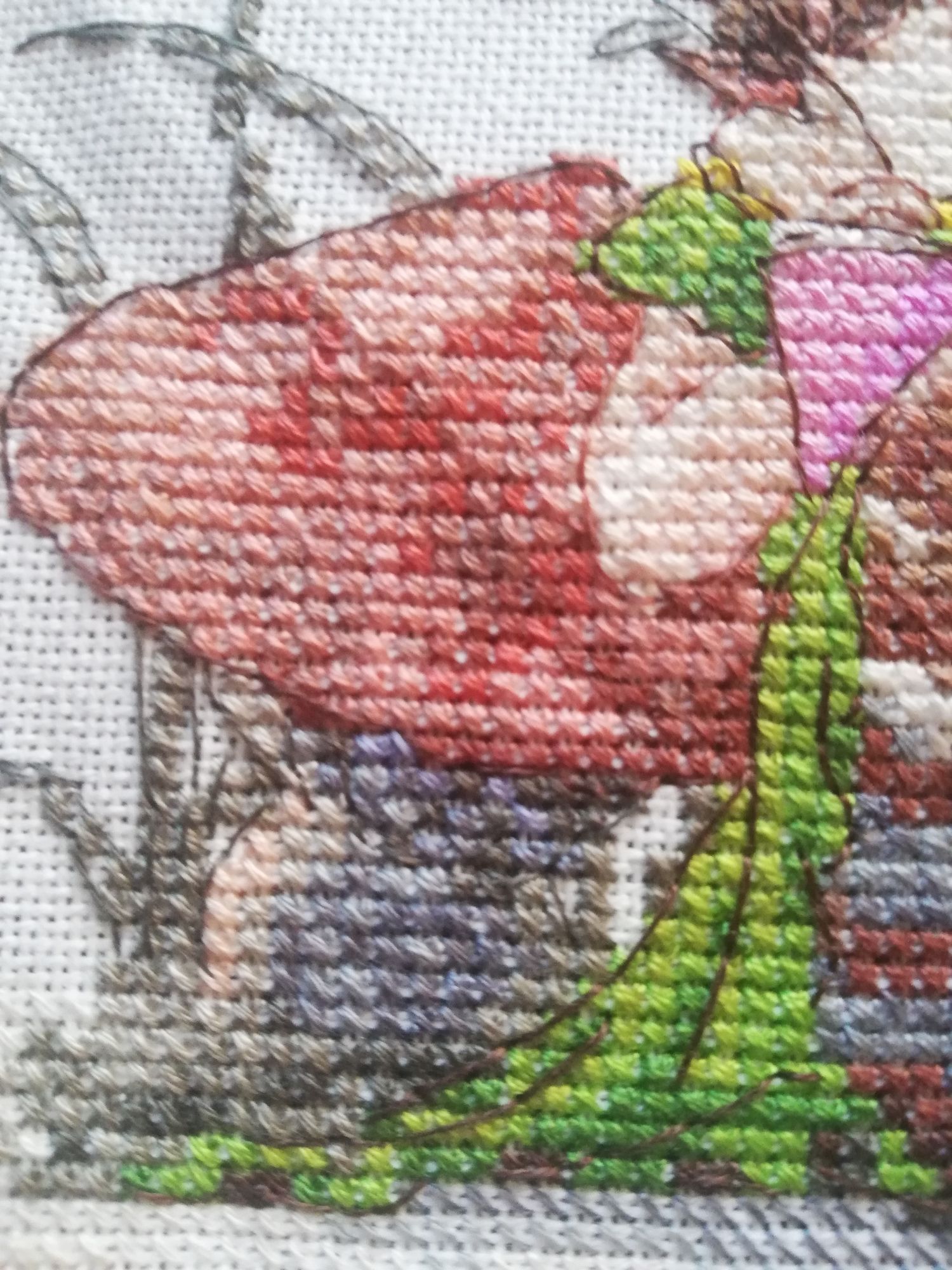 22 марта 2022 Вышиванец мой нынче пуглив, ленив и вообще в спячке вместе со всей мной, но всё равно набралось немного для показа))) Во-первых, финишировала красотка-феечка Было: --- стало: --- итог: (ах эти пальчики) . Шло под конец совсем медленно, но тут просто потому, что задерживаться в офисе после работы было совершенно неохота, а со временем в обед не всегда складывалось. Процесс был сплошным кайфом, пусть даже сама Феечка была немного заковыристой (но, на удивление, там даже изнанка не поражает воображение Страхом и Ужасом, так и не скажешь, что чулочки чуть не сплошь из одиночек, пусть и расположенных рядышком). Бэка много, он несчетный, но меня это как-то вообще не смущает, особенно если шить его по принципу "как легло, так и хорошо" Вот за фрузики в глазах переживала, но вроде прилично получилось)) Познакомилась с загадочным зверем "стебельчатый шов", он выглядит немного мутантиком, но для листьев пойдёт, решила я Единственное что я не поняла, это как сделать его закрепку менее заметной, чем стежок через клетку. Потому что если выводить нитку обратно в той же дырочке, весь шов бодро вытягивается в "бэковую" линию, убегая концом на изнанку Материалы все - сплошное мимими и тактильное удовольствие, но самый тёмный коричневый кончился почти весь, осталось полторы ниточки (ниточки, не пасмы!) Если вести линии бэка менее "экономными" траекториями, запросто могло и кончиться Вот на Жар-птицу я, может, зря гнала волну и проблема с бэковым цветом только тут была По остальным ниткам вполне приличный запас остался И немного статистики: Число крестиков: 5227 + 863 бэка + 6 фрузиков + 18 стебельчатый стежков (6114) Вышивалось: с 28.10.2021 по 16.03.2022 Всего дней: 140 (в среднем по 37 крестиков и по 44 всего за день) Дней вышивки: 52 (в среднем по 100,5 крестиков и 117,5 всего за день) Максимум: 286 Процент украшений: 14,21% Во-вторых, немного прибавили Пираты, было: --- стало: . Сабли без "неправильного" цвета тоже уже всё. И да, не знаю, кто прокосячился, Почта России ли, менеджер ли... Я по поводу цвета написала производителю (ещё в ноябре, что ли), да, говорят, палитра ПНК "гуляет", нужен другой оттенок, он сейчас есть, отправим - и вот уже конец марта, а почтовый ящик как был чист и пуст, так и не заполнялся. Повторно писать неохота, надо будет всё же прогуляться по магазинам (ну где-то же будет продаваться палитра ПНК?) Месяц стартов всё ближе, а я никак не определюсь, что же хочу поначинать. Утверждено полтора дизайна @vasilisa-1977, Танюш, ты там подушку Риолисову куда-нибудь поближе к стопочке планов продвинула?))) Auria, Catopuma, Аринесса и 10 других сказали спасибо Поделиться сообщением Ссылка на сообщение