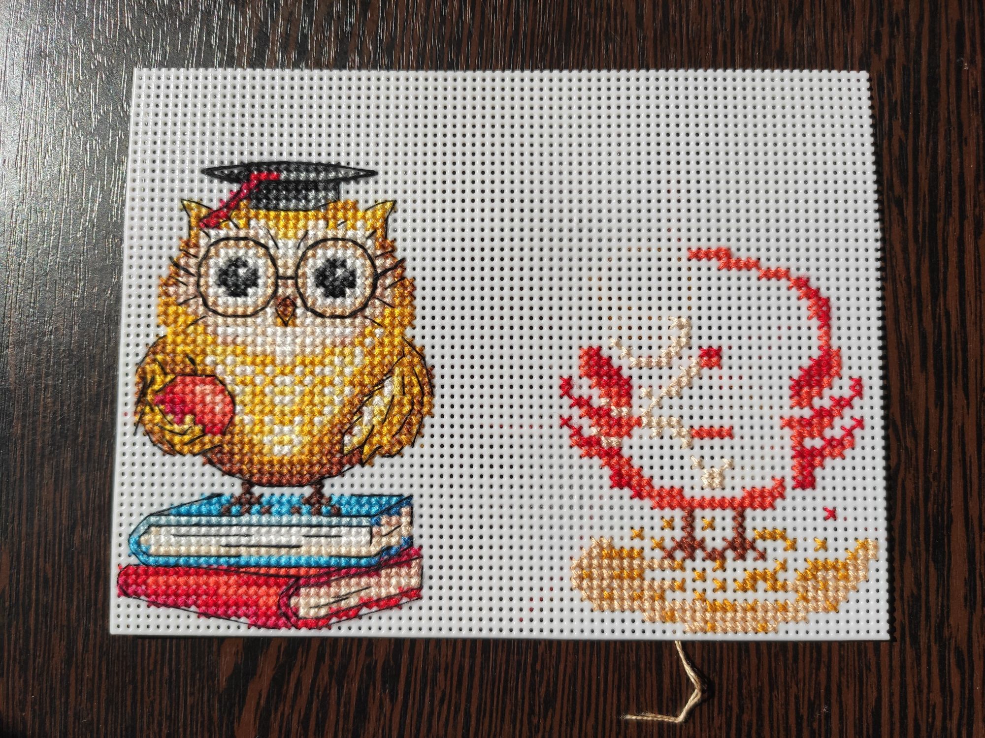 30 августа 2023 Крокодил не ловится, отчёт не пишется... Ладно хоть крестики шьются, так что показать-то есть что) В августе удалось переломить тенденцию к уменьшению числа крестиков в месяц, и главный герой этого - маяк) Видимо, буду не намарафеченным показывать Было: --- стало: (между этими фото всего 1 день разницы!!! ) . Подробнее, видимо, с красивыми фоточками, а пока кратко - он обалденный Наконец есть что показать по Совету) Перенос пялец - это всегда такая приятная волнительность) Появляется возможность браться любым тоном по пустому полотну, и как же это кайфово после заполнения пропусков в мешанине! Было: --- стало: . Но всё равно из громадин Совету достаётся как-то меньше внимания, нежели остальным. Непорядок? Однозначно. Но исправлять не рискну. Может стать и хуже Метод продвижений в виде переноса процесса в прикроватный комод - работает! Продвижения пусть не полноводной рекой, а ручейком, но потекли) Было: --- стало: . Я-то думала, отдыхалочкой этот кот будет, а он отказывается! Упирается всеми своими спрятанными конечностями)) Но дело, и правда, сдвинулось И, ну, никого же не удивит, что мой хомяк опять притащил в норку всякого? Круги от Овна просто шикарнейшие все, как тут устоять? Осталось брать и шить, но я даже уже начала с их пейзажами знакомство))) Огородная малышня от Студии: Добавки серии Ботаник: . Остался снежноягодник, но его, говорят, схемой Стадия выпустила. Может и надо посмотреть... милый малипуська-пингвиненок: . Думаю, а не забацать ли его на кофте какой. Но ещё не определилась до конца, хочу ли Гвоздь программы-1. Раскошелилась на Херитаж: Гвоздь программы-2. Милл-хилл: . Слушайте, он такая малипуська! Сравните с пакетиком от огородных малышат: Каори, Marusya1978, maui и 14 других сказали спасибо Поделиться сообщением Ссылка на сообщение