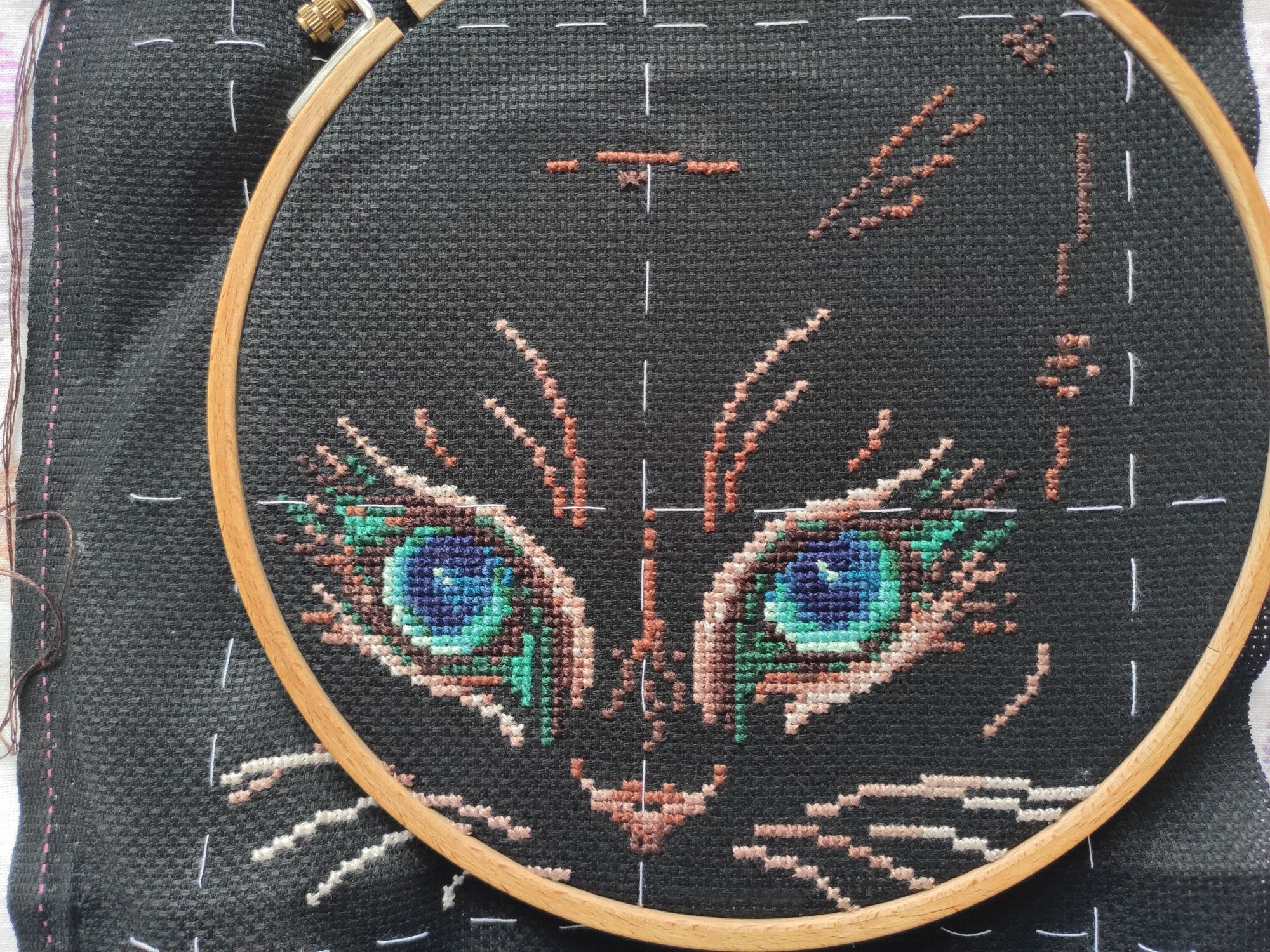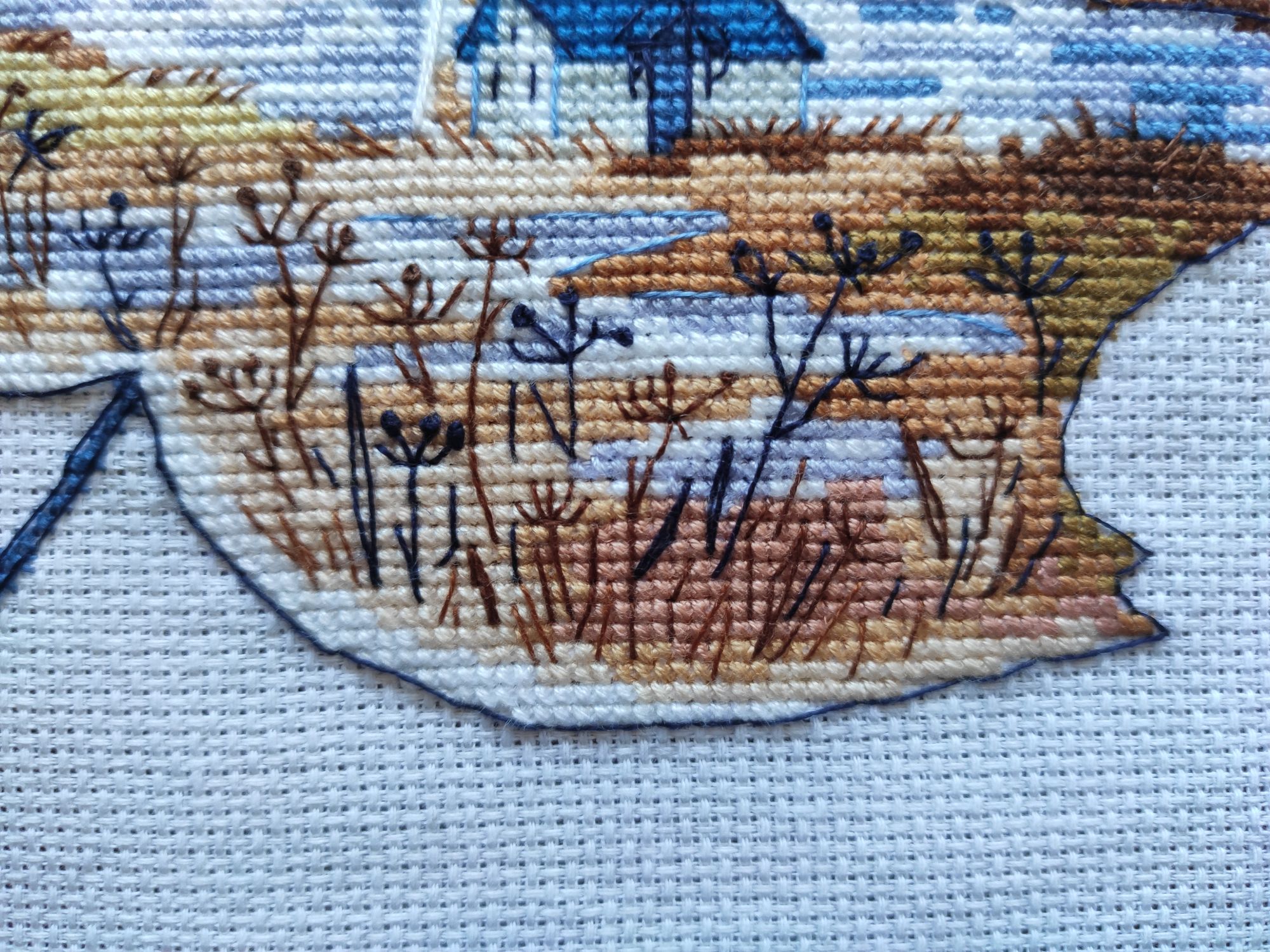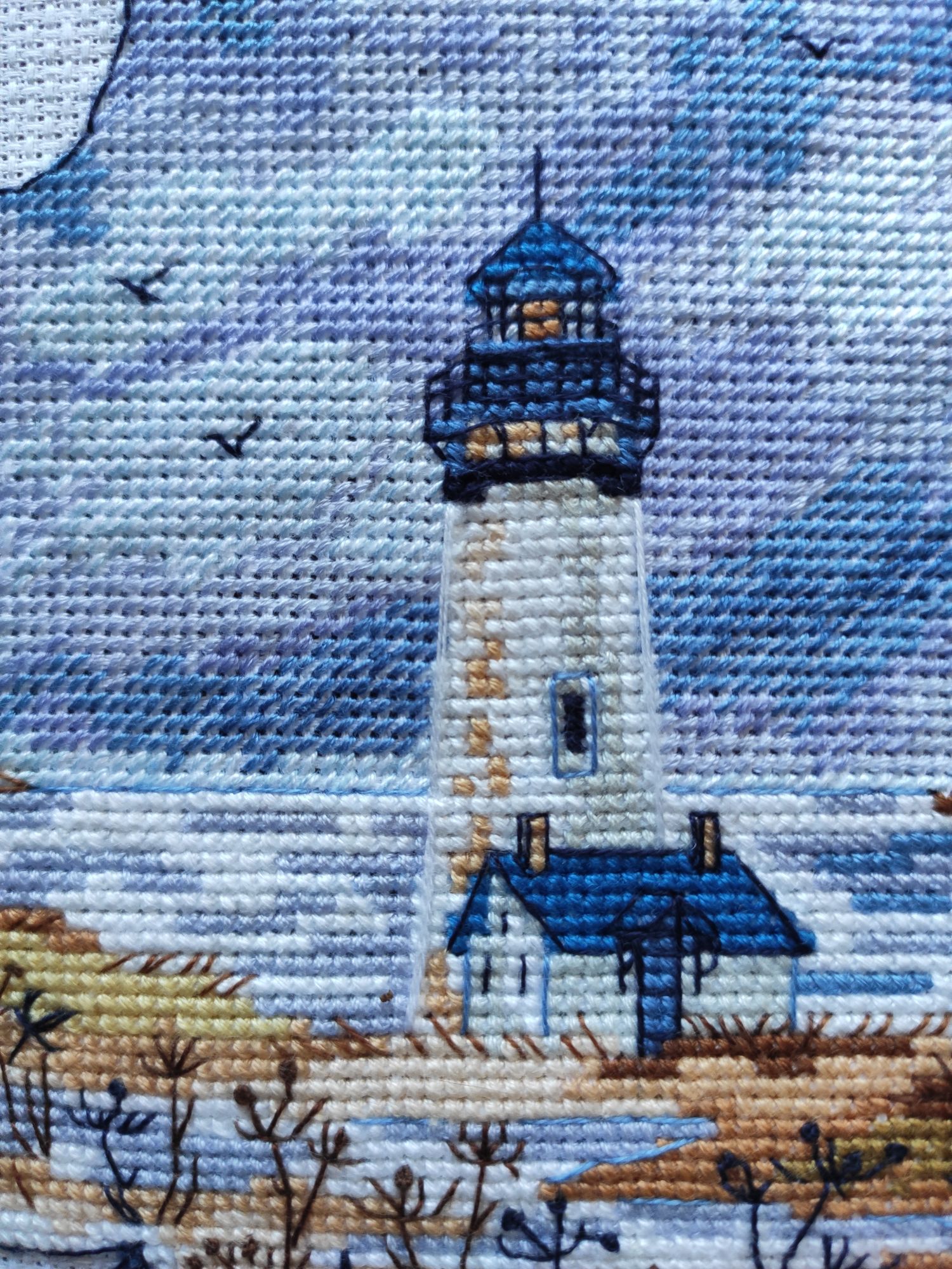 12 октября 2023 Буду всё же потихоньку собираться с мыслями и соображать отчёт, закрывающий накопившиеся финишные должочки))) @Татуся, по первым двум финишам гаечки уже позеленëны, но, пожалуйста, добавь в процесс итоговые фото И вот они, красивые фоточки Маяка: . Стремительный процесс и крутецкий результат)) По размеру довольно небольшой, но как хорошо чувствуется атмосфера! И схема довольно лёгкая, очень удобно шилось. Правда, я последнее время не могу не накосячить хорошенько - в какой-то день радовалась, что ооо удалось целую нитку вышить (по планам там вышивка не вписывалась ни в какую), а потом понимаю, что не тот оттенок взяла Не поленилась распороть и перешить) Ниток осталось с запасом, если на повтор и не хватит, то, может одного какого цвета. Продолжение серии хочу-хочу, но пока смотрю на другое))) Статистика: Число крестиков: 6463 + 666 бэка + 30 фрузиков (7159) Второй прямо почти подряд проект, где набралось весёлое число бэчинок Вышивалось: с 23.07.2023 по 11.08.2023 Всего дней: 20 (в среднем по 323 крестика и суммарно по 358 в день) Дней вышивки: 15 (в среднем по 431 крестику и суммарно по 477 в день) Максимум: 1967. Однако рекорд! Правда, он не совсем честный, поскольку в основном из полукрестиков Процент украшений: 9.72% //по ощущениям этот процент должен был оказаться больше))) Дальше идут вырезанные тыковки: . Красавишны мои наверное, тыква с гирляндой смотрелась бы и вовсе отпадно, если взять за основу тёмно-синий пластик И статистика: Число крестиков: 3183 + 854 бэка + 8 фрузиков (4045) Вышивалось: с 02.05.2023 по 07.08.2023 Всего дней: 98 (в среднем по 32 крестика и суммарно по 41 в день) Дней вышивки: 33 (в среднем по 96 крестиков и суммарно по 123 в день) Максимум: 376 Процент украшений: 21.31% Также финишировал и Кот, было: --- стало: . Наверху оказалось совсем крошечное число крестиков, так что с последнего показа он довольно шустро доделался. Гаммовская чёрная канва - такое себе удовольствие, дырочки не слишком чётко разграничены, а тут комплектом ещё шла очень острая иголка (да у меня просто швейная не такая острющая!) --- крестики упорно желали вышиваться где-то мимо. Только и глядишь, что опять не туда попала Ну и на поля производитель канвы пожмотил, я едва-едва внизу запяливала. Скрытый текст И вот как я финишировала, на следующий день отправился на радугу родительский кот Совсем ещё не старый, лет 6 всего исполнилось (ну, может, 7), а в этом году вылезли проблемы с почками... Ну и Статистика: Число крестиков: 1537 Вышивалось: с 30.04.2023 по 31.08.2023 Всего дней: 124 (в среднем по 12 крестиков в день) Дней вышивки: 21 (в среднем по 73 крестика в день) Максимум: 225 Процент бэка: 0% Позитивная тыквочка тоже финишировала, было: --- и стало: . Вырезать страшно Напоминаю: смаковалось отшивом по цветам, по одному в день. Сто лет не орудовала бисером и я, оказывается, соскучилась! Но при этом пришивание петитов - довольно муторное занятие. Больше пяти десятков бисеринок за подход еле вытерпела... И как вы думаете, что могло случиться на 13й вышивальный день? Правильно, я рассыпала бисер! По комплектации - ну, я уже говорила, чуда не случилось, разбирать нитки самой мне не шибко понравилось. И ещё один цвет ушёл почти в ноль - его почему-то положили всего одну пасмочку, а им и крестиков было немало, и бисер ещё пришивался... У других цветов меньше нитки использовалось, а вторую пасму давали. Бумаги я зря боялась, она тактильно прикольная и в цело