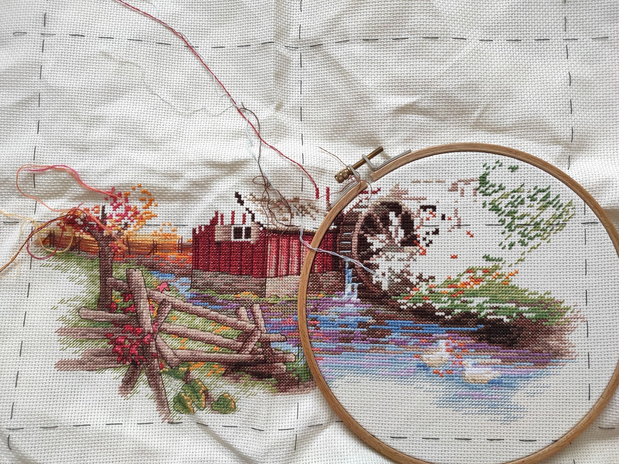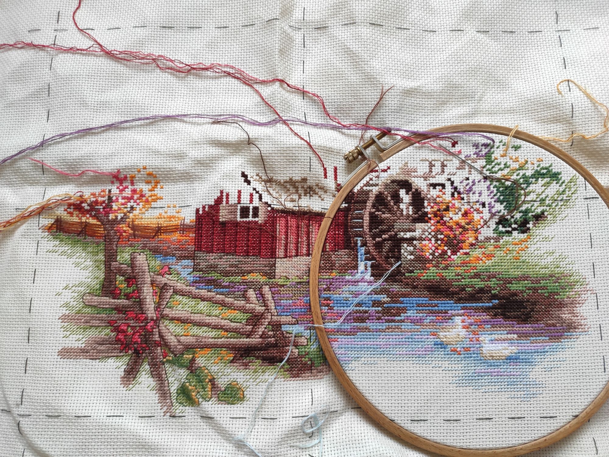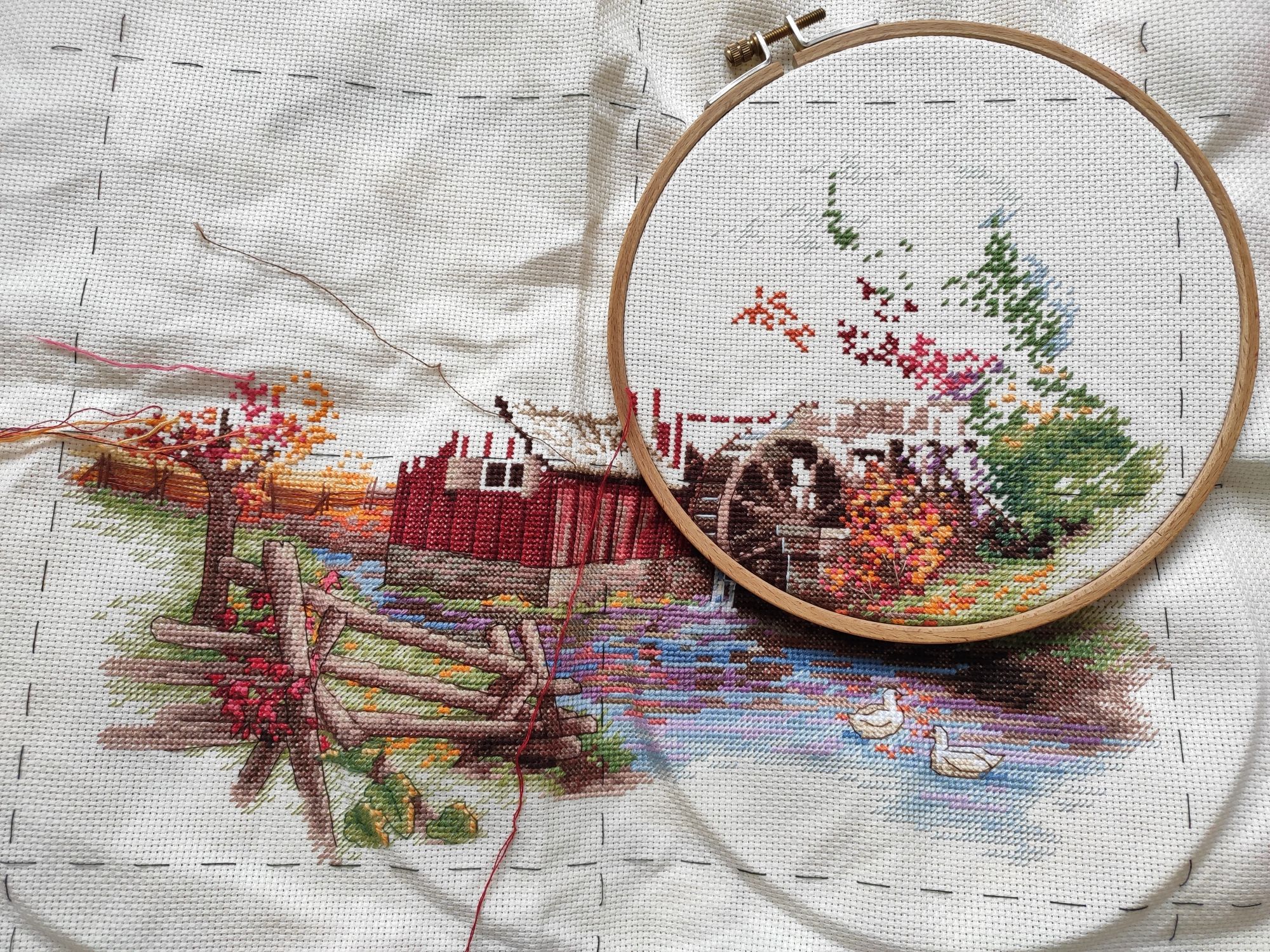 27 ноября 2023 16.11.2023 в 15:28, Marusya1978 сказал(а): Я последний раз без дырочек обходилась - пасму не дёргала, а отрезала одну нить у клеевого слоя. Остаток навешивала петелькой через плашку между соседними цветами. Но стараюсь всё же дошивать нить без остатка. Я тоже решила, что 2 см погоды не сделают, и отрезаю) За идею весить без дырочек спасибо))) воспользовалась) Потому как, несмотря на то что и я стараюсь дошить нитку до конца, периодически остаются хвостики, которые на текущем положении пялец никуда не приткнуть 16.11.2023 в 15:28, Marusya1978 сказал(а): Мельница прекрасна О да Я тут поняла, что опять что-то давненько с отчëтом не казалась. Несу))) Похвастаться большим разнообразием не могу - продвигаю фактически только Мельницу. Было: --- стало: . Визуально кажется, что картина очень "обэчена", ты настраиваешься, что ооо сейчас будут километры контуров... А по факту на 2 разворотах палец было по 300 примерно стежков, на 3-м и того меньше, и я не могут сказать, что это как-то прямо много. Удивительно. Не менее удивительно и то, что пейзаж совершенно не отпускает. И сдаваться не собирается Кроме пейзажа нашлось время только на походный процесс, было: --- и стало: . И если вы думаете, что мой хомячина покладисто сидел и ничего не покупал, то зря Притащила в норку ещё Руна: . И на волне впечатлений от текущего процесса прошлась по ассортименту Димыча. В итоге вот: . Над ещё 2 дизайнами думаю... Аринесса , Sky026, GreenTea и 18 других сказали спасибо Поделиться сообщением Ссылка на сообщение