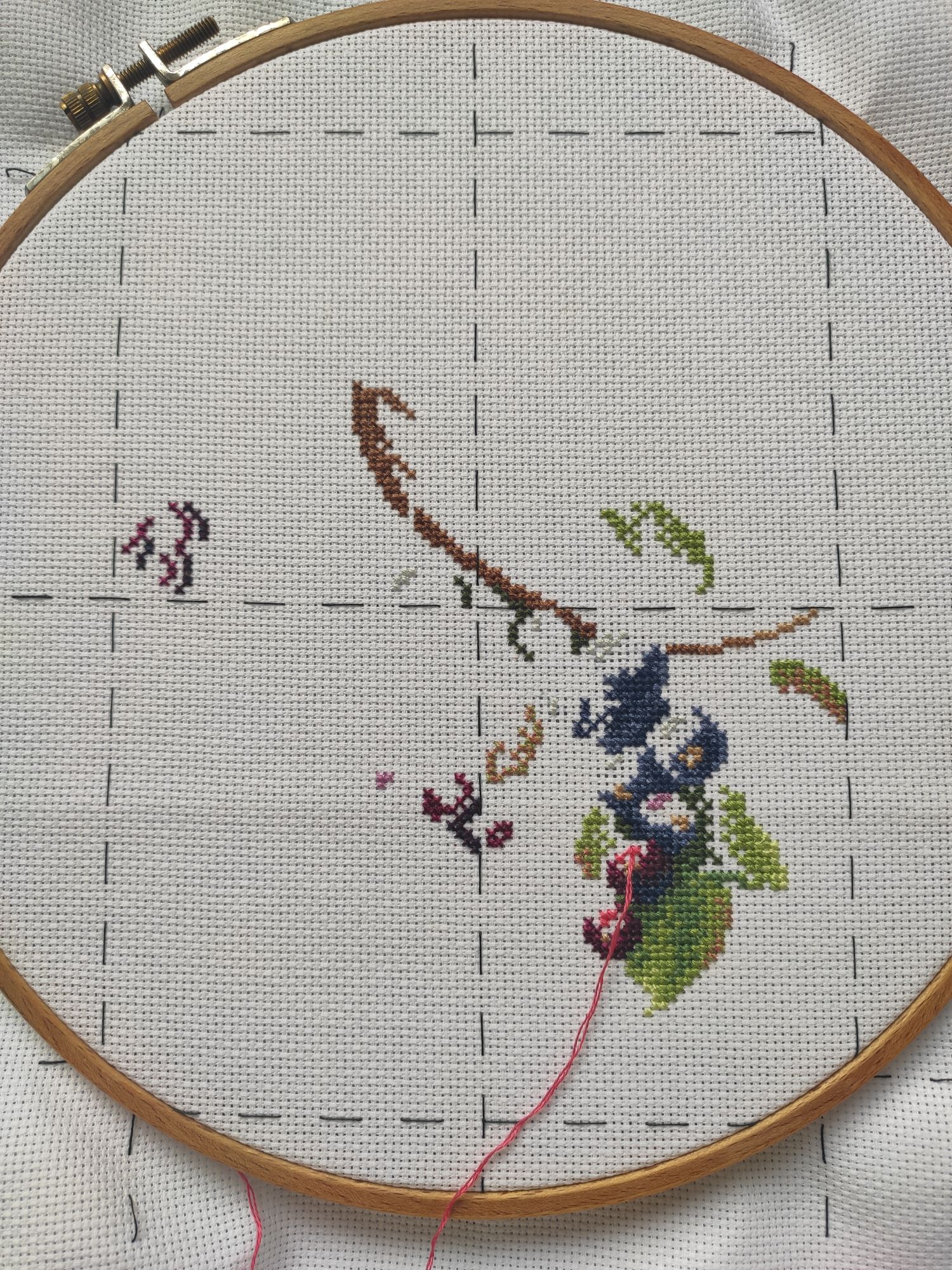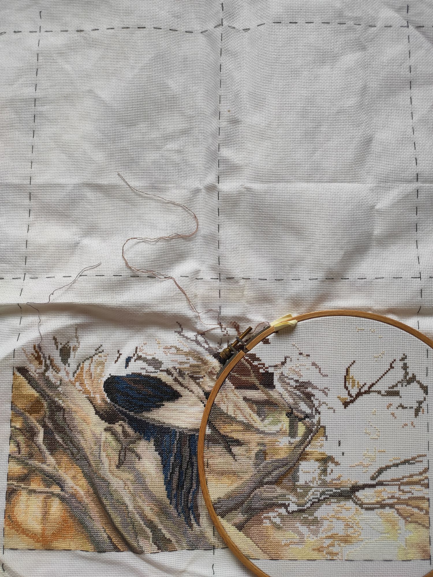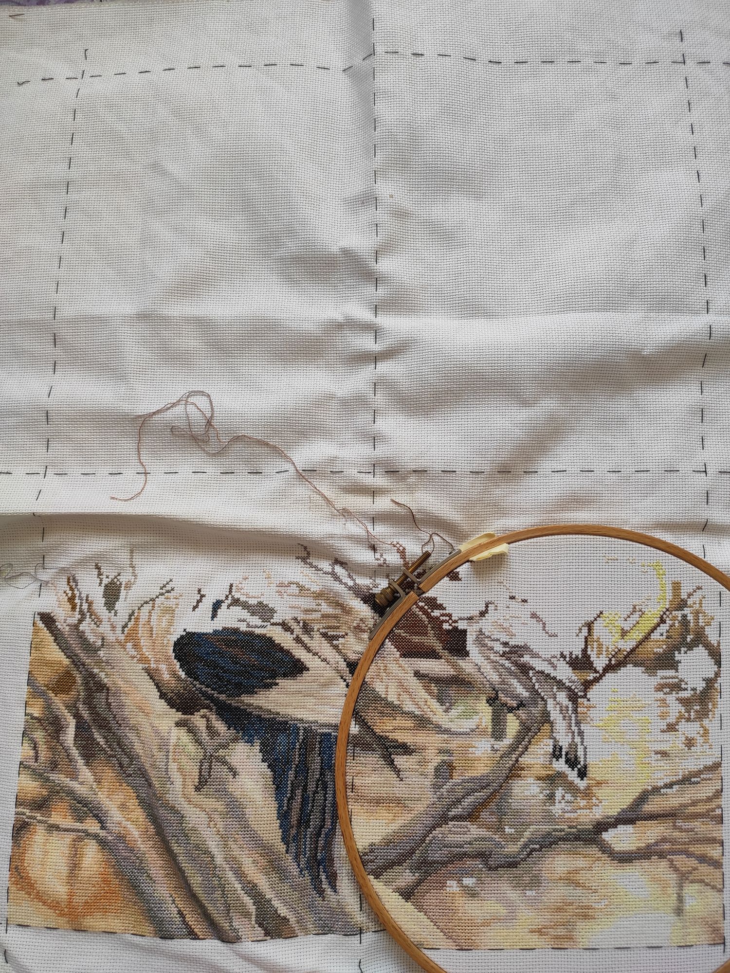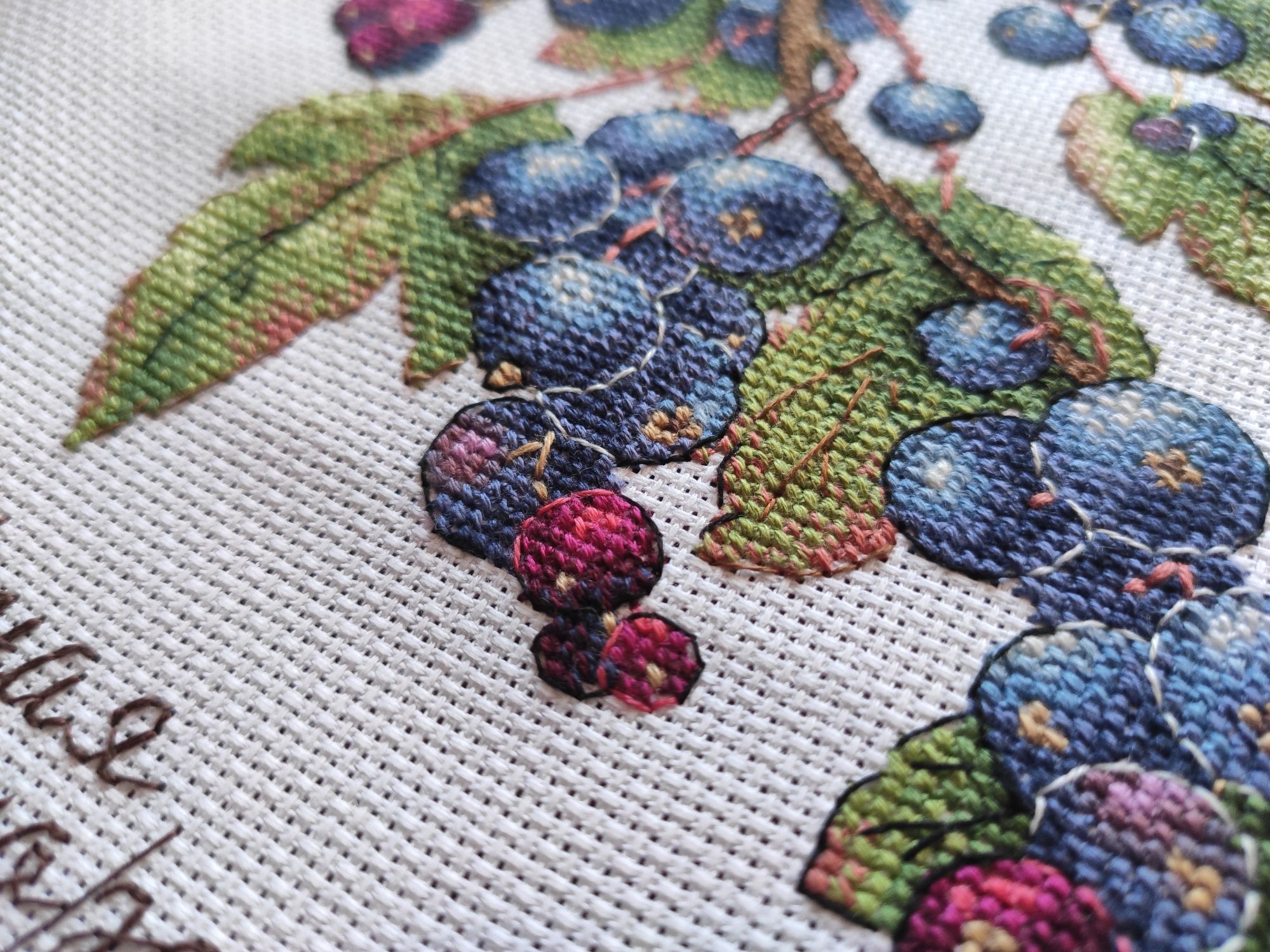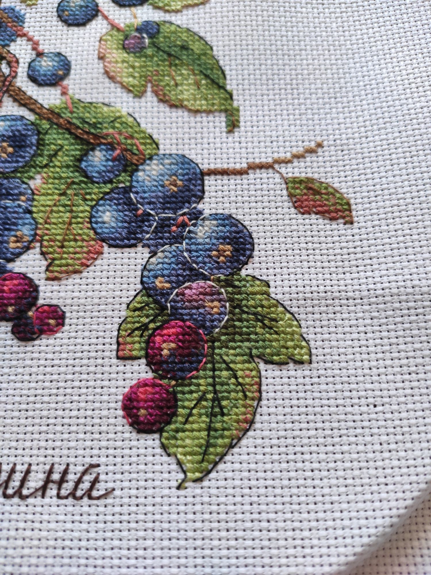 19 февраля 2024 Возьму я, пожалуй, и покажу красоту))) ...Не то чтобы Смородина так уж рвалась в руки, но ни Совет, ни Мельница не вдохновляли. И я решила всё же попробовать поставить её основным процессом. Отторжения не было, хотя ни мелкость ягод, ни 2 нитки на 18 никуда не делись. И там, где в других проектах выходили пятисотенники в день (даже на Совете! А он, между прочим, тоже на 18 канве и заморочный для меня), едва 3 сотни удавалось наскрести, то есть скорости совершенно печальные. Ушаночный орал благим матом, но какая разница - сейчас оптом всё медленное сделать или просто по дням растянуть? Тем более пяльца у меня не резиновые, финишировать надо. Смогла довести до финала))) Так что было: --- стало: --- и готово: . Думала, заколупаюсь в бэке, а он за 2 дня оп и всё))) Правда, умудрилась накосячить в надписи. И, главное, заметила только когда хвостик буквы "д" взял и не стукнулся об нижнюю линию. Распускать так много было дико лень, так что выкрутилась как смогла По комплектации - нитки были ещё короткой нарезки (и тут это было весьма актуально ). Весьма нетипично для Студии почти в ноль ушёл один тон - он был и в солиде, и блендом, и даже бэк аж на 3 нитки... А положили всего 2 пасмы (ну, может, 3). Но в любом случае на плашке остались висеть жалкие 2 ниточки. Запас же по остальным цветам - вполне ощутимый. В остальном - вполне читаемая схема да скользкая Гамма (нет, таки определённо Кировчане поудобнее в работе!) . Результат мне очень нравится, ягодки выглядят аппетитно и очень натурально) Любуюсь))) Статистика: Число крестиков: 4330 + 852 бэка (5182) Вышивалось: с 17.10.2023 по 13.02.2024 Всего дней: 120 (в среднем по 36 крестиков и суммарно по 43 в день) Дней вышивки: 25 (в среднем по 173 крестика и суммарно по 207 в день) Максимум: 586 (это я на бэке так разогналась, крестики мне подобной шикарности так и не предоставили) Процент бэка: 16.44% После финиша Смородинки встал вопрос - хочу ли я занимать пяльца каким-то процессом в преддверии апрельского начинанца. И я склонялась к мысли, что нет. А потом проснулась на следующий день и побежала подготавливать в работу новый наборчик Причём выбор был... Немного внезапным) Итаааак, в процессы с ноги и мимо всех очередей дайте-мне-это-вышить-немедленно врывается силуэт от Анкор: (Lion Silhouette, 05041). Подготовка и первые крестики: . Кто буквально только что говорил, что коричневый для меня сложный цвет, а тут в полный кайф поскакал по рыже-коричневой закатной саванне - тот я И кто сначала повёл полукрестики в привычную для себя сторону, а потом обнаружил Анкоровские четвертушки - тот тоже я Как буду выкручиваться - пока не знаю. Но я, честно говоря, пока не поняла, а насколько уж вообще в небе необходимы четвертушки. Может, просто забить? Охотница, Sky026, Путешественница и 12 других сказали спасибо Поделиться сообщением Ссылка на сообщение