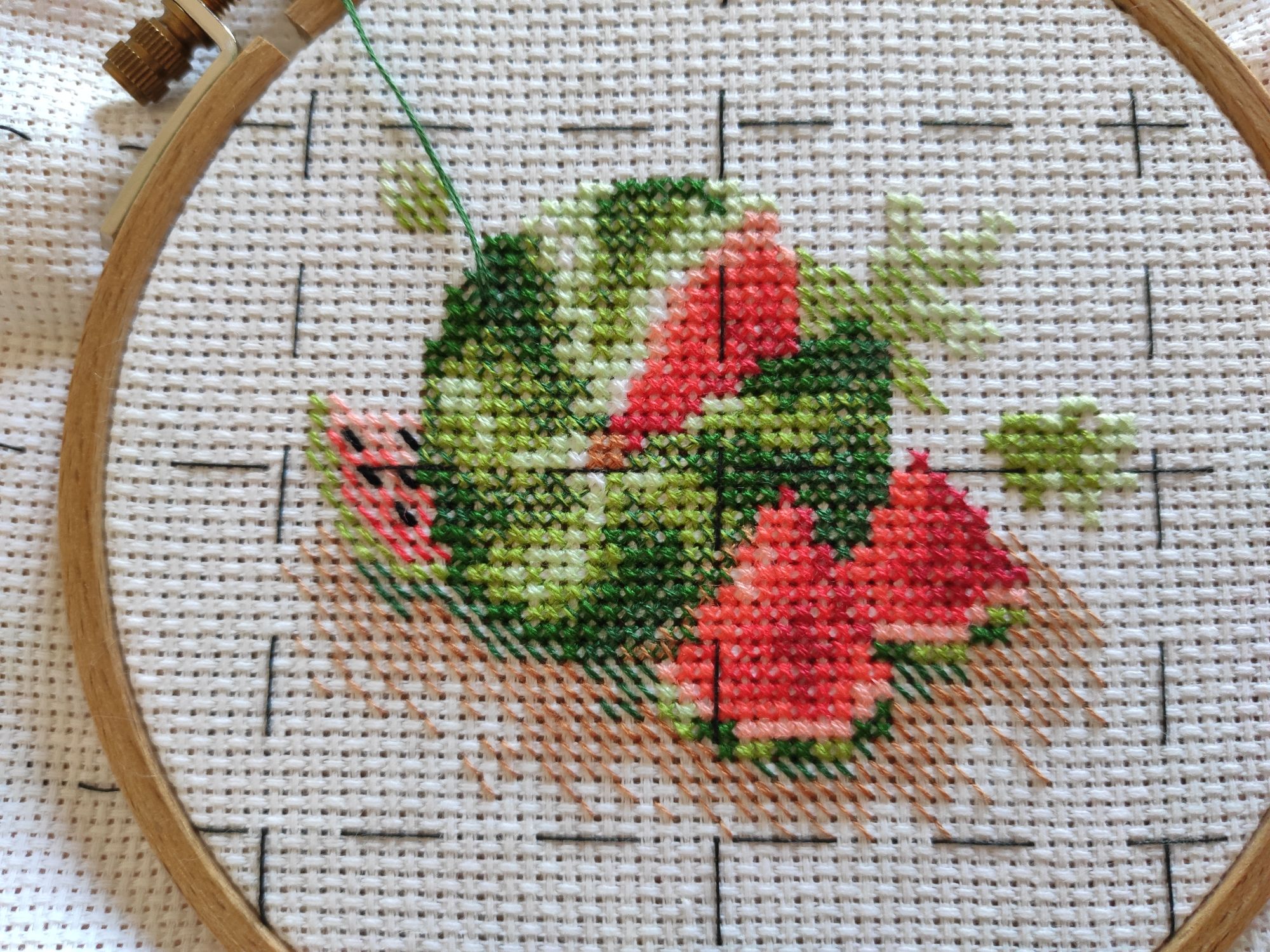25 октября 2024 Пока отпускной отчёт не пишется, хоть вышивальный соображу))) Оля maui очень точно подметила про повороты сюжета, я их зачастую и сама не ожидаю Для начала - вполне ожидаемое или финиш Арбуза) Мне его даже, как оказалось, авансом позеленили. Ну теперь уж точно финиш, было: --- и с бэком: --- и готово : . Ну что тут сказать, ещё одна прекрасная огородная малышка от Студии))) И чего я так долго к ней подступалась?))) Ну и статистика: Число крестиков: 1046 + 227 бэка (1273) Вышивалось: с 24.09.2024 по 15.10.2024 Всего дней: 22 (в среднем по 48 крестиков и суммарно по 58 в день) Дней вышивки: 15 (в среднем по 70 крестиков и суммарно по 85 в день) Максимум: 202 Процент бэка: 17.83% Следующий пункт тоже вполне логичен, подрос Пеликан, было: --- стало: . Мне так нравятся эти блики на воде, шикарнейшие тона! Ну разве что Пеликан не перетянул на себя всё моё внимание, что, на самом деле, тоже не сказать чтобы я ожидала))) Дальше чуть более внезапная история) Деревенька не захотела отправляться на отдых и продолжает расти, было: --- стало: . Это пока самый долгий и результативный подход "за раз") Я, видимо, мандражировала над клумбой на стыке листов и, как прорвалась через тот участок, навëрстываю))) А вот этот поворот сюжета - вовсе неожиданный) Я принесла Павлинов, да не просто так, а с переносом пялец! Было: --- стало: . Ещё в августе я пыталась помочь брату с уборкой и думала, ну уж тут-то повышиваю. Ага, щазз! Вообще ни крестика. Зато сейчас выдался довольно результативный подход. Так что и у родителей есть шансы им двигаться) //Это я периодически подумываю, а не притащить ли процесс домой (и каждый раз решаю, что нет, дома и так процессов вагон)... Ну и добивочка))) Какую вышивальную приятность можно сделать в день рождения, если настроения покупать не наросло? Правильно, расколупать милую малышку) Начала очередной Милл Хилльчик, последнюю из имеющихся в закромах тыковок ( , Mill Hill MH16-2024 Bewitching pumpkin). Начало: . Иду, как и в остальных, по цветам) Тут их вновь немало, но они хотя бы достаточно разные, чтобы не сильно задумываться, который цвет где Узорчик, relax_cross_stitch, Хозяйка смешных зверей и 11 других сказали спасибо Поделиться сообщением Ссылка на сообщение