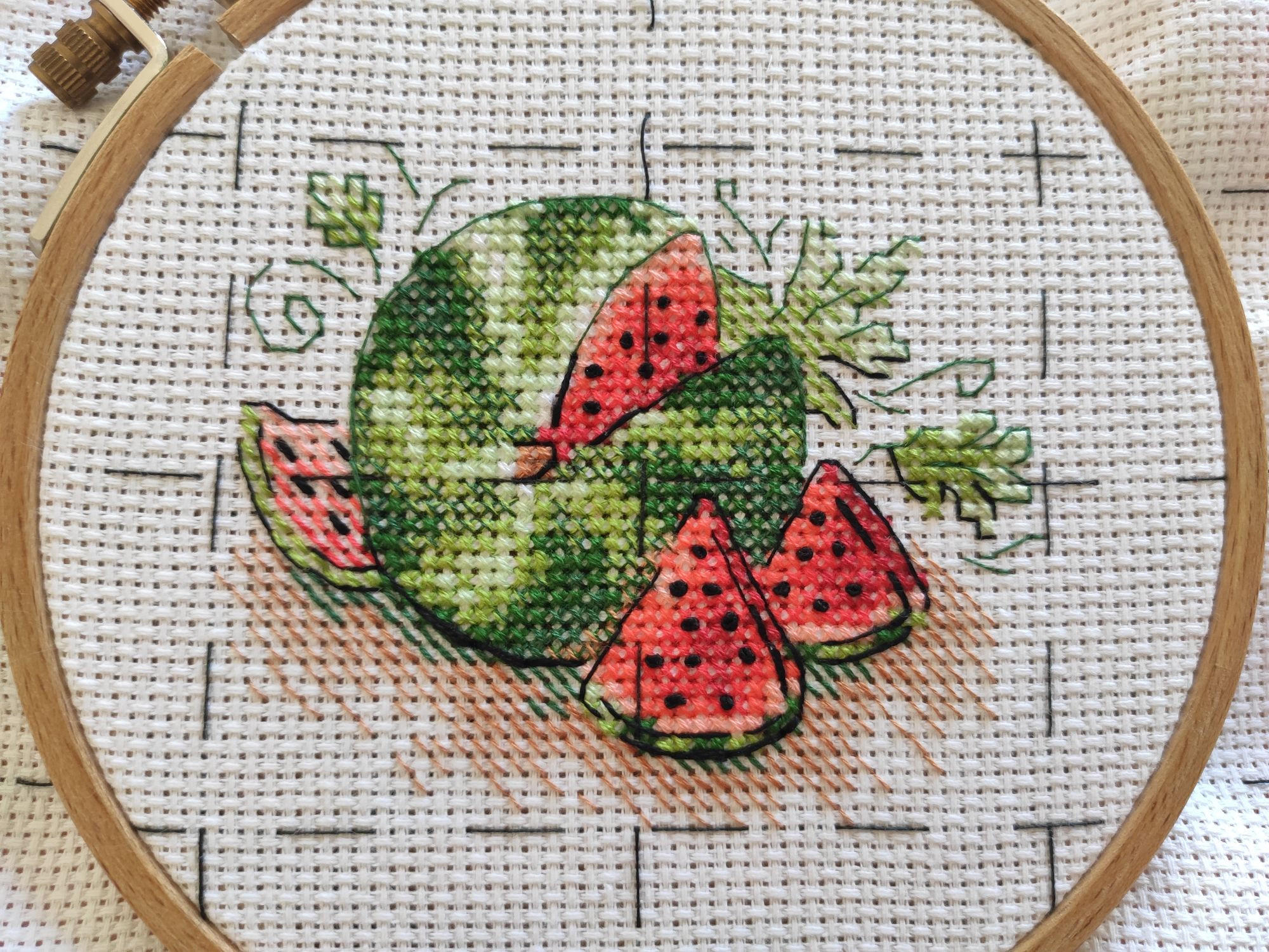15 октября 2024 Некоторым идеям требуется время, чтобы вылежаться. Я без преувеличения год назад завела в систему учёта 2 планируемых проекта, под мысль об Октябрьском разгуле стартов. И оба не начала, маленькие пяльца просто не хотелось занимать, а на пяльца побольше села Димовская Осень (ни о чëм не жалею) . И вот, к следующей осени дозрела, наконец Сначала по приезду я поняла, что назревает кризис финишей, и открыла фруктово-овощную малышку: (МП Студия М-734 Сахарный Арбуз). Распаковала, посмотрела... И что вы думаете? Поняла, что хочу и её тоже по цветам шить. А их 11, плюс 2 бленда, плюс бэк, то есть за остатки сентября ну никак не успеть Так что осталась я в прошлом месяце без единого завершения. Ну и ладно, а Арбузик меж тем вполне себе бодро шагает по процессу: . Для симметрии (да и только Громадины в нелимитированных процессах слегка напрягают) чуть позже решила таки взять и 2 процесс, так что встречайте: красавец Пеликан ( , РТО С336 Со вкусом соли, ветра и солнца) . Подготовка и начало: . Цвета - кайф! По-прежнему не отпускает лазурь) Как по мне, схема несложная. Но меня не напрягают протяжки, а их тут в наличии... И Громадины тоже пока идут. Вообще, я собиралась довести до отчёта Совет (там процесс на полпути), но... Сижу я, смотрю в окно, а там небо голубое, солнышко блестит - и так мне захотелось чего-то яркого, летнего!... Не стала себе отказывать, откопала Деревеньку) В конце концов, её тоже надо хотя бы иногда проветривать))) Было весной: --- стало: . Бэк на схеме - это что-то Чёрные полоски в толщину разлиновки, просто шик. Я там ещё что-то пыхтела на схему в Лукасиной феечке, ага всё познаётся в сравнении, однако... Милл Хилл никуда не торопясь дошился, было: --- стало: . Вырезаться не хочет И чот давно я Дракона не приносила. А он меж тем хоть и медленно, но шьётся! Было: --- стало: . Это уже 20 рядов! ЗЫ. Кстати о системе учёта. Уже третью неделю сайт, где я записываю результаты (mysd), не отвечает Кто может подсказать альтернативу? Точно помню, их даже не одна была, а заклинило и вспомнить не могу((( И, главное, гуглинг ничего не даёт maui, vasilisa-1977, Аринесса и 8 других сказали спасибо Поделиться сообщением Ссылка на сообщение