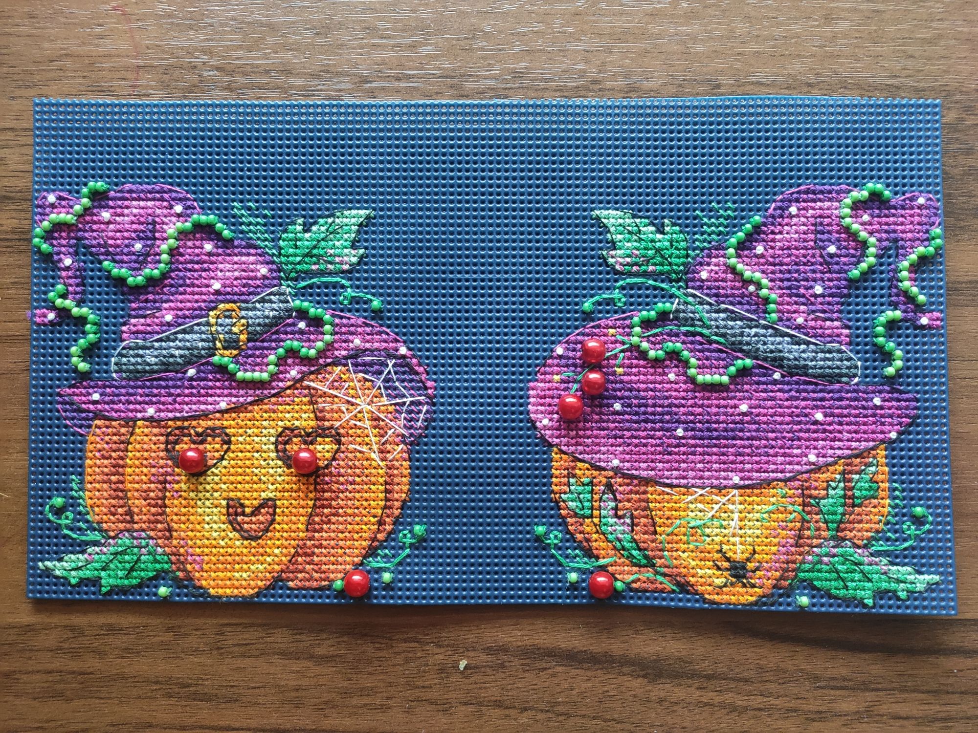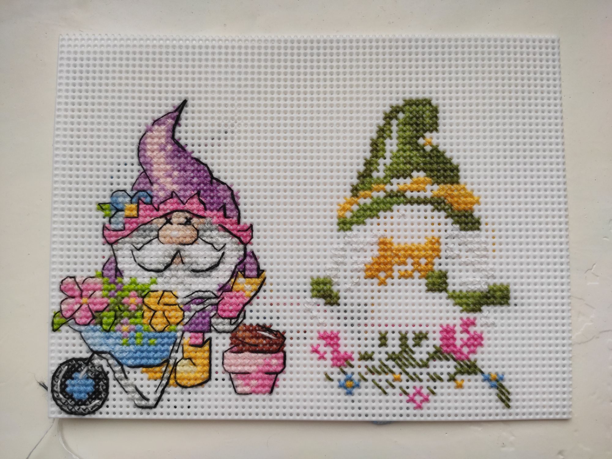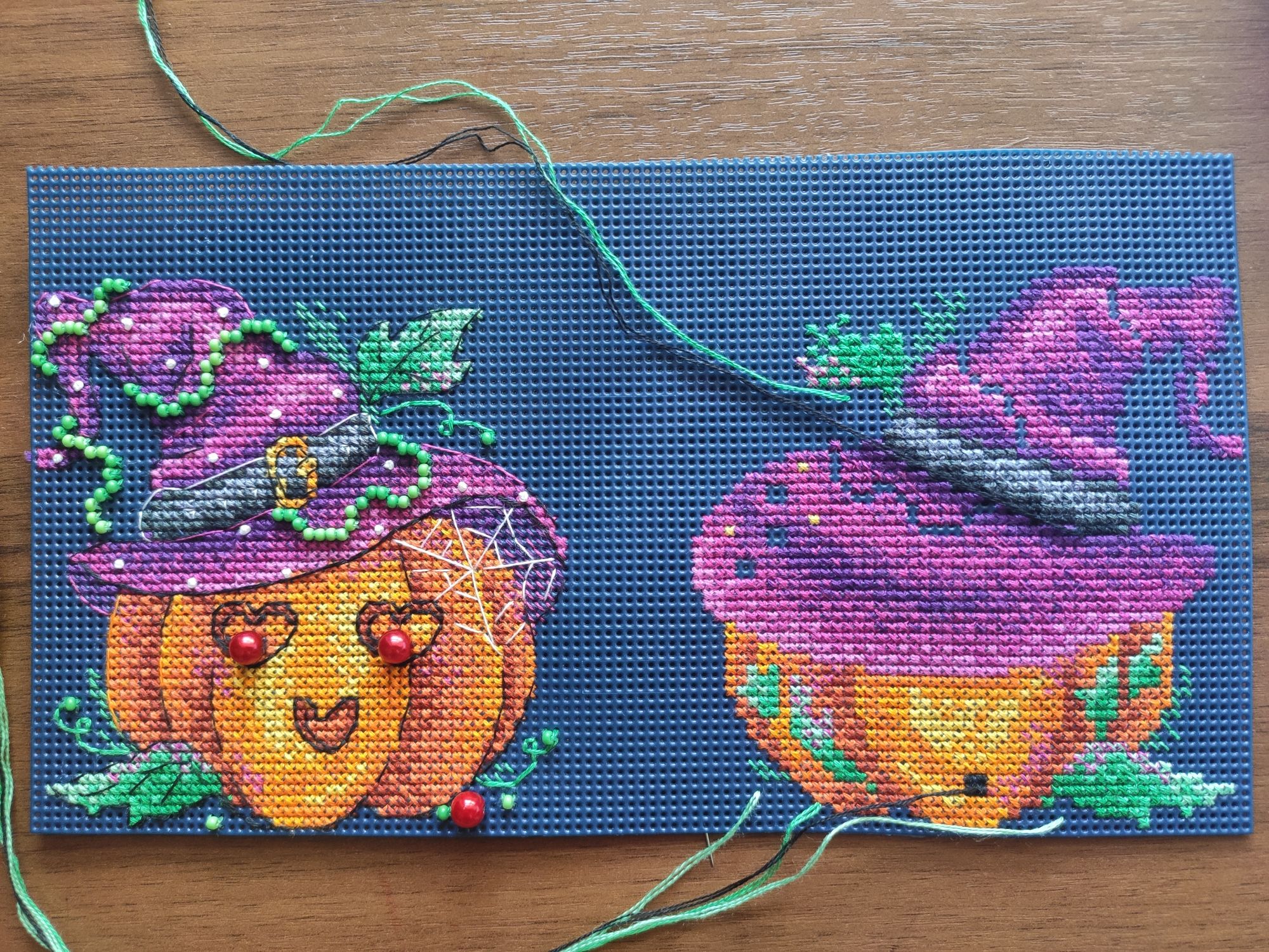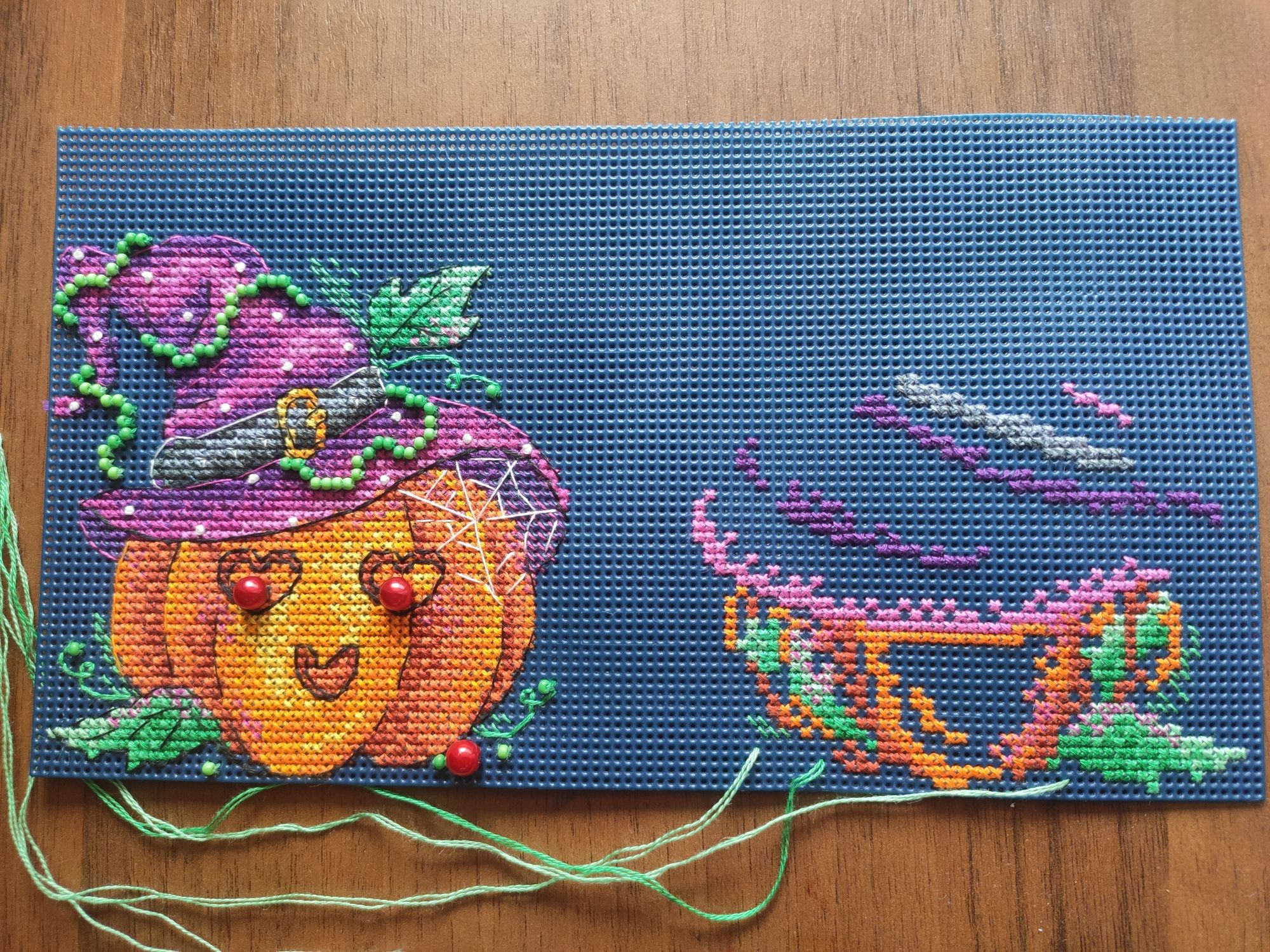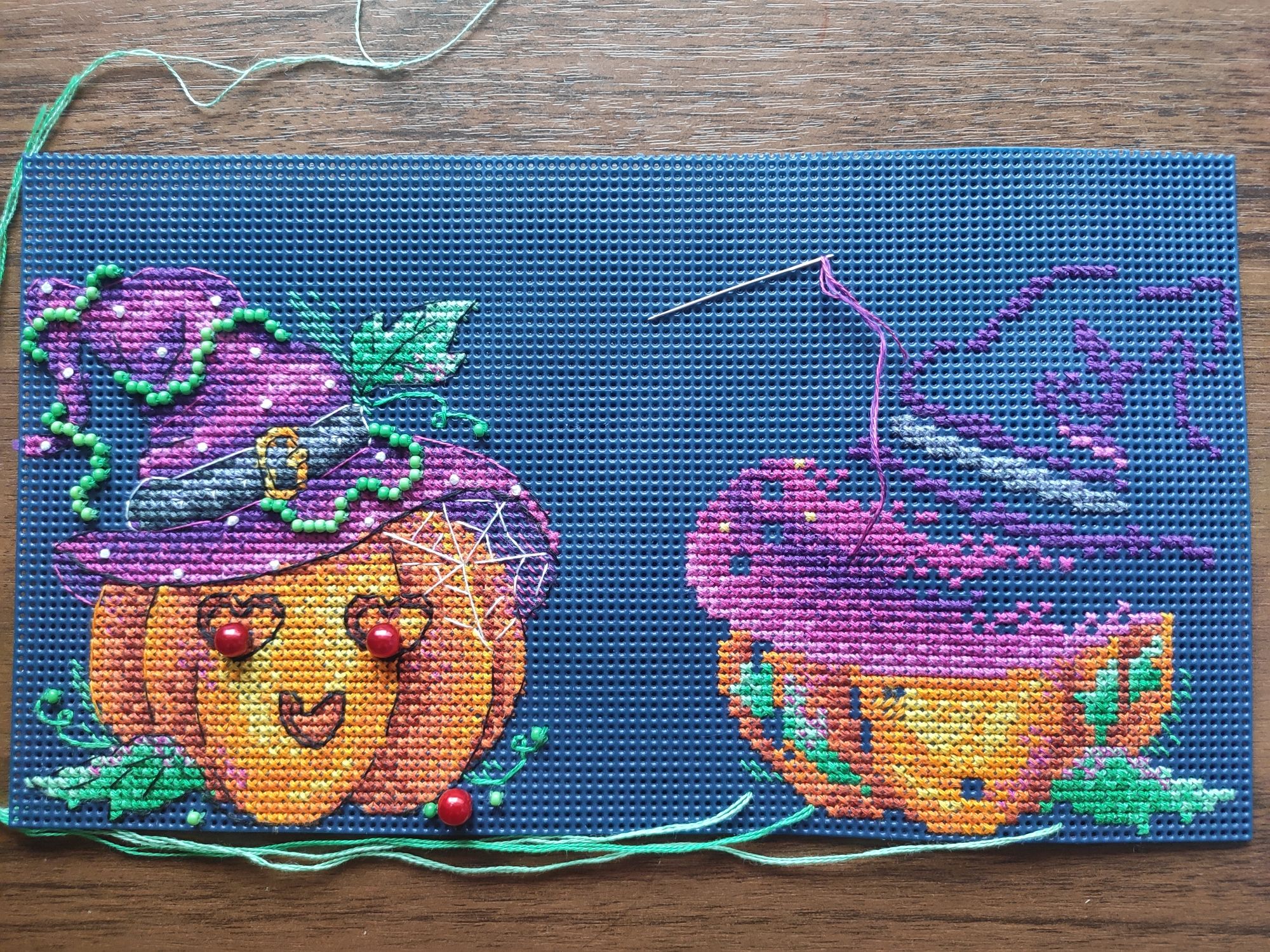 3 марта Ну и вышивального чутка покажу) Я уж думала, что ни одного финиша в феврале так и не случится, особенно после того как вышила первую сторону Тыквы за целых 2 недели. Но Тыквочка нашла возможность ускориться, так что встречайте) Было: --- стало: --- и готово: . Уже и вырезалась))) Шла в огромное удовольствие) Ещë и вся такая украшенная, тут тебе не только крестик с бэком, а и бисер, и бусины, и даже фрузики на шляпе! Но всё равно есть пара нюансов) Во-первых, на прошлой работе от Ларца я быда уверена, что нитки там ПНК, тут же точно другие. Подозреваю Гамму, и я определëнно не в восторге от этих ниток На первой половине приговаривала "ну хоть не рвутся, уже хлеб", на второй они таки восполнили этот пробел Пусть и пару раз всего, но сам факт! И во-вторых, дизайнер рисовал бэк, скажем так, без учëта того, что работа выполняется на пластике, да ещë и с бисером: кое-где предлагалось вести нить через бисеринки, а кое-где втыкаться несчëтно. Да, мало, да, сдвиг в ближайшую дырочку вообще ни на что не влиял, но опять же сам факт! Можно было почистить и на этапе прорисовки, а не силами вышивальщицы))) Ну и статистику в ленту: Число крестиков: 3560 + 579 бэка + 155 бисера + 41 фрузик (4335) Вышивалось: с 31.01.2025 по 20.02.2025 Всего дней: 21 (в среднем по 170 крестиков и суммарно по 206 в день) Дней вышивки: 18 (в среднем по 198 крестиков и суммарно по 241 в день) Максимум: 599 (даже пятисотник нашла! Ушаночный доволен) Процент украшений: 17,88% На этой волне и Гномик наконец обрëл законченный вид: . Какой он красивый! Теперь даже не знаю, которая серия мне нравится больше --- старая яркая или новая пастельная Думала, что сразу начну следующего малыша, но пока что-то нет жажды стартов ни на сколечко И статистику по нему: Число крестиков: 964 + 280 бэка + 269 бисера (1513) //он неожиданно чуть меньше вышитого соседа Вышивалось: с 4.12.2024 по 12.01.2025 Всего дней: 40 (в среднем по 24 крестика и суммарно по 38 в день) Дней вышивки: 21 (в среднем по 36 крестиков и суммарно по 56 в день) Максимум: 195 Процент украшений: 36,29% Продолжает находиться время на Павлинов, было: --- стало: . Хвост просто балдëжный! Но меня с них что-то не штырит в процессе И Дракон вылез из спячки! Было: --- стало: . Дело пошло к весне, и наступило его время Вот, оказывается, в чëм дело было, замерзал бедолага в зимнюю погоду, а сейчас прям в охотку идëт, вот тьфу-тьфу-тьфу на него))) На закуску расскажу про невышивальный внезапничек, что отвлекал меня от основных процессов и частично способствовал продвижению Павлинов) Скрытый текст Моему папе показалось мало одной дачи, и он задумал найти либо более подходящую, либо коттедж. Дело двигалось ни шатко ни валко, ничего удовлетворяющего требованиям не находилось... И вот. Этой зимой один из вариантов был признан перспективным. И его решили брать Причëм, кажется, бонусом к месту пойдут собака и 5 кошек, ааа!!! Паника-паника Почему вообще сей вопрос возник --- мама уже 4 года не ходит, и с ней постоянно кто-то должен находиться((( В итоге на природу папа выбирается от силы пару раз в сезон, и то в основном даже не на полные выходные, а на день без ночëвки. Сделать что-то с текущей дачей, чтобы можно было там обитать с колясочником, --- задача нетривиальная, проще взять и перестроить всë с нуля. Ещë и сам участок с ощутимым наклоном, не покатаешься Таво-этаво, я когда Деревеньку начинала, ничего такого не загадывала! Охотница, maui, Полли и 13 других сказал