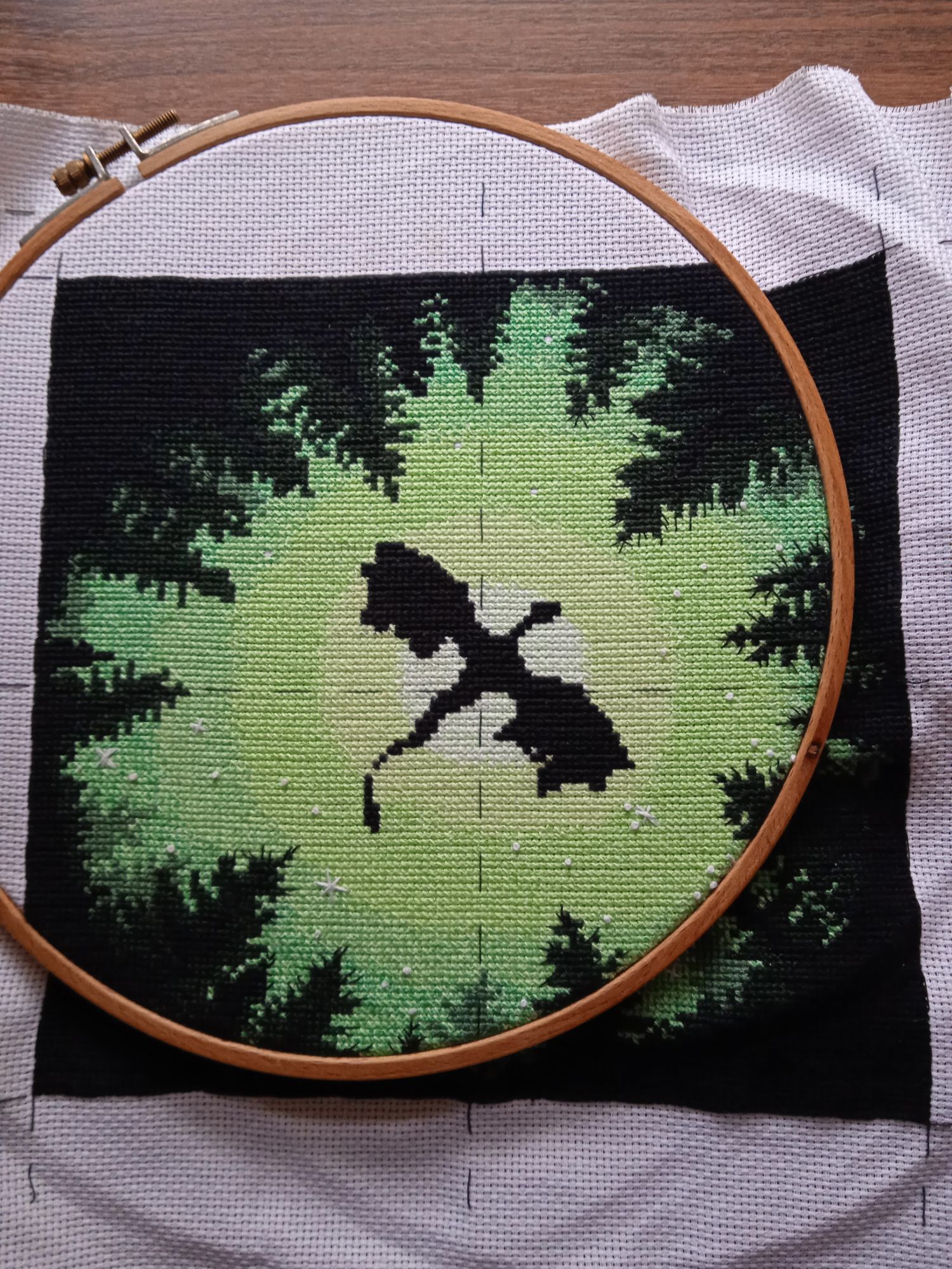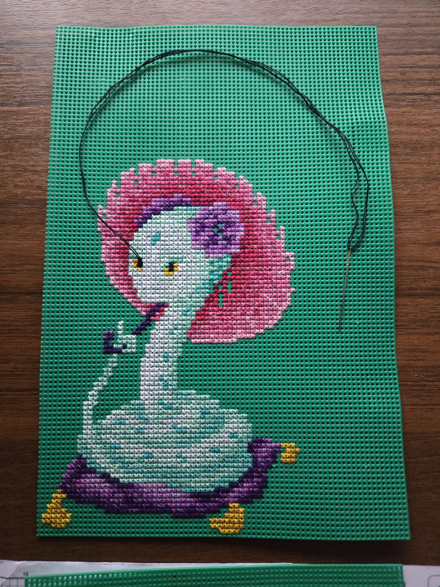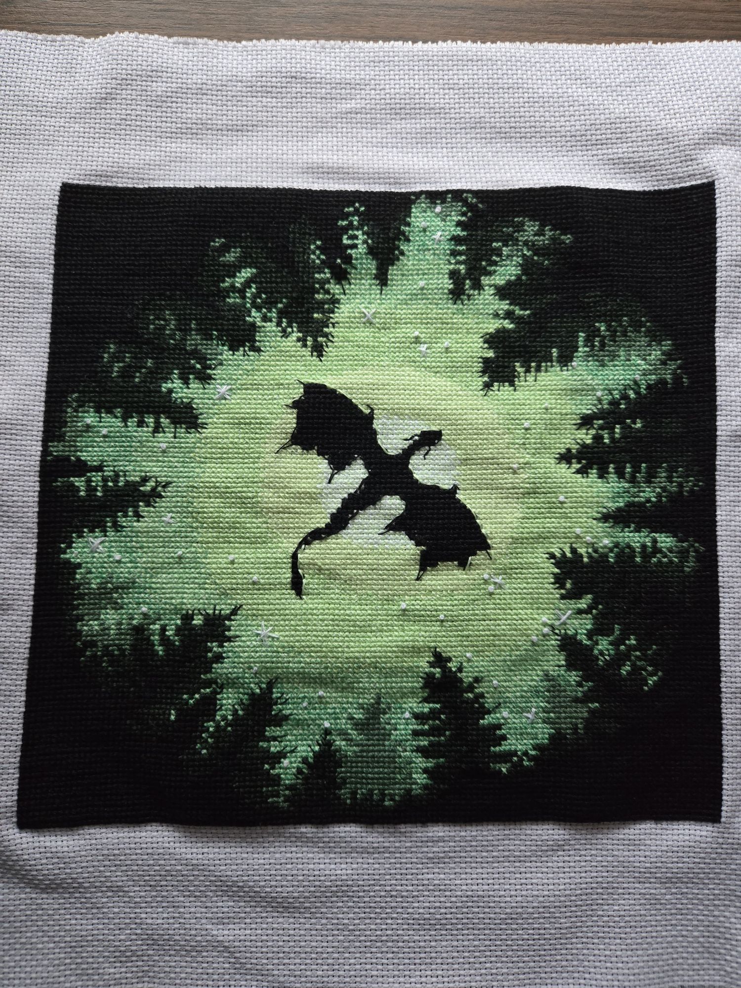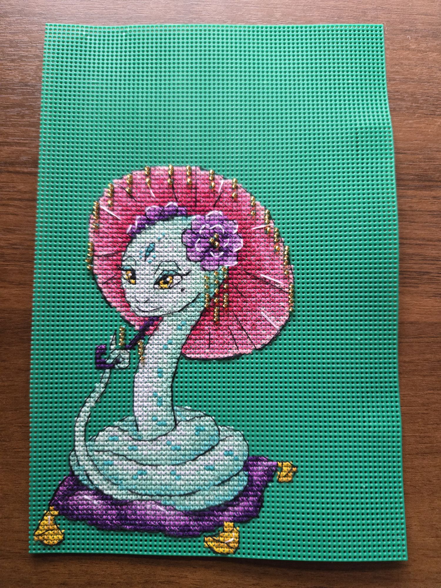 29 ноября 2025 Если вы думаете, что я и в этот раз принесла красивущий Огонь, то нет. А вот если вы, как и я, надеялись увидеть финиш Дракона, то будем радоваться вместе Было: --- и стало: --- и готово: . Фото в темноте упорно не желает быть чётче... Но вживую просто отпад Отшив оставил весьма приятное впечатление, что весьма даже удивительно, потому как, казалось бы, буквально всё было против этого. Во-первых, я не стала упрощать себе жизнь, ни взяв тёмную основу (хотя это, может, и не стало бы таким уж упрощением, кучу тёмного по чёрному шить), ни вписав картинку в круг (видела эту идею в отшивах) Во-вторых, комплектующие от Гаммы. И канва их мне не так чтобы нравится, а уж про нитки и вовсе молчу, ими в лучшем случае просто неудобно шить, а в худшем они при этом ещё и рвутся. Тут у нас был, по всей видимости, вооружённый нейтралитет - зелёная нитка порвалась весной 2 раза подряд, по всей видимости намекая, что пора нам с Драконом слегка отдохнуть друг от друга, и ещё раз на предпоследней ниточке. В-третьих, почти половина крестиков шьётся в 3 нитки. А я не сказать чтобы люблю это дело и на более крупной 14й канве, мне слишком плотно. И пусть Гамма довольно тонкие нитки, но тут и канва 16я. Я понимаю, зачем это предложили дизайнеры, но приятности ощущений это всё равно не добавляет В-четвёртых, вторая почти-половина шьётся со светящейся ниткой. И это просто ужас перфекциониста (хорошо что я не он) - нитка совершенно не ложится ровно и постоянно, постоянно, постоянно недовытягивается, то чуть-чуть, то прям петлёй. И вот удивительно, простые нитки порой тоже довольно сильно "разъезжаются" своими кончиками по ходу шитья, но только удивлённо пожимаешь плечами на это. А тут прям ужасно раздражает На другой чаше весов была очень простая схема (а ведь для кого-то это определённо бы вошло в список выше), классные тона зелени и очень, хм, вштыривший дизайн, сильно ассоциировавшийся с обалденным мультиком "Как приручить дракона", даже с конкретной сценой - когда дракона ловили. На самом деле там не было леса, но ассоциациям всё равно И статистика сразу: Число крестиков: 15872 + 470 бэка + 41 фрузик (16383) Вышивалось: с 06.12.2024 по 25.11.2025 Всего дней: 355 (в среднем по 45 крестиков и суммарно по 46 в день) Дней вышивки: 73 (в среднем по 217 крестиков и суммарно по 224 в день) Максимум: 1033 (Ура! Тысячник! ) Процент украшений: 3,12% Ну и добавлю продвижения по Змейке, было: --- стало: . Лицевая сторона в крестиках закончилась. Инструкция предлагает начать не с бисерочка, как мне нравится, а с бэка, и тут, видимо, придётся последовать совету - часть контуров на зонтике уходит под бисерные "висюльки"... Я думала, змея чуть больше, чем она есть, поэтому возможно займусь поактивнее в декабре. Потому как других явных идей про финиш всё равно нет... Зы. Ну и последние фото сделаны на другую камеру, я наконец-то при новом телефоне Пока фото, кажется, вполне нормальные. По крайней мере наводятся на резкость без танцев с бубном Gellathefox, Каори, Auria и 10 других сказали спасибо Поделиться сообщением Ссылка на сообщение
