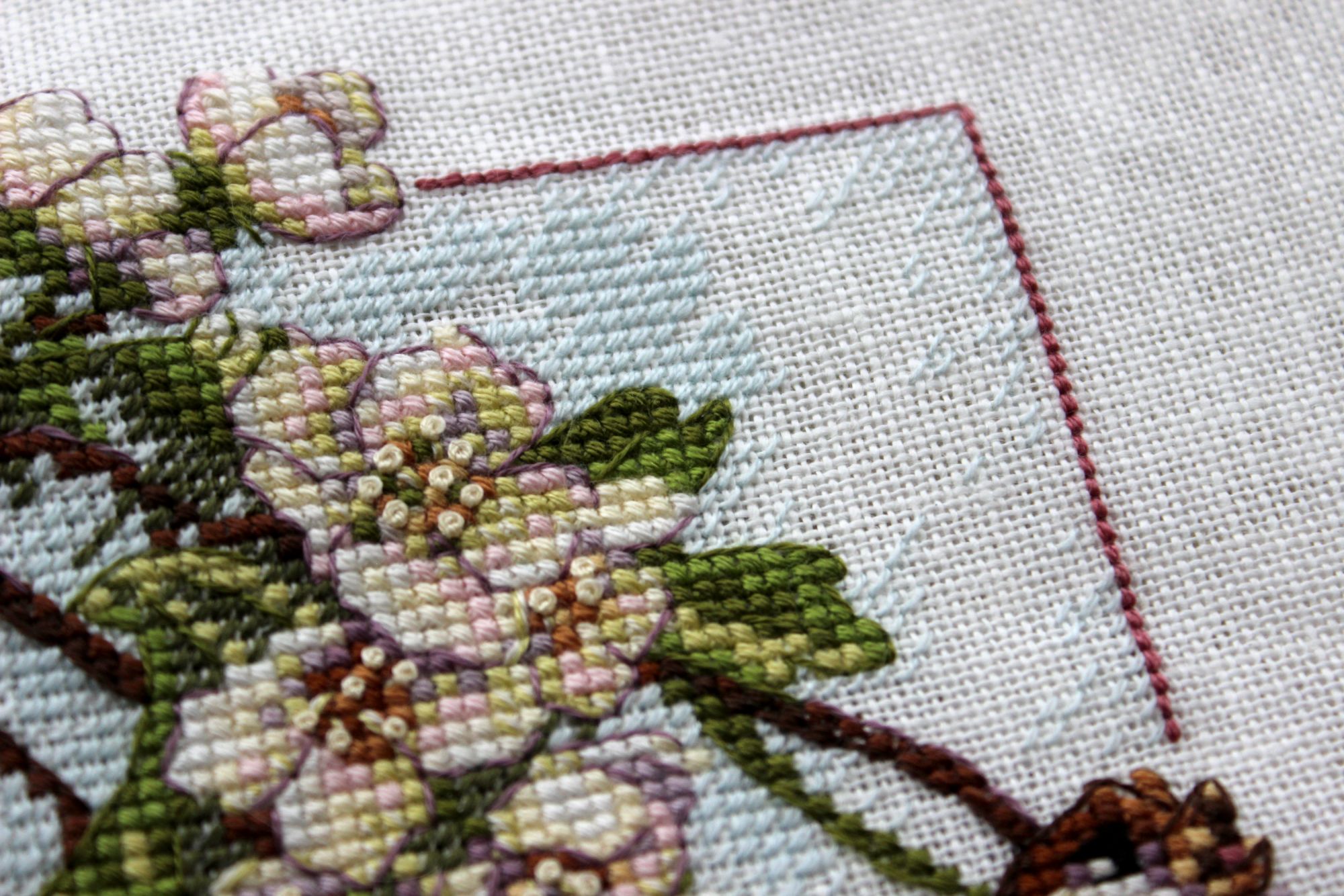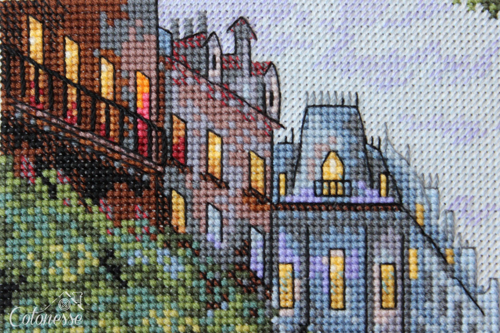 29 июля 2022 Доброго всем дня и наступающих выходных! А я продолжаю репортаж из жизни одного рулончика Сегодня на очереди дизайн, который очень понравился мне сразу в момент анонса Новость была где-то осенью, а в конце декабря у меня ДР. Так что желанный наборчик вскоре подарил мне муж)) Начала в январе 2020г Мережка, Rainy Paris 21х29см, аида 16, 39 цветов DMC, бэкстич, французики, лейзи дейзи Оригинальная иллюстрация Помню, посмотрела я на пестрое дерево, вспомнила Heritage и решила повышивать парковкой. Давно к ней не прибегала, а техника по-своему интересная) За первый вечер получился квадратик. Припаркованные нитки начинают потихоньку захватывать пространство) Когда появился кусочек неба, я заметила, что он не очень похож на обложку. Видите? Небо будто инвертировано по светлоте. Где у меня светлее, на обложке темнее. Несколько раз проверила ключ. Потом написала производителю в инстаграме. К моей радости они ответили довольно быстро. Совместными усилиями мы выяснили, что ошиблась действительно не я, а человек, который делал первоотшив. Они уточнили, какими именно номерами вышиваются спорные символы и предложили даже дослать ниток, если вдруг я хочу вышить как на обложке и мне не хватит (там полукрест в 2 нити вместо 1й). Это не понадобилось, но такая отзывчивость всегда греет душу (это фото в гаечку не надо, следующие нужны) Дальше у меня есть несколько инстаграмных фоток. Каким-то чудом я даже выложила туда часть процесса. Хотя через несколько публикаций чудо закончилось Канва в наборе голубая, второму фото достался уж очень светлый день)) Самая волшебная для меня часть этой картины - балкон с мягким, утопающий в зелени Вышивала его с особым удовольствием. Здесь оградки еще нет, как и надписи на табличке. Это уже апрель 20г. Месяц на самоизоляции. Так себе ассоциации. Так что возьмем другую. В тот момент я смотрела "Королеву Сондок". И Мисиль - потрясающий антагонист. Тот случай, когда противник главного героя радует вас не меньше самого героя. Обязательно посмотрите, если любите исторические дорамы)) Кстати, все что могло оказаться кованым, я сделала не бэком в две нити, а кордингом. Шнурочки я обожаю, и тут они показались мне очень в тему. Перила, кронштейн для фонаря. На финальных фотках я постаралась хорошо это отснять. К слову, за первую четвертинку парковка успела мне надоесть и я продолжила шить по цветам)) Надпись на табличке я постаралась сделать ближе к оригинальной иллюстрации. И добавила бликов света на завитки кронштейна Серединка! И на этом моменте вышивка этого дизайна прервалась почти на год. Сначала из-за заказов на шкатулки, потом было настроение на другие дизайны. И тут я ее чуть не испортила Этот процесс я начала еще на Иволге. И просто отставила ее на окошко, чтоб не мешалась. Думала, что просто на пару дней, а она там так хорошо стояла и не мешала. Додумалась, да... Спиной к солнцу, хоть это выручило. Пострадала ткань, она стала не очень голубой. И те нитки, что были навешаны на пако. Я их отложила на случай острого дефицита до конца процесса и взяла новые нитки с плашек (я навешиваю по чуть-чуть). И мне их хватило! Вот так она стояла, видно за шкатулкой. Это окно угловое. Спина вышивки смотрела прямо на восходящее солнце. Прошел нервный во всех отношениях год. Я уволилась с той работы. И взяла несколько месяцев тайм-аута, чтобы прийти в себя и доесть все