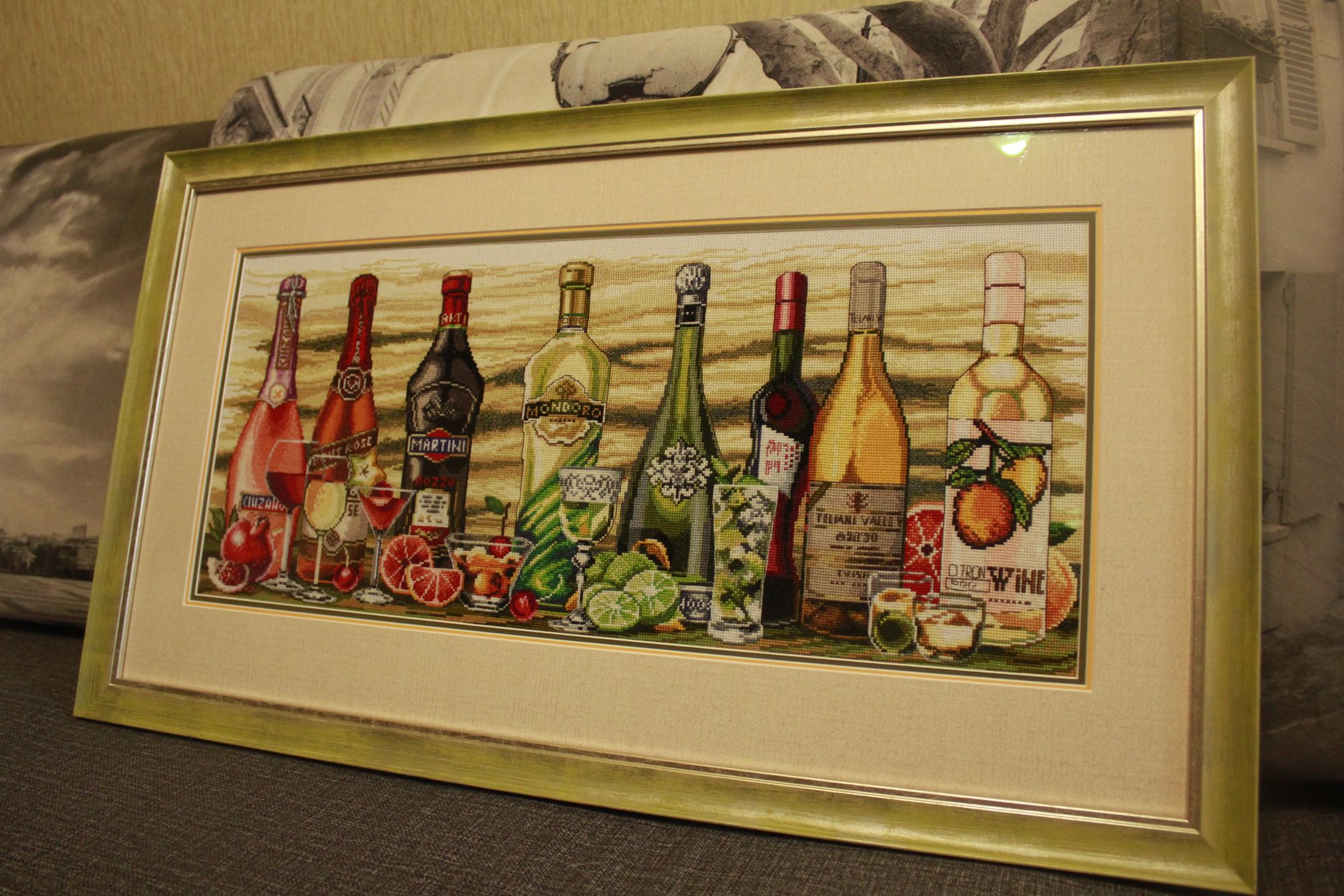 13 апреля 2019 Доброго всем времени суток! Я только вернулась из багетки с тремя работами. Не совсем я довольна своим леопардом. темноват на мой взгляд, оформление больше для кабинета пойдет. Может паспарту другое закажу, еще подумаю. А как вам? Теперь серия моих городов от Риолис выглядит таким образом. Раз уж я заговорила о серии, то вот как продвигается мой Лондон. Вышивается проще всех остальных городов, оттенки намного ярче, чем на превью. Нитки прямо горят на канве! Надеюсь закончить работу за неделю, приступить к новому городу, а этот отдать на оформление вместе с "Фрегатом". Также из багетки я забрала свою вторую панельку от Марьи Искусницы "Игристое", Это парная работа к моим банкам из той же серии, оформление схожее, тут тоже музейное стекло и паспарту под лён. Вместе они смотрятся так, размер их теперь около 80 см в длину, вешать такие картины в квартире некуда, а вот в доме я им место нашла. У барной стойки они будут в тему. Мой процесс от Дим с павлином выглядит теперь так. Вышиваю его по программе, идёт легко, но сам процесс организован для меня недостаточно удобно. На больших ку-снапах его вышивать не всегда удобно, а станок "Иволга" мне кажется слишком громоздким в моей квартирке. Заказала себе держатель для пялец и рам от Бос, надеюсь станет удобнее. И последний мой процесс- Хаед "Кот в ирисах". очень тяжело мне даются простые участки с белой шерсть. В этом листе было 4 символа всего на большей части работы. Вчера заставила себя сесть и вышить лист, пообещав себе потом продолжить вышивать кошачью голову. Придётся так и прыгать с белых участков на яркие цветные. После завершения моей любимой работы "Фрегат-гладиолус" от Е.Волковой, я впала в некое уныние и вышивальную депрессию. Опять напала на меня тоска по процессу, но мирилась я с ней недолго. Моя влюбчивая натура проявилась вновь, на этот раз в глаза бросился вот такой невероятный дизайн "Роскошный букет". Автор тот же,. По мотивам картины Альберта Вильямса. 168 х 213 крестиков. 71 цвет ДМС(59 чистых). В схеме используются: крест, полукрест в 1, 2, 3 нити и смешанным цветом, бэк в 1 и 2 нити, французские узелки. Фон там не вышивается, поэтому я разорилась на дизайнерскую покраску канвы от Ланы. Пока всё в процессе, но я в предвкушении собираю нитки, заказала красивые деревянные органайзеры. Большое спасибо за внимание! В следующий раз расскажу про своих питомцев и покажу наш новый дом, летом должны уже переехать. Гало4ка, S4astlivaja, monica и 9 других сказали спасибо Поделиться сообщением Ссылка на сообщение