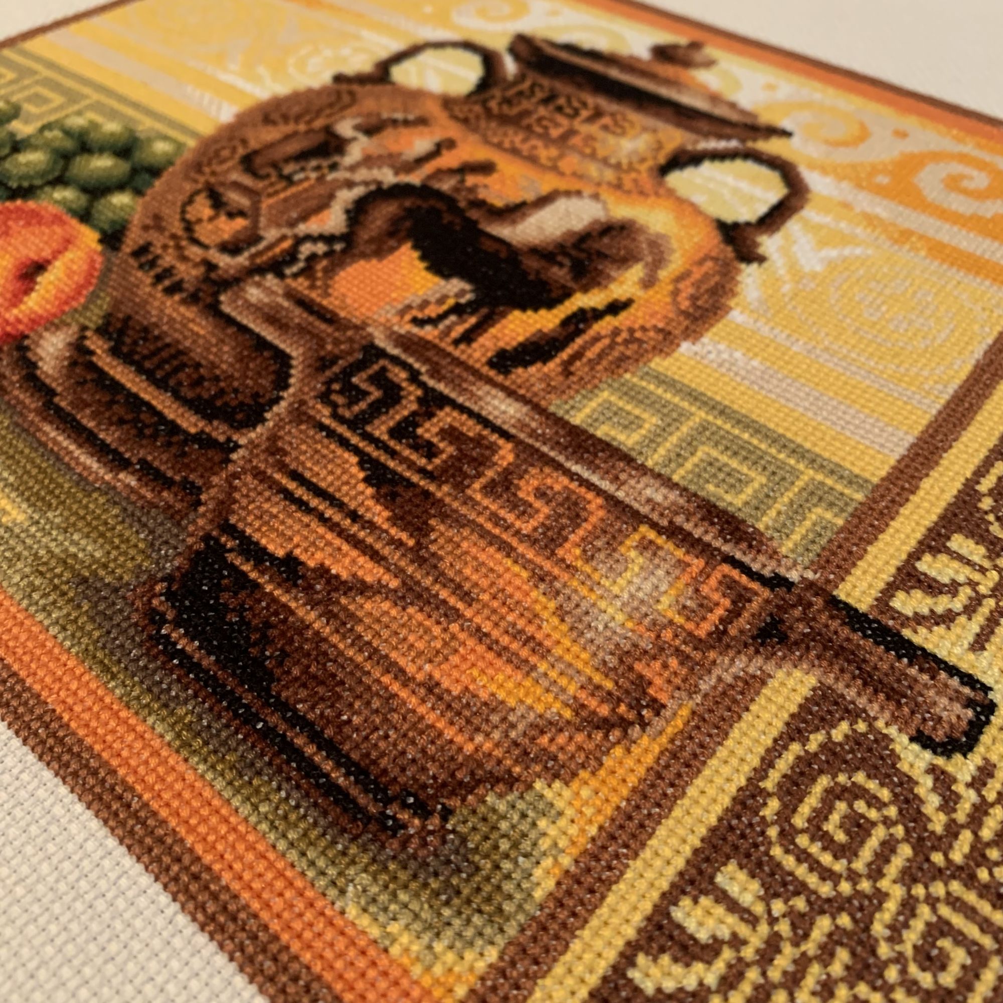 2 июня 2024 В общем, случилось так, что в процессах у меня осталось 4 работы - на 22,25 и 27 каунтах, и еще снеговички на 10-м. И что-то меня такая тоска взяла и мне так захотелось Аиду 14, что я начала новый процесс, и даже канву в нем поменяла с 16 на 14. Благо, увидела здесь на форуме, что одна девочка так уже делала и ниток хватило. Летний натюрморт (Панна Н-1488) - 200*202, 43 оттенка, по набору. И на сегодня отшила: Очень нравится! Прямо удовольствие получаю во время отшива! Всё логично, большие куски одним цветом, - просто песня! Танагра, lefkorosida, Сибирская Кошка и 19 других сказали спасибо Поделиться сообщением Ссылка на сообщение