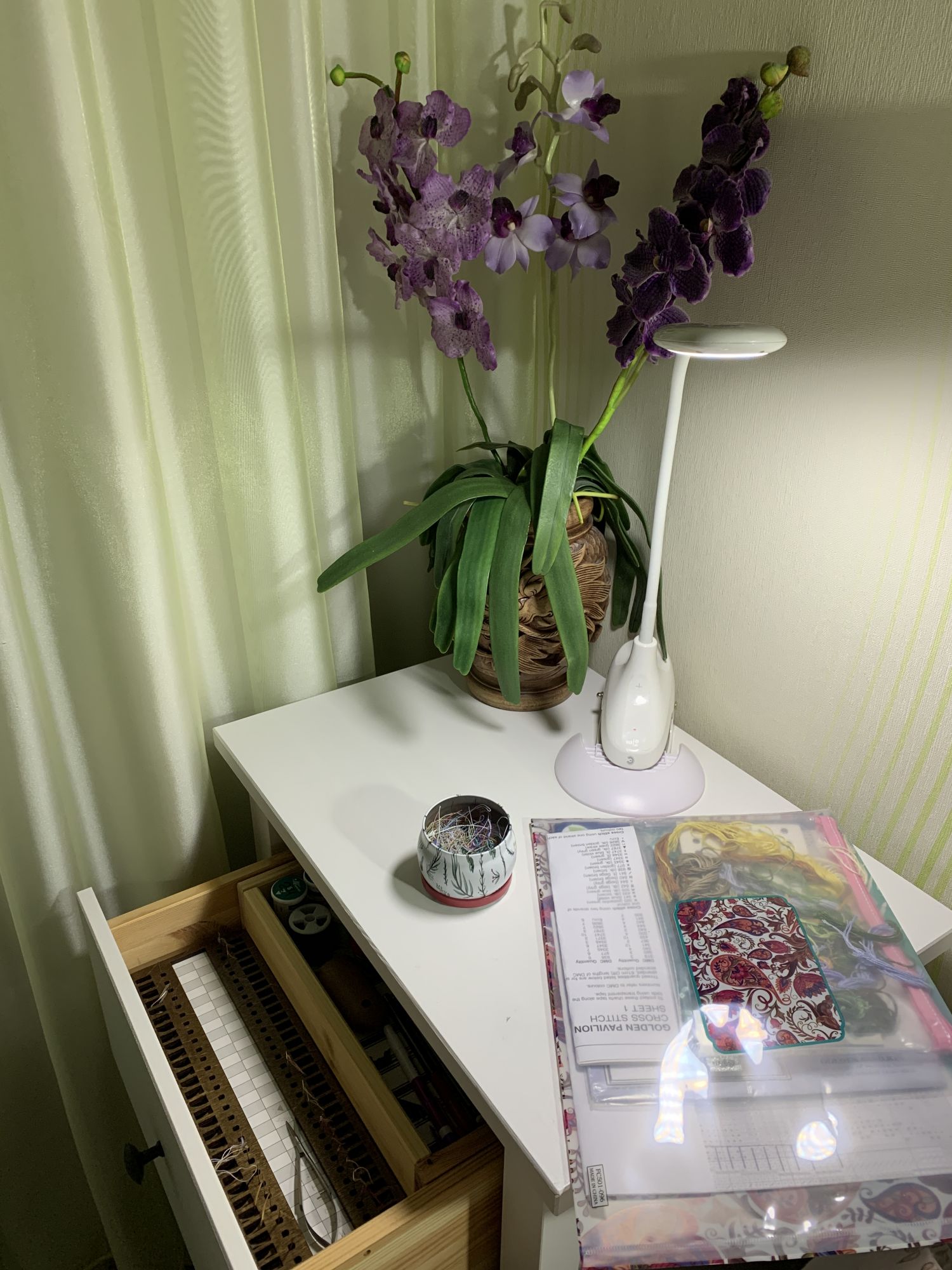 4 февраля 2021 Как такового рабочего места нет. Вышиваю на диване, на пяльцах, все хозяйство в пакет убираю. Рукодельные запасы храню под кроватью в икеевских коробках. Есть мечта об отдельной комнате с комодиками и шкафчиками, и много много света. феня777, Pksusha, kreolka и 11 других сказали спасибо Поделиться сообщением Ссылка на сообщение