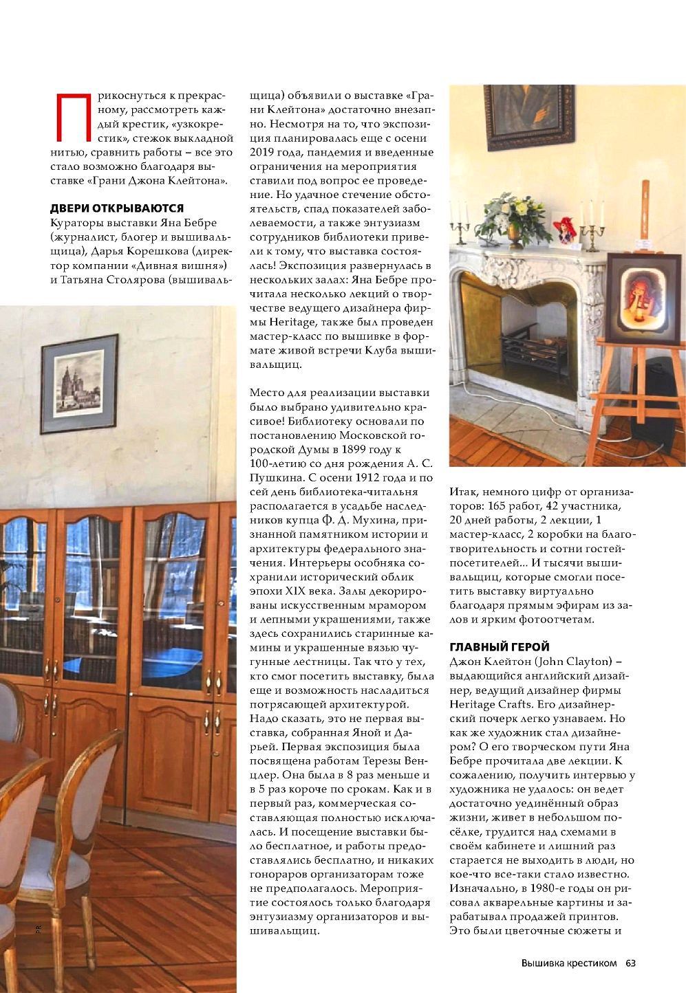 31 мая 2021 21.05.2021 в 17:54, Raduga777 сказал(а): Ждала, что кто-нибудь напишет, чтобы похвастаться, что увидели фотографии своих вышивок по дизайнам Джона Клейтона в журнале "Вышивка крестиком", но не дождалась, поэтому пишу сама Может, узнаете свои работы. В последнем номере "Вышивки крестиком" была опубликована статья о выставке, за которой мы здесь пристально следили. Организатором, как мы помним, была Яна Бебре, за что ей большое спасибо. Собрать 165 вышитых работ и организовать такое масштабное мероприятие в сжатые сроки -- это огромный труд. Желаю приятного чтения, но если я нарушаю какие-либо правила, просьба удалить этот пост. Ого! Какое событие! Девочки, чьи работы попали на страницы журнала, поздравляю! Надеюсь, вам удалось купить на память номер журнала? lesik, Jemmalinne, Текил@ и 10 других сказали спасибо Поделиться сообщением Ссылка на сообщение