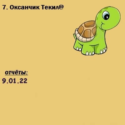 14 января 2022 Черепашки, вы все молодцы! Все продвинулись! Первый шаг сделан! .............. В предстоящие выходные жду новые отчёты! vikkovesh, lenaiura, оленек и 17 других сказали спасибо Поделиться сообщением Ссылка на сообщение