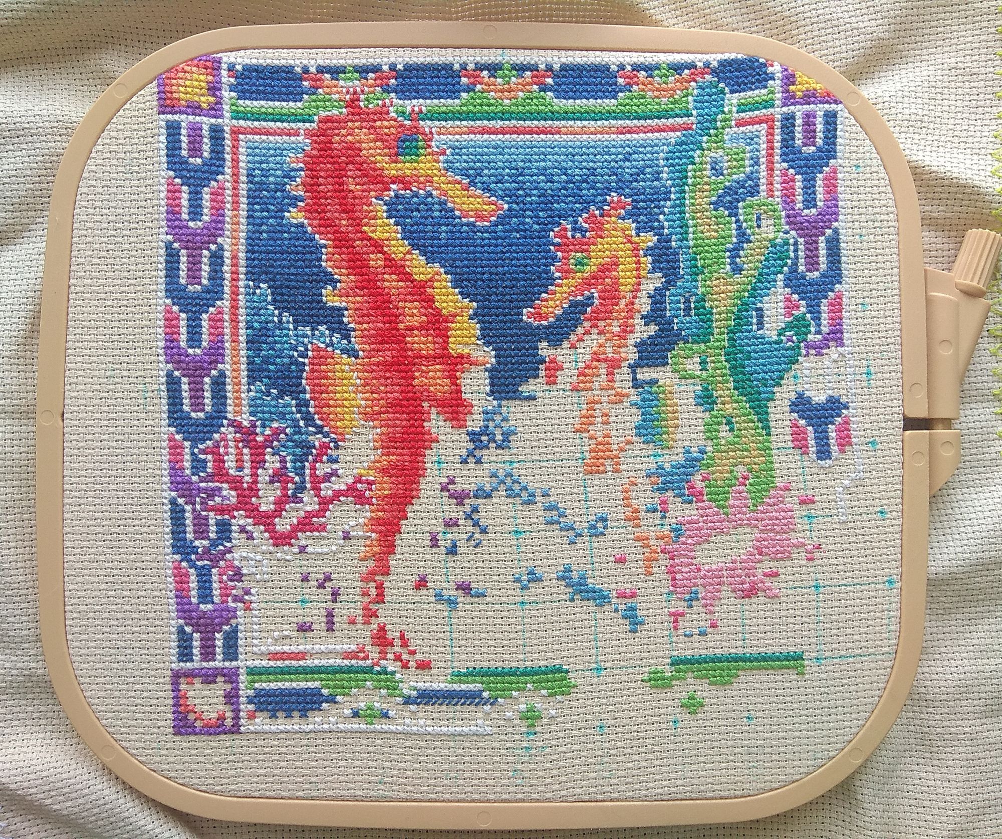 5 февраля 2022 59 минут назад, СветланаМ сказал(а): Я почему спросила ... У нас Люда тоже этих коньков сейчас шьёт, но у Люды почему-то отшив темнее, и мы даже обсуждали в Клубе такой момент, как распарывание и замена синих ниток.... Да, я видела. Её отшив и вдохновил меня закончить их. )) Я как раз хотела насыщенных цветов, поэтому и взяла более тёмную основу и 16 каунт. На моих фото, как и на обложке набора синие оттенки искажены немного, в реале они немного даже в бирюзу. Но насыщенность примерно такая же. Как по мне, так в живую все цвета хорошо сочетаются. ) СветланаМ, Лаки, пеларгония и 8 других сказали спасибо Поделиться сообщением Ссылка на сообщение