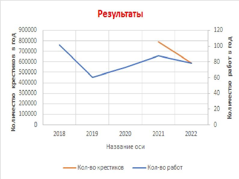 9 декабря 2022 14 минут назад, СветланаМ сказал(а): Я хоть и официально не на работе, но дел полно.....А я хочу ВЫ - ШИ - ВАТЬ! Я на работе, но тоже хочется вышивать или хотя бы написать здесь нормально, не дёргаясь и не пугаясь, а то коллеги снуют туда-сюда, подглядывают Между тем я, обратившись к итогам прошлых лет, на основании статистических данных сделала таблицу, а заодно и вывод, что нам есть куда стремиться Внизу -- годы, начиная с 2018, слева -- ось с количеством вышитых крестиком (данные предоставлены Госкомстатом завклубом за последние два года, поэтому график выглядит куцо), справа - ось с количеством вышитых работ в год. Данные за 2018 год можно, наверное, не принимать во внимание, так как количество участников было гораздо большим. Тем не менее, есть повод побить рекорд в 102 работы, вышитые Клубом в 2018 г. Surik, СветланаМ, Pksusha и 11 других сказали спасибо Поделиться сообщением Ссылка на сообщение