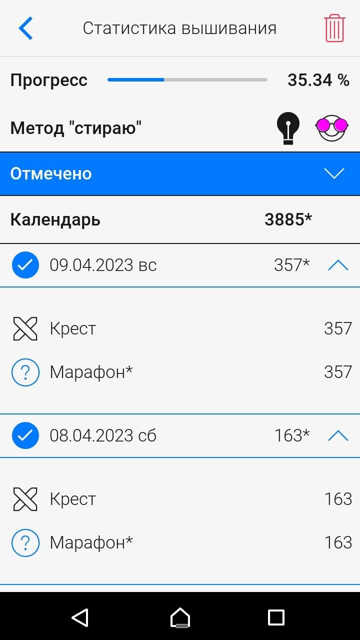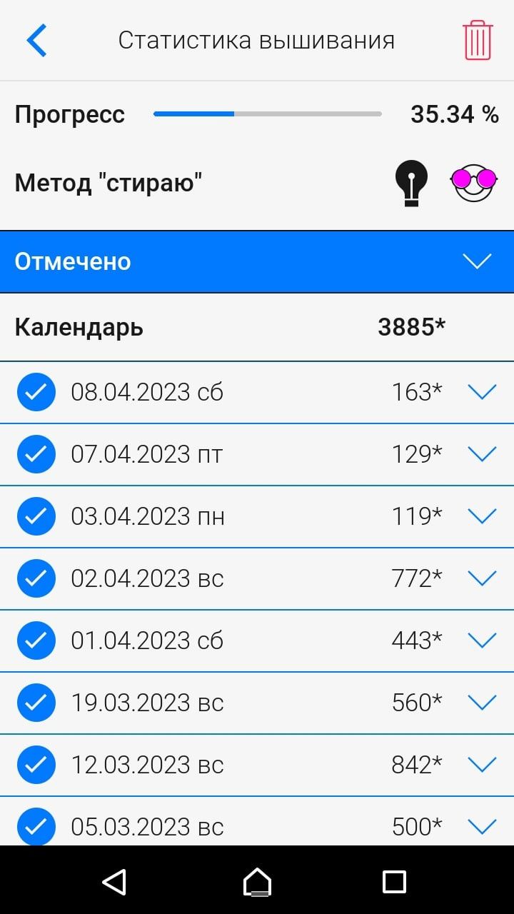 9 апреля 2023 мой отчет было стало и отчет из саги, недокрестиков не было, только полные крестики, поэтому подсчет должен быть верным, вышивала два дня 8 и 9 апреля vodonika, Каори, Наta и 16 других сказали спасибо Поделиться сообщением Ссылка на сообщение