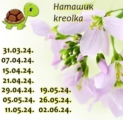 5 июня 2024 Девочки, уже среда и пора начинать новый сезон Черепашек - 11 Ведь всем надо успеть до выходных нашить отчётов; Начинаем новый сезон - 11 Список участниц: Аллуся @markovka Я @СветланаМ Аня @Камма80 Юлик @kas_julia Машуня @Molly21 Натуля @PrimaN Надюша @Надежда Минск Оля @colin Ленок @lenaiura Натушик @kreolka Люда @Лаки Дашуня @call_me_daria Ольгуня @чеба Лесик @lesik Ната @Наta Надин @Sheyne Учётные карточки: Начало пути: ......... поехали! Вперёд черепашки! . Отчёты приносим в предстоящие выходные call_me_daria, lesik, PrimaN и 14 других сказали спасибо Поделиться сообщением Ссылка на сообщение