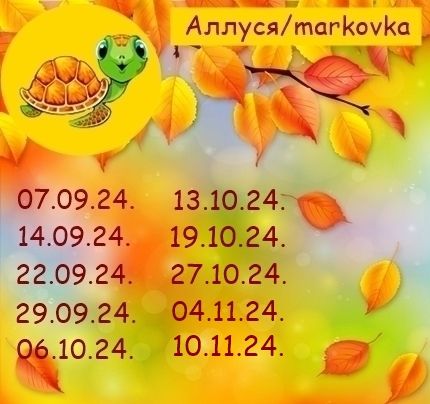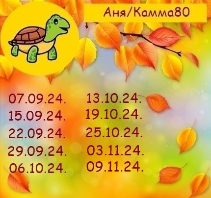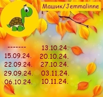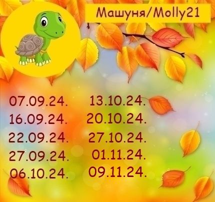 11 ноября 2024 О новом сезоне Черепашек Записались: Я Олик @colin Машуня @Molly21 Аня @Камма80 Натуля @PrimaN Машик @Jemmalinne Юлик @kas_julia Ната @Наta Наташик @kreolka Ленок @lenaiura Еленчик @АлёNка ------------------------------------------ Список редисок: Натуся @Raduga777 Аллуся @markovka Надюша @Надежда Минск Валя @Валия ----------------------------------------- Не смогут: Ольгуня @чеба (Олечка, выздоравливай поскорее) Прошу ответить: Люда @Лаки Лесик @lesik Светуля @феня777 Дашик @call_me_daria Надин @Sheyne и Натали @Surik девочки, вы куда потерялись? Jemmalinne, Molly21, Камма80 и 11 других сказали спасибо Поделиться сообщением Ссылка на сообщение