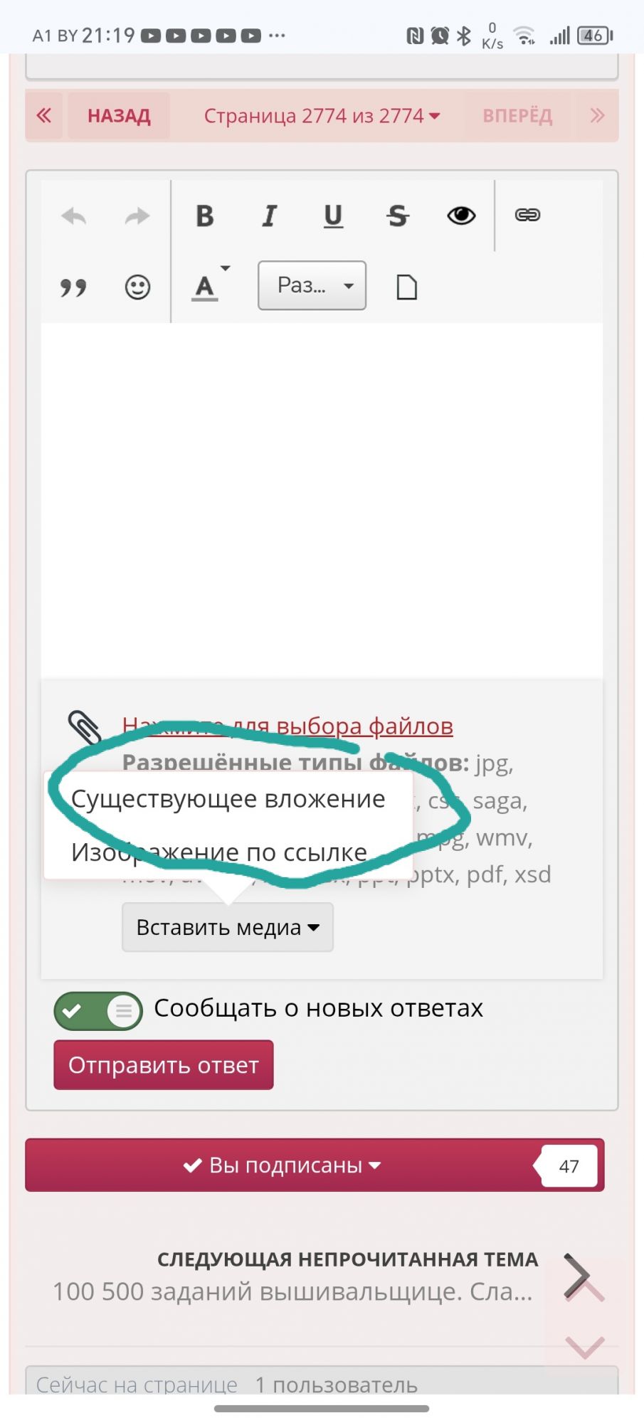 11 мая 1 час назад, чеба сказал(а): Девочки, не могу найти "было" Оля, выбирай не "Нажмите для выбора файлов", а вот это: Вставить медиа - существующее вложение. Откроются все фото, которые ты вставляла на форум. Выделяешь галочкой нужное - и готово! Только курсор надо заранее в правильное место сообщения поставить. markovka, PrimaN, СветланаМ и 9 других сказали спасибо Поделиться сообщением Ссылка на сообщение