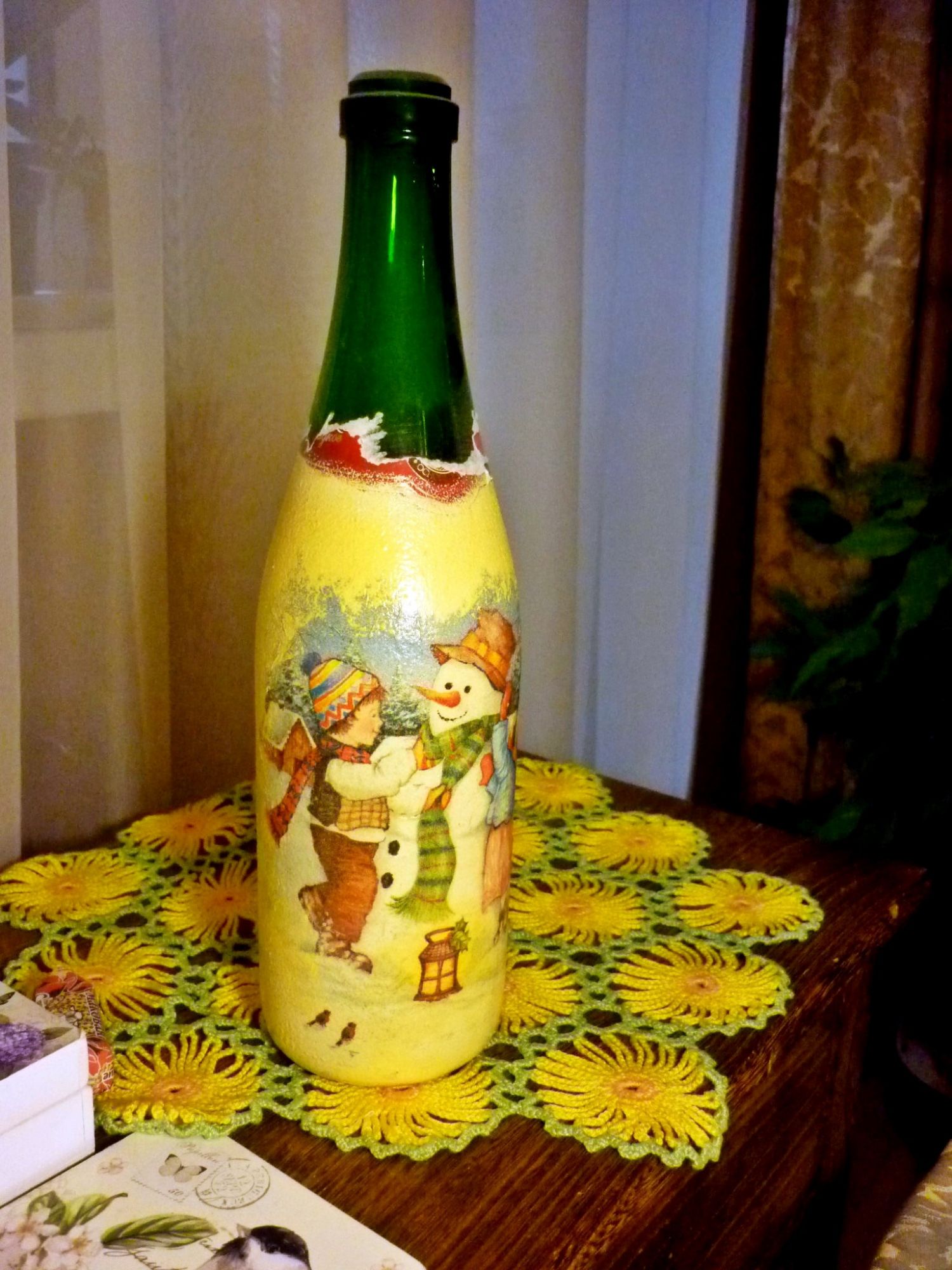 21 ноября 2018 13 минуты назад, SvetlanaM сказал: А! Вспомнила! Ещё две бутылки есть! Я сейчас сфоткаю и покажу, вдруг ты, Свет, захочешь кому-нибудь к Новому году сделать нечто подобное Бутылка круглая, трудно показать всю картинку целиком. Шампанское давно выпито, а бутылку выбросить жалко И для масла LiliMarrlen, Jemmalinne, АлёNка и 12 других сказали спасибо Поделиться сообщением Ссылка на сообщение