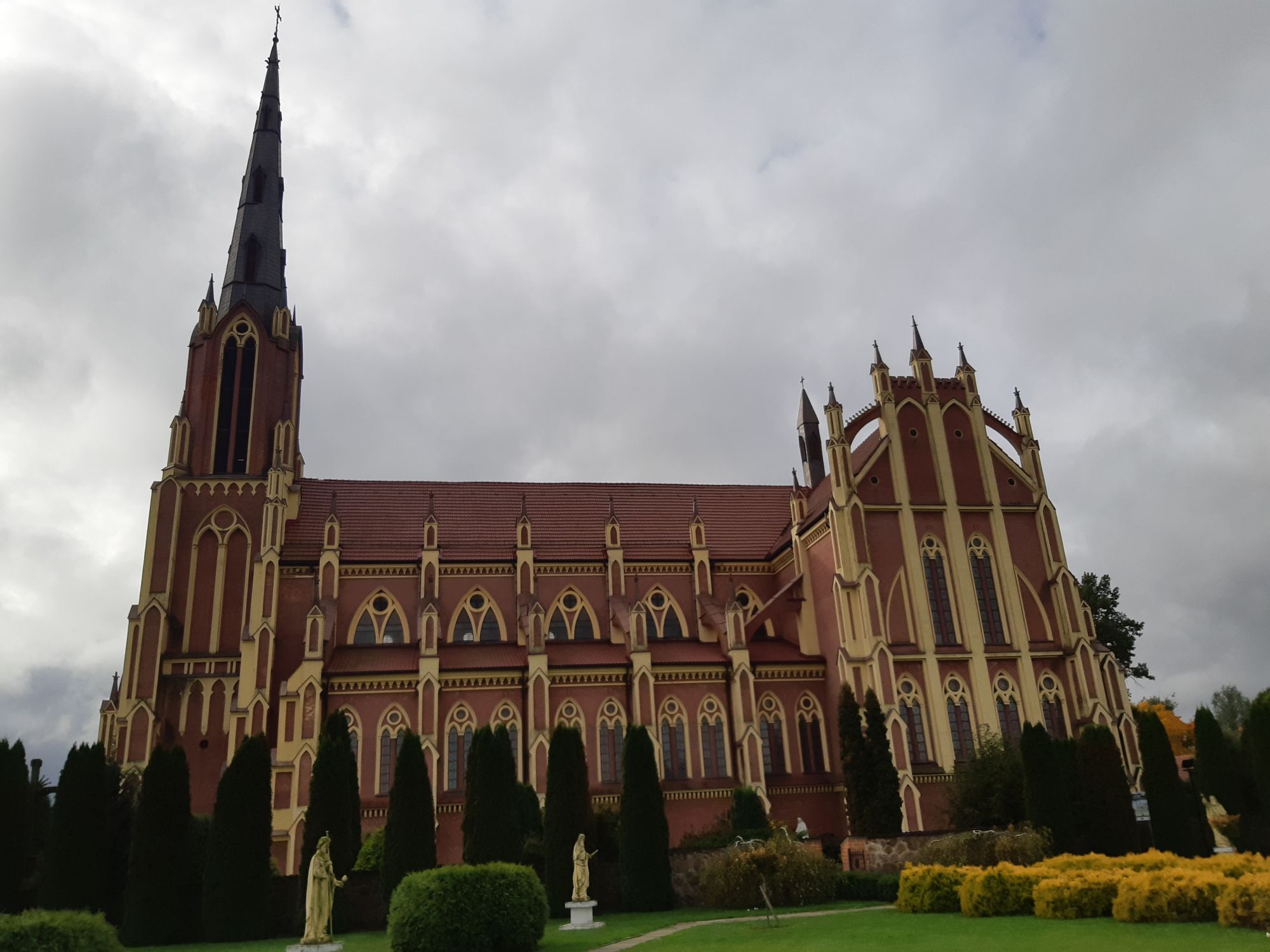 5 октября 2019 Это еще не все! Мы с коллегами на День учителя всегда ездим на какую-нибудь экскурсию. В этом году поехали по моему любимому маршруту. Кроме Залесья, увидели еще 2 очень красивых костела. Гервяты - небольшой поселок почти на границе с Литвой, и население - преимущественно литовцы. Когда приехали, в костеле шла служба на литовском. Костел св. Троицы - третий по высоте в Беларуси (61 м) построен в стиле неоготика в 1903 году. В начале 20 века у нас строилось много костелов в неоготическом стиле, но этот - единственный, где все элементы абсолютно соответствуют настоящему готическом стилю, без упрощений, свойственных "нео". Я там была не впервые, поэтому фото не слишком много. Перед самим костелом была пустая территория, ее засадили декоративными деревьями и кустарниками и поставили скульптуры апостолов и святых. Внутри костельной ограды - прекрасный ландшафтный дизайн, производящий впечатление профессионального. Интерьер скорее обычный, но в храме прекрасная акустика, и для нас устроили небольшой органный концерт. У органистки еще и голос хороший Кроме традиционных костельных песен, нам исполнили самую "Аллелуйя" Леонарда Коэна, "Мооитву Франсуа Вийона" Булата Окуджавы и еще что-то очень известное, что я сразу не идентифицировала, а сейчас не могу вспомнить Сейчас только текст, потом будут только фото с телефона (с него писать неудобно) АлёNка, Pksusha, Lelchik и 8 других сказали спасибо Поделиться сообщением Ссылка на сообщение