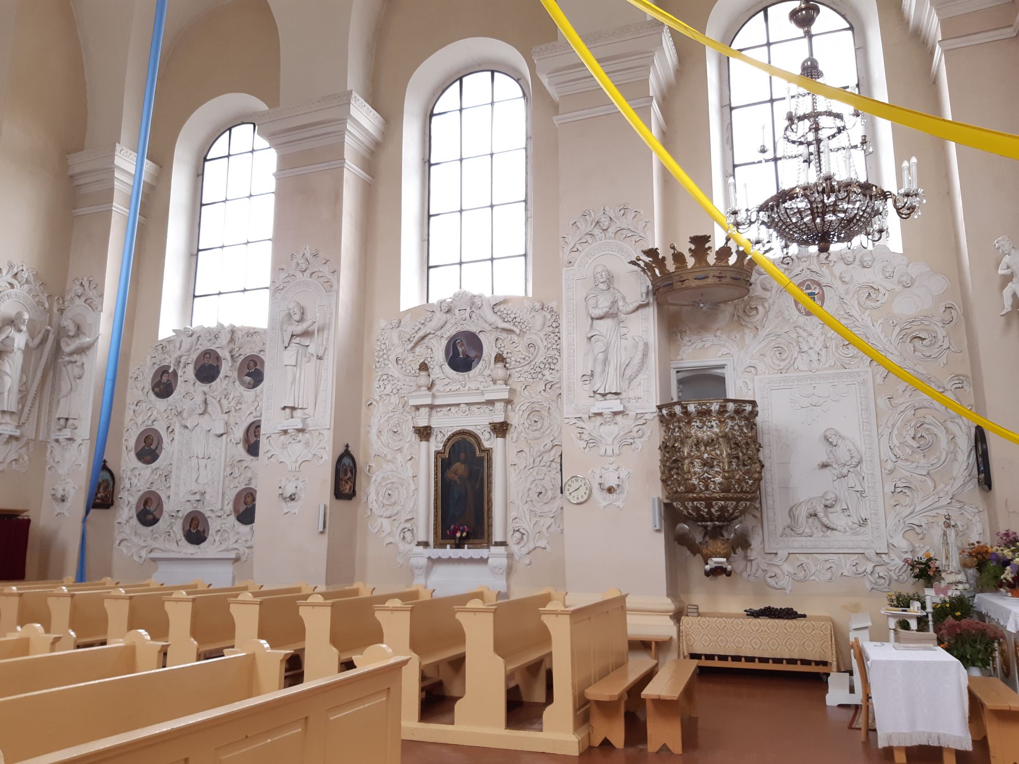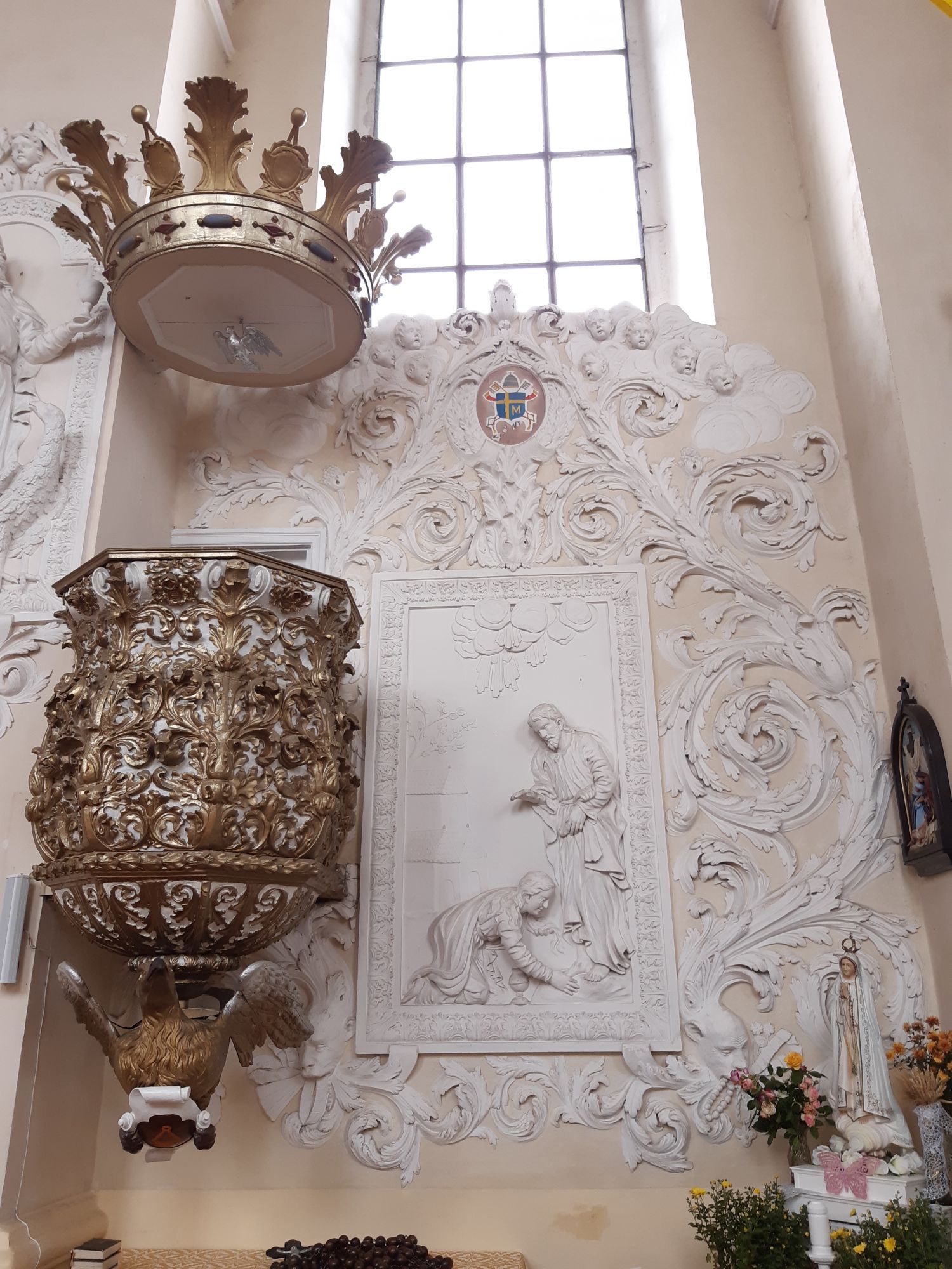 6 октября 2019 Продолжение вчерашнего отчета Есть на севере Беларуси, также недалеко от Литвы и от Гервят, деревня Михалишки с очень интересным костелом, о котором мало кто знает. Сам храм построен в 1653 году в стиле сарматского барокко - строгого и сурового. И если костел в Гервятах поражает красотой снаружи, то его собрат в Михалишках - как раковина-жемчужница, скрывает красоту внутри. Изумительные белые барельефы из стукко, нежные и воздушные, открываюися взгляду внезапно и неожиданно: В простом деревенском небольшом костеле никак не ожидвешь увидеть такую красоту! Татуся, Lelchik, СветланаМ и 15 других сказали спасибо Поделиться сообщением Ссылка на сообщение