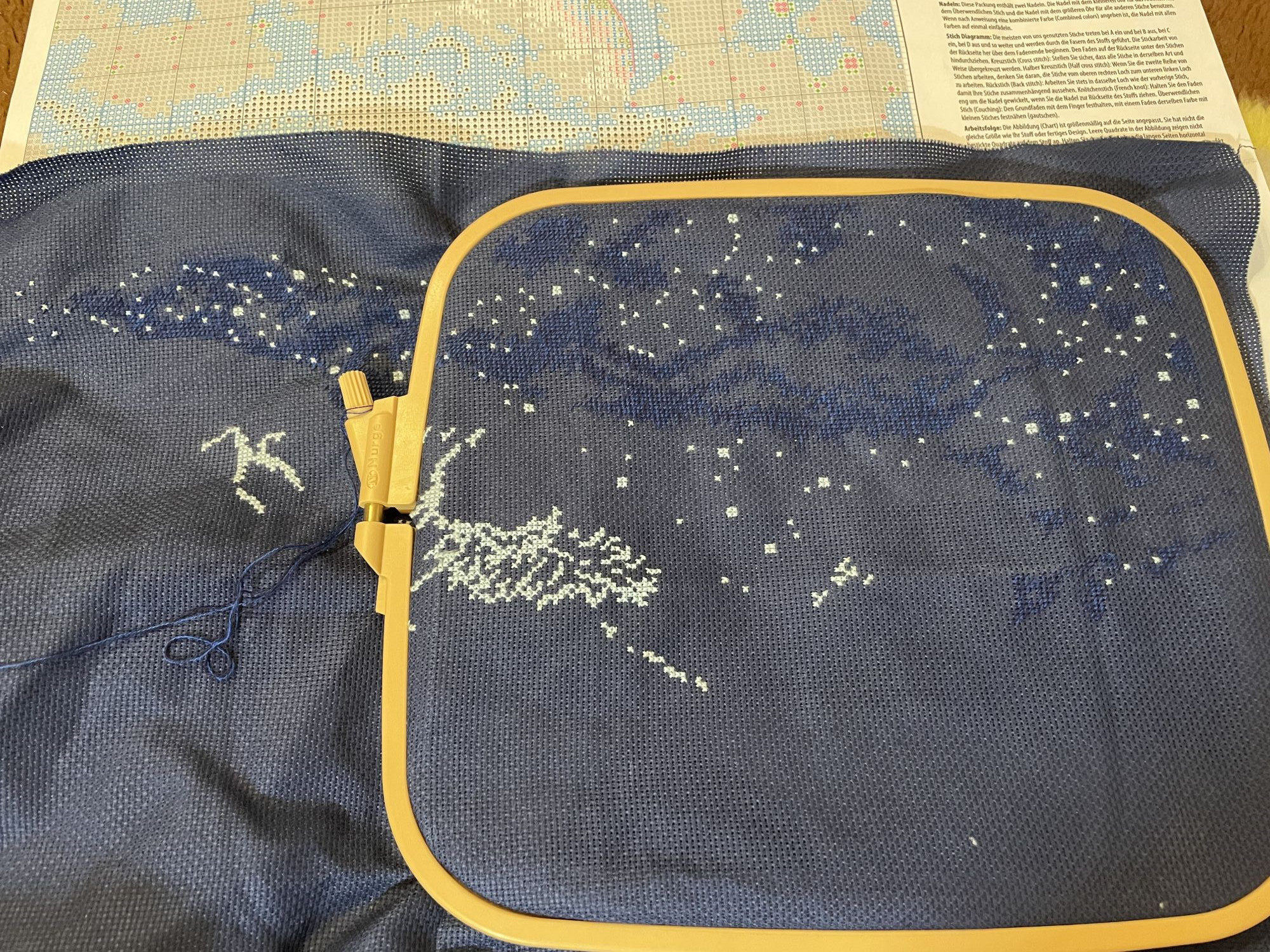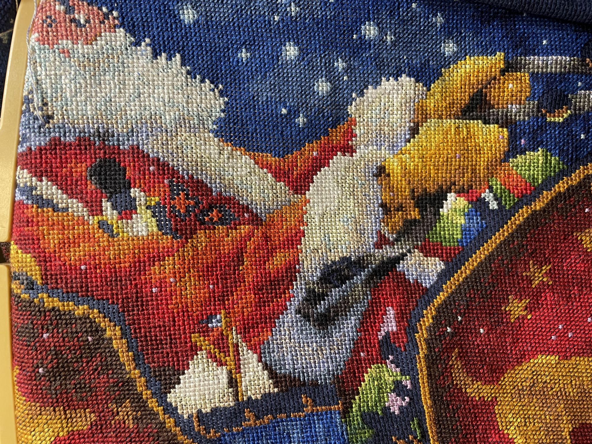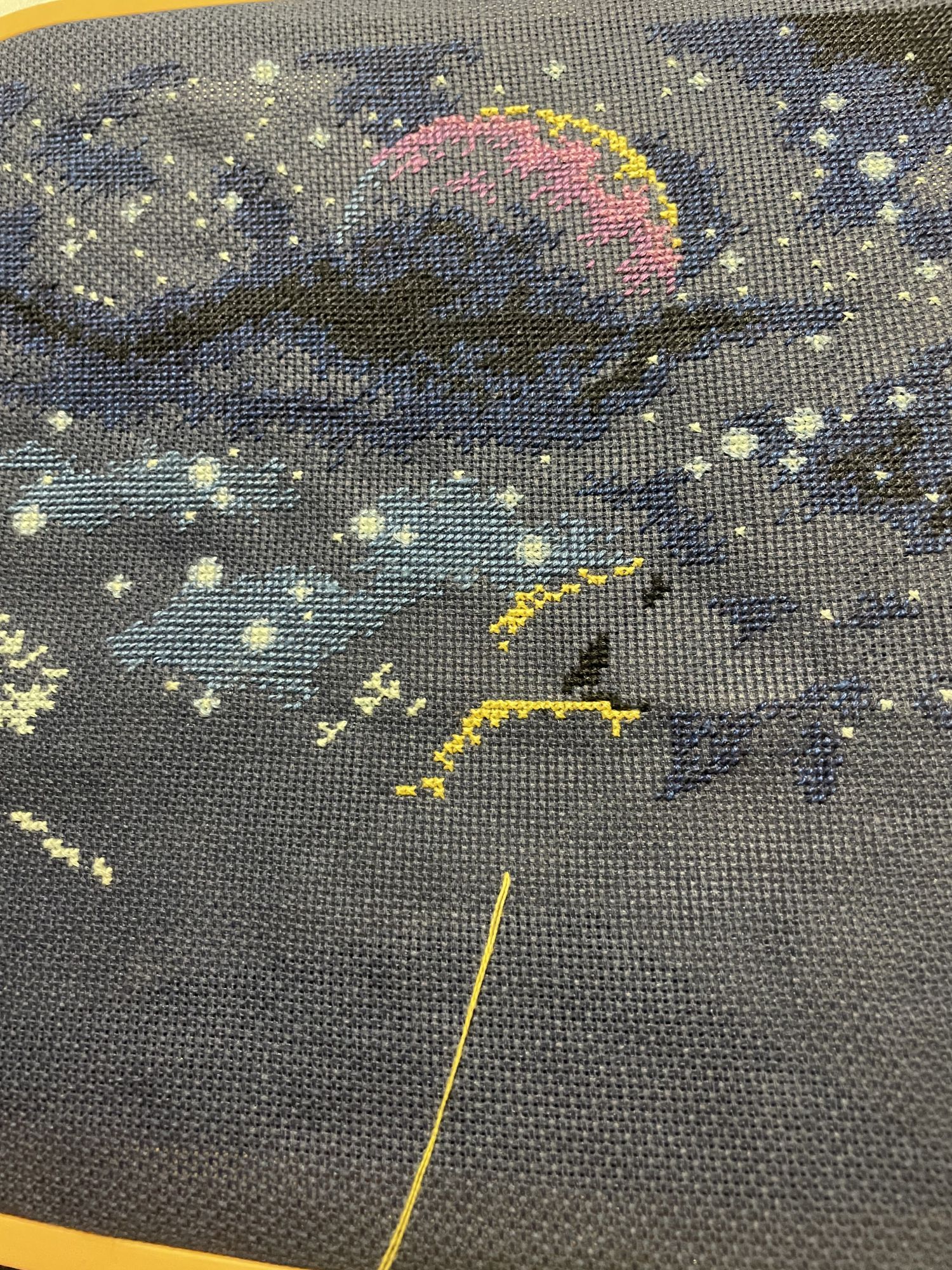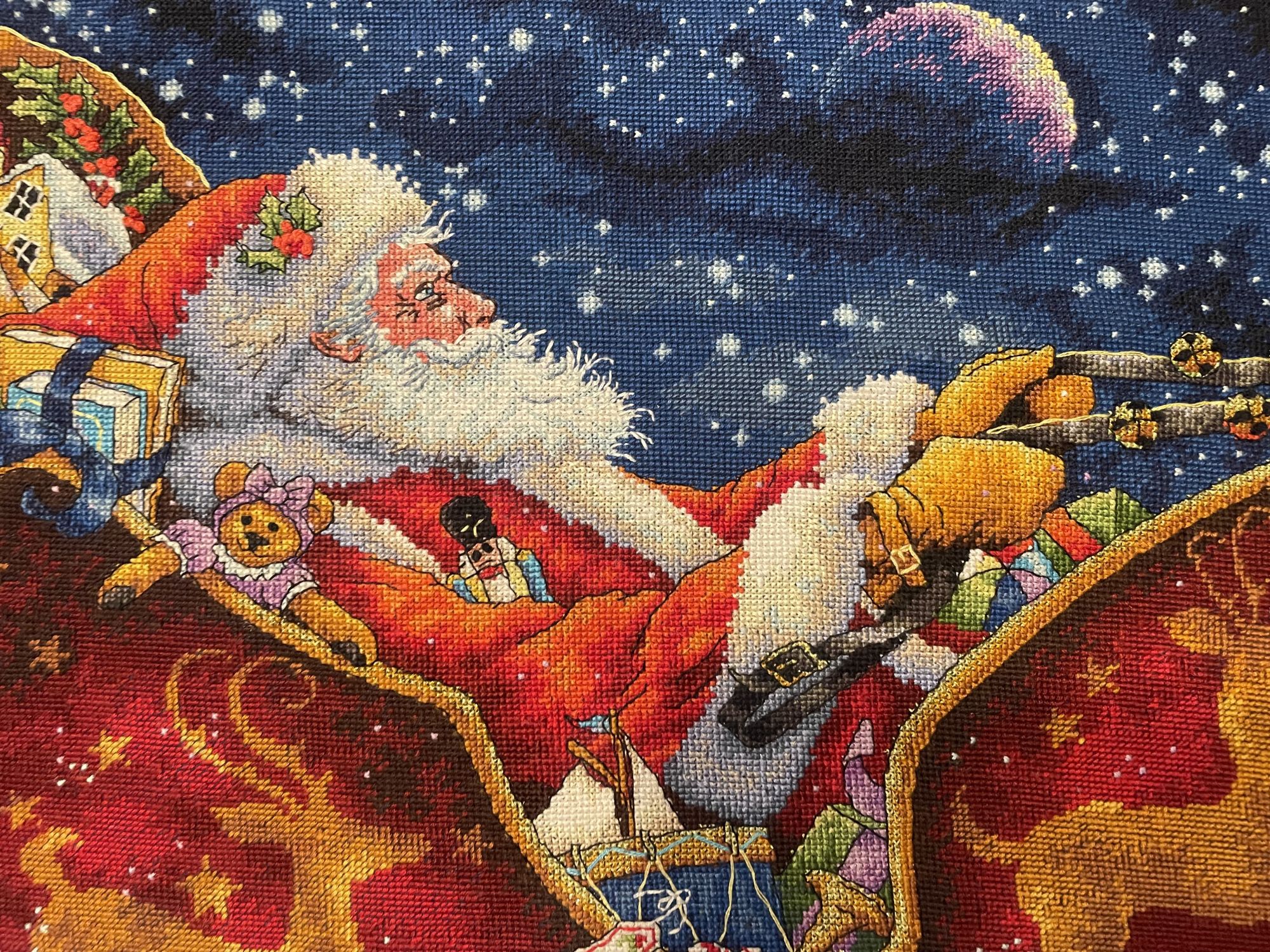 25 мая 2023 Хочу поделиться с вами процессом невероятной красоты, волшебства и праздника-моя мечта, и из ломящихся шкафов с моими хомячьи запасами-после покупки сразу попавшим в работу-не помню больше такого везунчика! ниток невероятное количество, прямо очень много, первоначально, разобрав набор, думала что хватит на два отшива начала с неба, что-то так заинтересовали переходы и хотелось увидеть результат, мы с помощником остались довольны! И хотя он и предлагал оставить все на этом этапе-решила продолжать. Вообще, процесс несложный-полукрестом вышивается 2/3работы, что существенно ускоряет процесс, а когда начали появляться сани процесс полетел-. Жаль, это был сложный период и на вышивку оставалось очень мало времени, поэтому вышивала с сентября 2022 по май 2023, но опять же, наслаждаясь процессом, он невероятный:. Вышивала 7,5 месяцев, и наконец финиш!!!! пеларгония, Lienilde, colin и 27 других сказали спасибо Поделиться сообщением Ссылка на сообщение