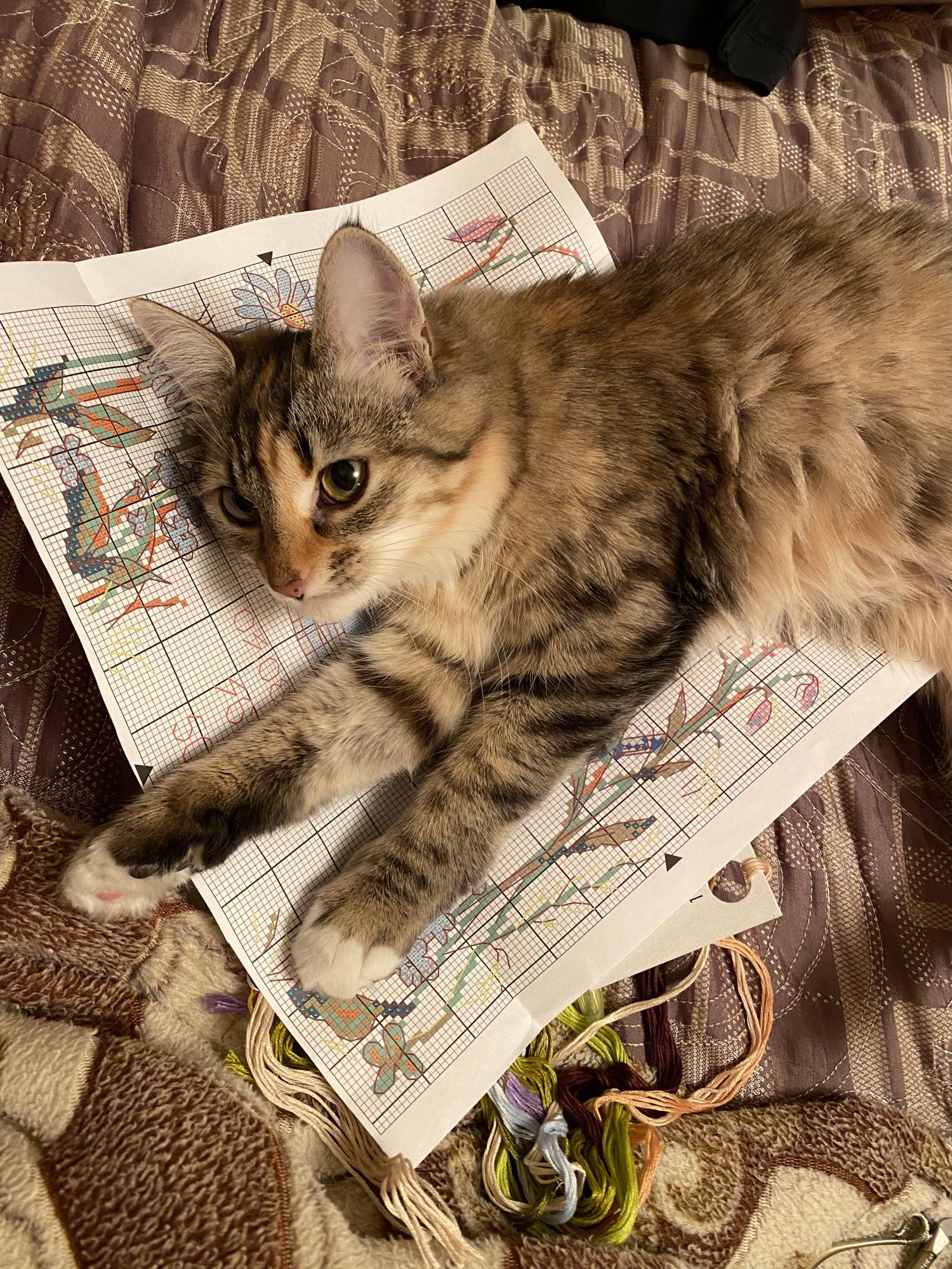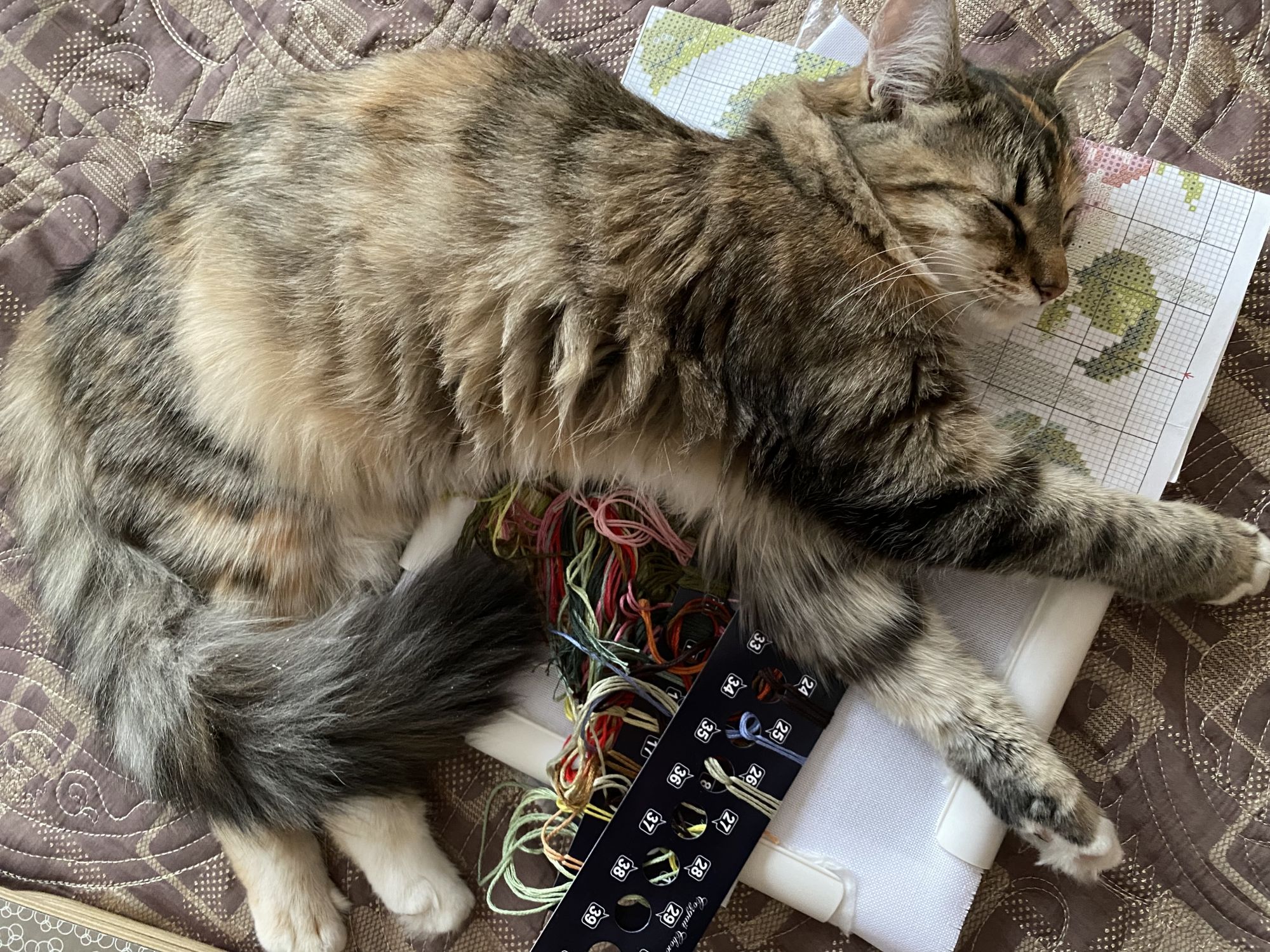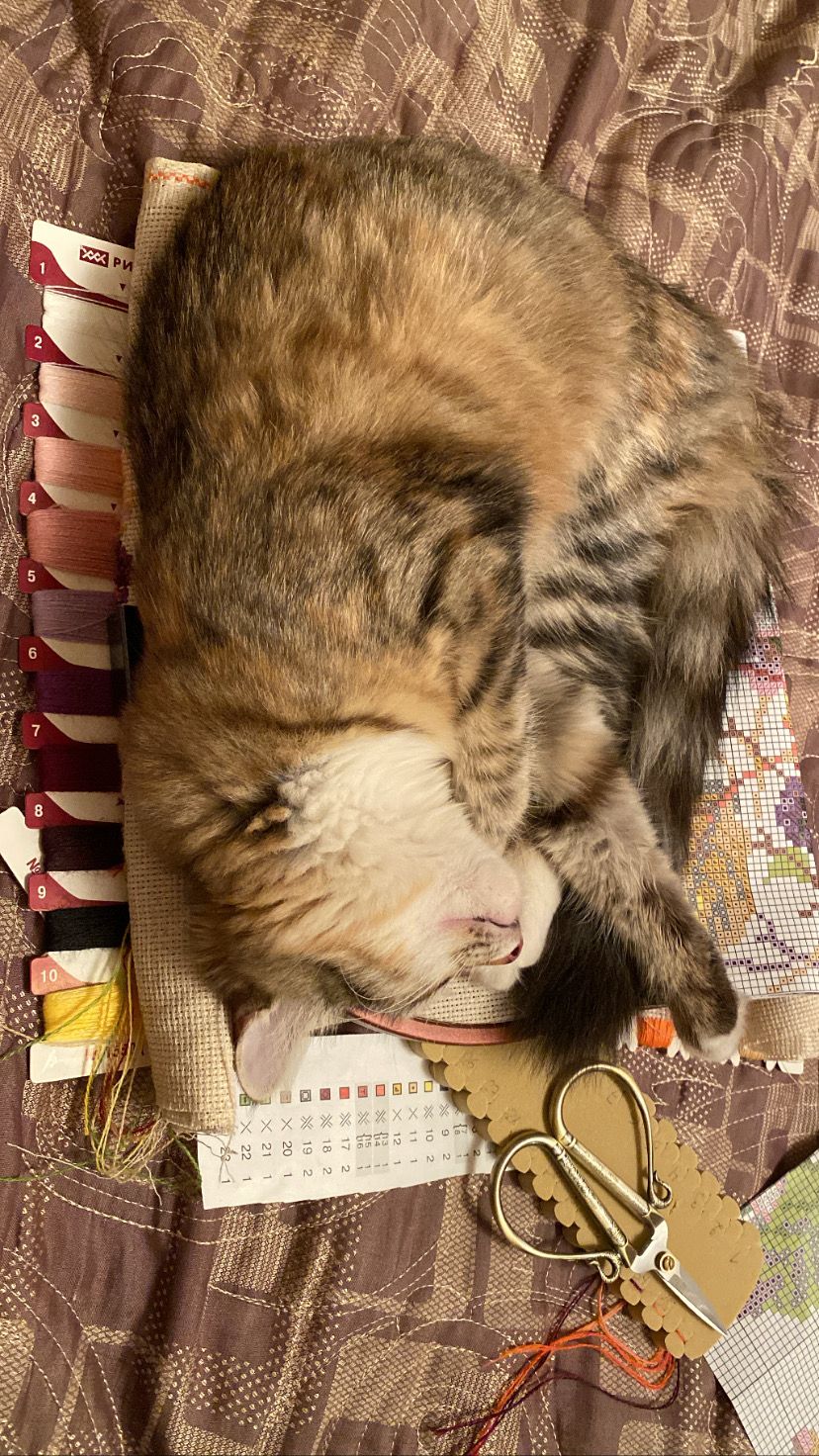 8 января 2022 Всем большой-большой привет, кто зайдёт в гости, всех поздравляю с Новым годом и Рождеством! Желаю ярких событий, желаю мира в доме и крепкого здоровья всем нам! Давно посещали мысли вновь поселиться в своей теме, но понимала, что для этого нужно принести весомый отчёт. А так как я в основном вышиваю один процесс, то считала не интересным уходить из тем производителей сюда Но в конце декабря, закончив Чудесную иглу (до сих пор трепещу от этой работы и уже дико не терпится оформить), нестерпимо захотелось начать не один, а два новых процесса, что со мной обычно вообще не случается Ткань была куплена на формуле (Моника 30 каунт), именно на ней хотела вышить эту розу. И вот прошу гаечку Алиса 2-13 Роза и бабочка Увидела этот отшив на ютубе у вышивального блогера и не устояла Очень легкий сюжет, шью одним глазком под сериал, не спеша никуда. Оформляться будет однозначно и, скорее всего, пойдёт на подарок. Я вообще не многостаночница, такого ранее со мной не случалось, но тогда очень захотелось начать ещё что-то. Рыла свои немногочисленные запасы, пересматривала авторские схемы (пришлось бы идти за нитками, а хотелось именно «сейчас»), решила-таки начать второй сюжет из одной серии, хоть и знала, что будет безумно сложно, но вышить надо! И так, спустя почти 2 года после старта первого набора, я добралась до второго. Прошу гаечку РТО М769 Тёплый мир цветущего лета Для тех, кто не знает, работа вышивается на льне 38(!!!) каунта, крестики выходят меньше булавочной головки Но я не унываю, дошью и оформлю непременно, ведь не просто так я когда-то на формуле влюбилась в эти сюжеты Дорогу осилит идущий, как говорится. Сроков не ставлю, тут как пойдёт. Ещё хотела бы отметить, что в 2021 году оформила три работы (любимая багетная мастерская по-прежнему в г. Саранск), одна из которых сразу ушла в подарок любимой тетушке (Риолис Дождливое лето, фото делала сестренка, сделала как смогла ), Хозяйка влюбилась и я была очень рада, что картина нашла владельца Оформление с обычными стёклами, поэтому фото сделать было трудновато Вышивальных новостей больше пока нет, но это пока. В скором времени начну ещё один процесс, его нужно успеть вышить к 8 Марта одной очень близкой даме Ещё в ушедшем году в нашей семье случилось долгожданное прибавление - котёнок по имени Клеопатра, дома просто Клёпа Ей 7 месяцев, но характер ясен уже сейчас Вредная, своенравная, избалованная (благодаря нам, но мы от большой любви!), но такая всеми любимая, сил нет! На праздники ездили на дачу, случилась первая снежная прогулка. Вот, пожалуй, все, что хотела рассказать, сильно утомлять не хотела. Спасибо всем, кто зашёл и дочитал до конца yesenia_autumn777, Auria, ЛАДОМИРА и 5 других сказали спасибо Поделиться сообщением Ссылка на сообщение