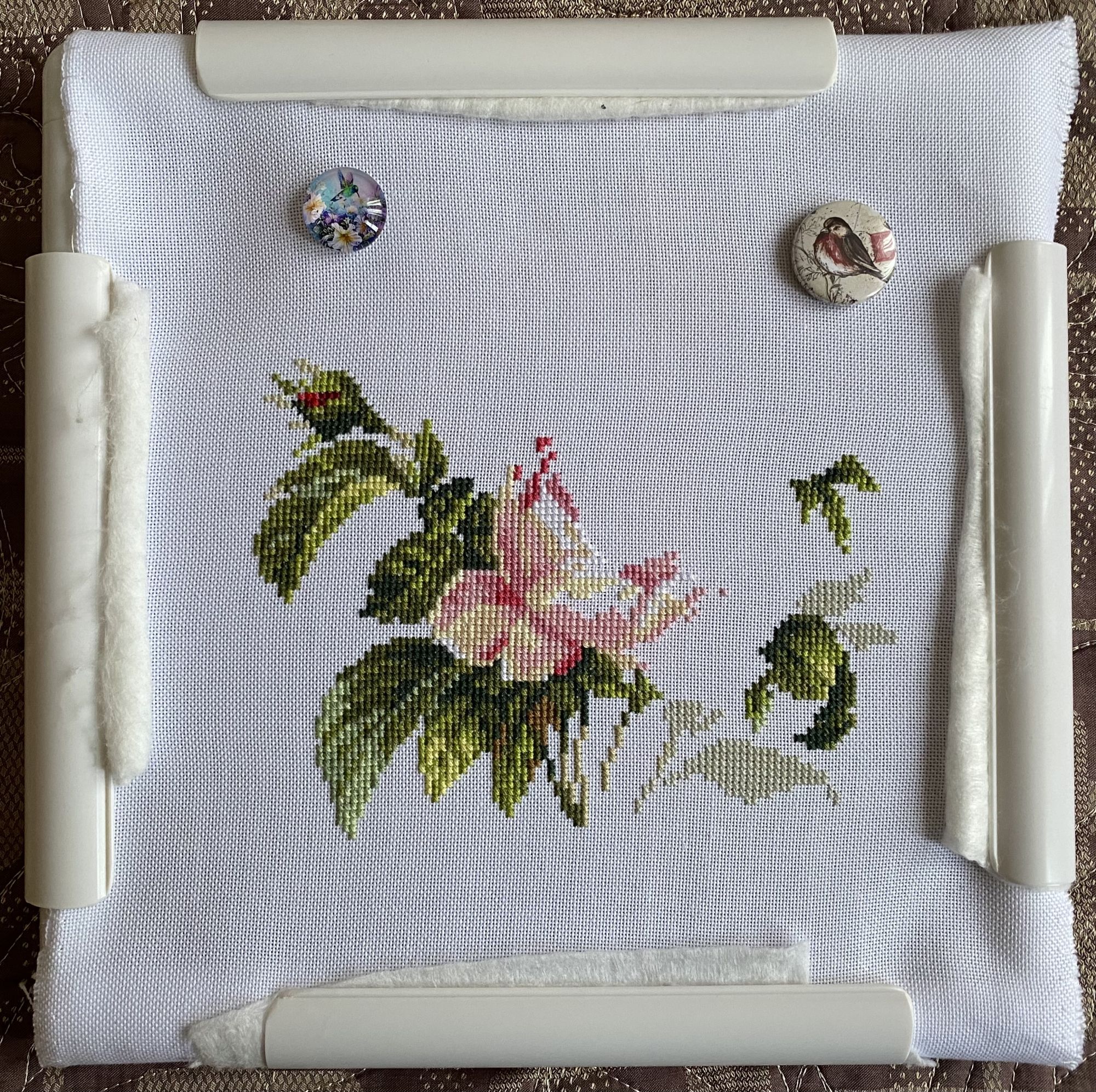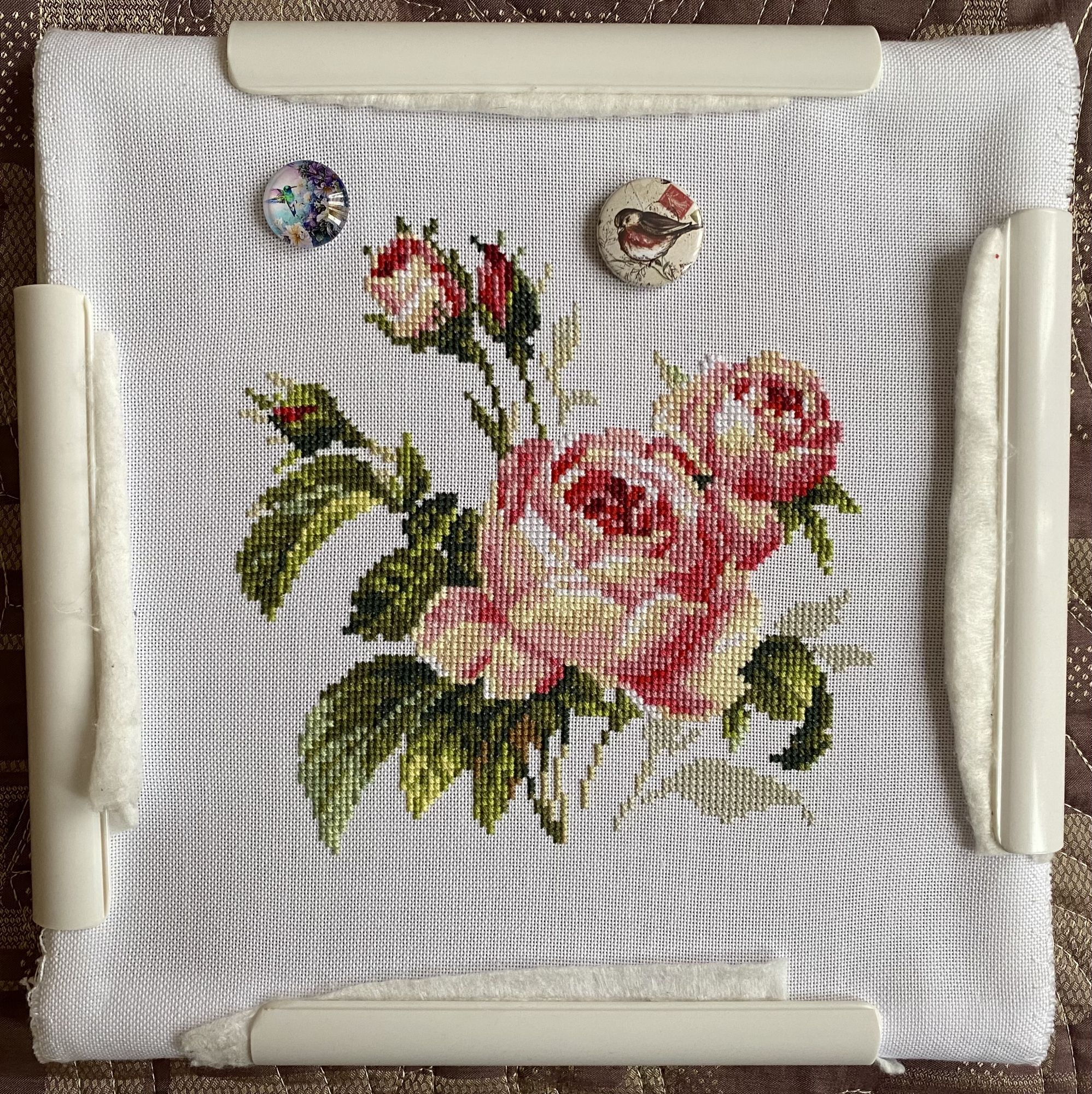 27 января 2022 Всем привет, кто заглянет Вышивальных новостей не так много, но есть, что позеленить, поэтому решила написать отчёт. Упорно шила в последнее время я только розу от Алисы, уж больно она хороша оказалась, особенно на равномерке В итоге дошила, отбэкала (там прямо всего ничего) и уже готова вам показать Модераторы, прошу зеленить, тут финиш Есть мысль оформить вышивку в белый овальный гипсовый багет, надо будет по магазинам походить-поискать. Моя багетка оформляет только в квадраты, предложили овальное паспарту, но я вижу эту розу именно в овальном багете Без помощницы никуда (фото не в гайку) Следующий процесс - РТО, движется очень медленно, я не увлекаюсь им сильно, всё-таки для глаз не легко такие мелкие крестики вышивать. Шьётся потихоньку, сроков у меня на него нет, поэтому не спешу Ну и внезапно совсем незапланированный процесс, подруга попросила для младшего сына вышить метрику. Старшему я делала (в галерее есть фото оформленной работы), говорит, данные стала забывать, надо запечатлеть в вышивке. Прошу гайку, Овен 941 Наш цветочек Идет очень медленно, я уже Хотела пристраивать этот набор, она вовремя попросила вышить. Потом я поздно спохватилась, нужно вышивать в 3 нити (забыла эту особенность Овна), а я шью в 2. Но, к слову, ничего не светит, думаю, будет не критично Тут тоже Клёпа помогает продвигать, как может Также ко мне приехал набор от Марьи искусницы, я эти пейзажи заприметила на осенней ФР. Обязательно буду шить, в комплекте равномерка и очень красивые оттенки ниток На этом все, всем спасибо, кто зашёл! ЛАДОМИРА, Egelia, Leutnant Ripley и 3 других сказали спасибо Поделиться сообщением Ссылка на сообщение