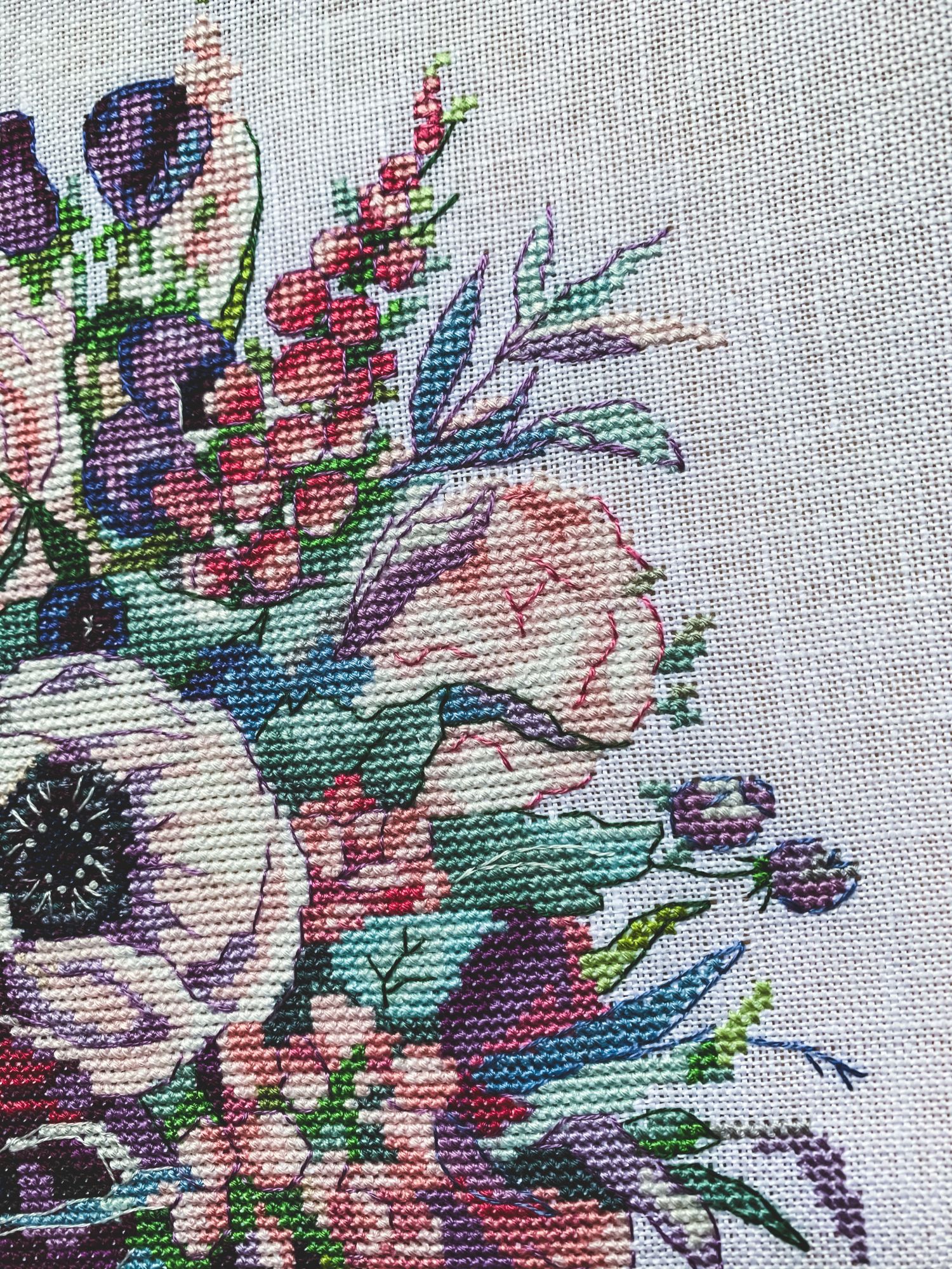 22 февраля 2020 В прошлый четверг была на формуле рукоделия и неожиданно для себя отхватила набор от panna “букет с анемонами» С-7159. Приехав домой, немедленно его начала) Крупные цветы шли быстро и приятно, а вот левой частью букета приходится повозиться Catopuma, sunny981, Путешественница и 7 других сказали спасибо Поделиться сообщением Ссылка на сообщение