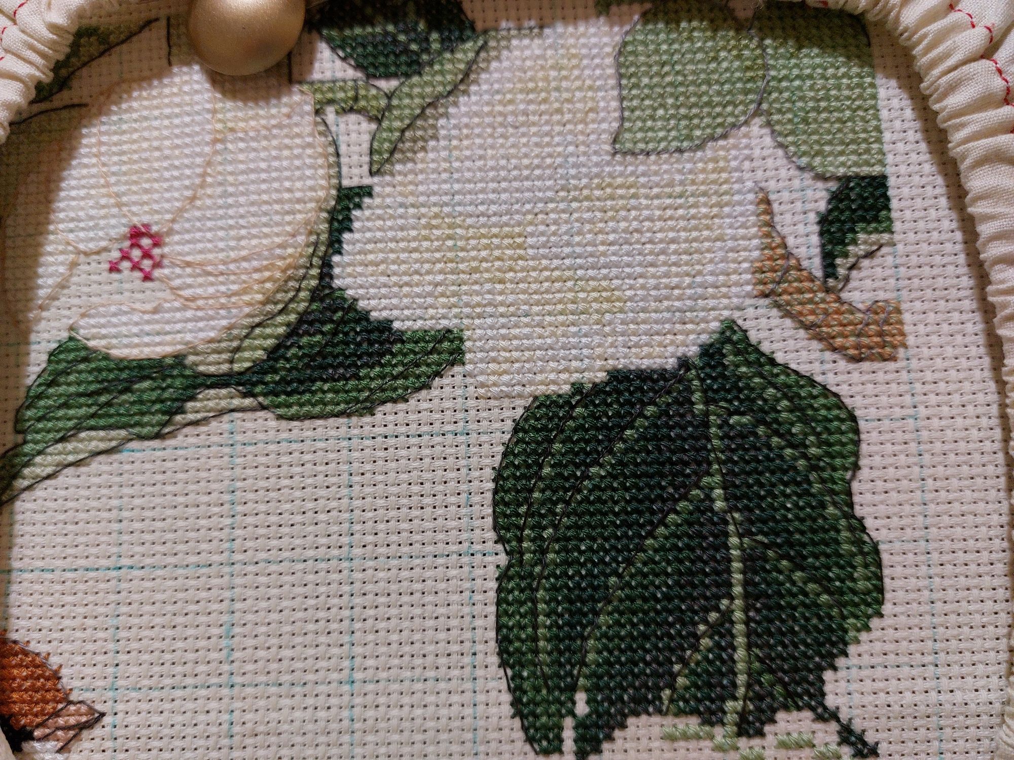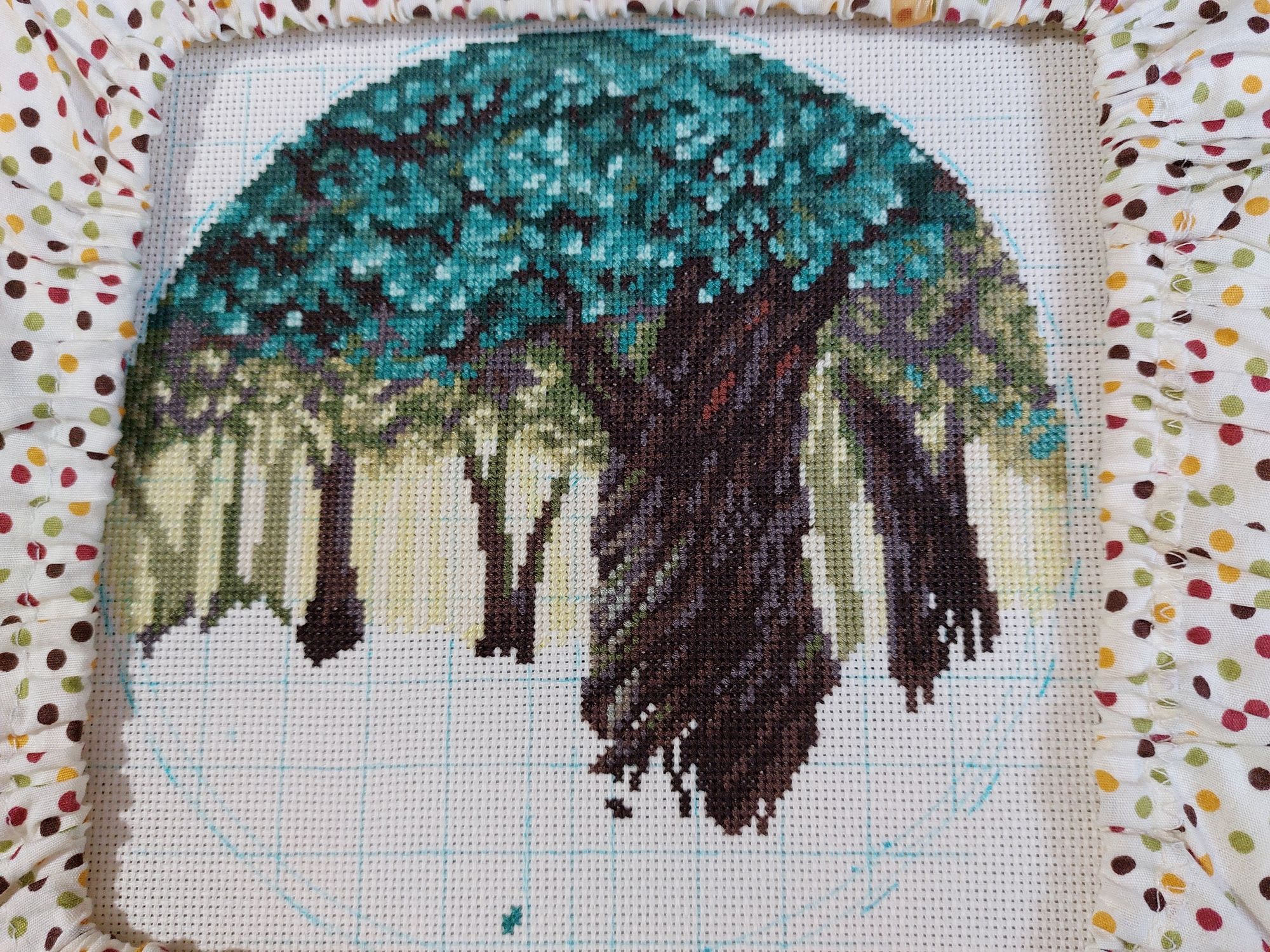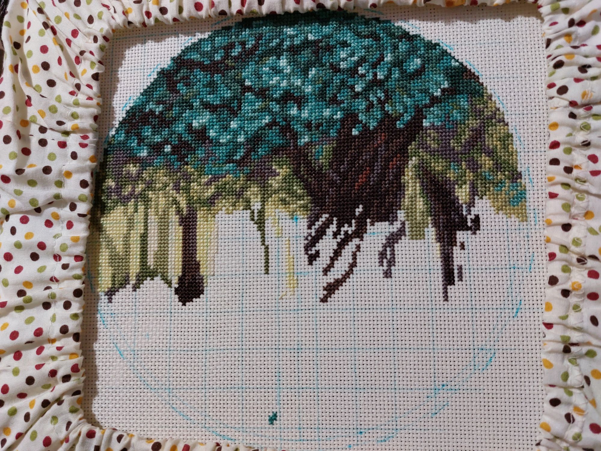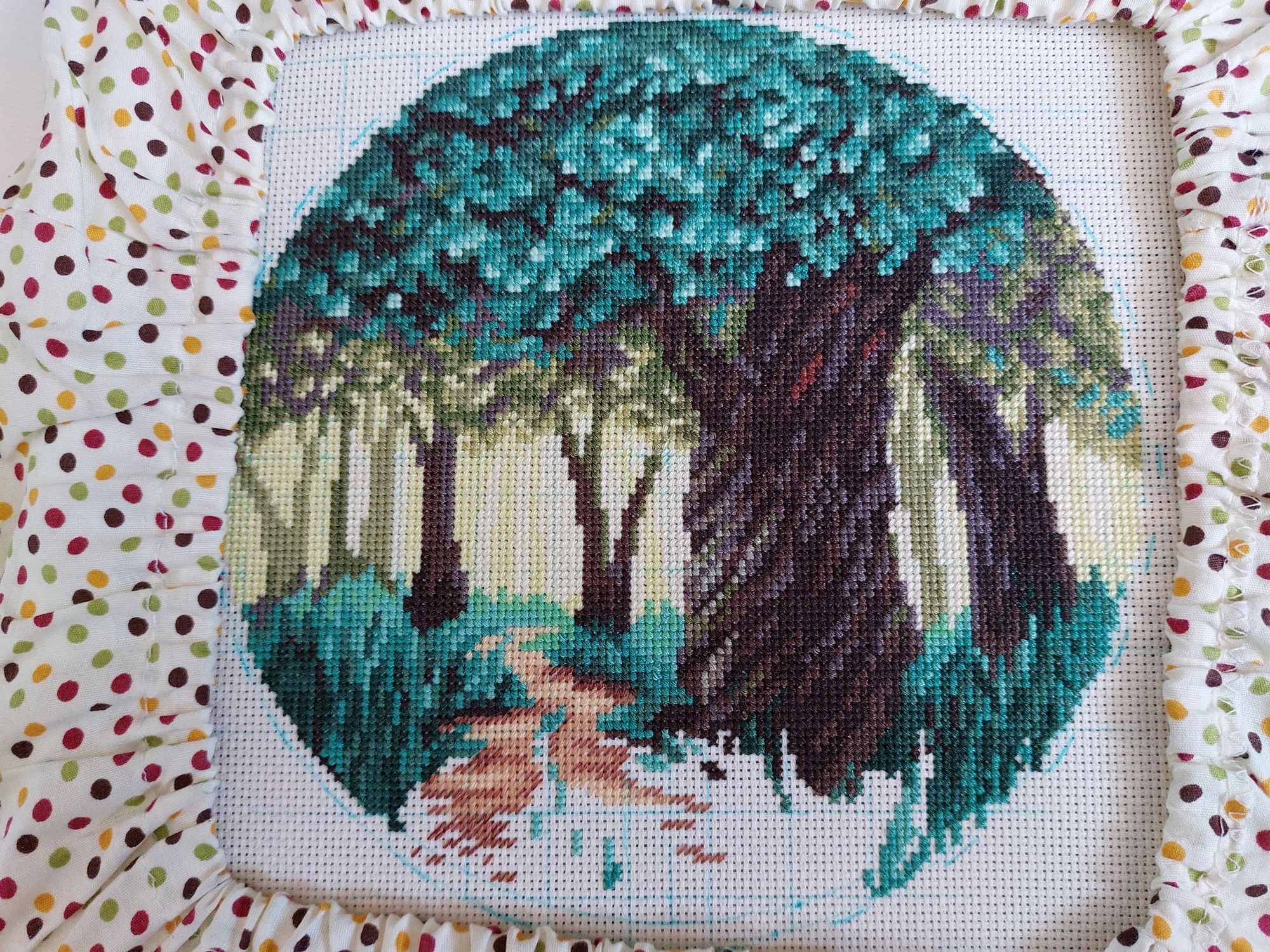 8 октября 2023 Всем привет! Не знаю, чем я занята, но мне всегда некогда (с) Времени катастрофически не хватает, ладно бы на форум («Вот будет отпуск и выложу продвижения!» ...сегодня последний день второго отпуска), но последние пару месяцев я вышиваю 1-2 часа в неделю... Зато до этого я повышивала, так повышивала! Начну с процессов, которые успела завести. Солнечный лес, Панна. Финиш! Весь процесс наслаждалась зеленью и миниатюрными крестиками) Даже когда перепутала пакеты и взяла вечером вышивать в неверном розовом свете фито-лампы Лес на 18 каунте вместо Синицы на 14, Лес прирастал, как... Ну, как и положено расти зелени под фито-лампой)) Ещё одна большая радость: фон полукрестом не оказался бледнее основы (основу меняла с белой на кремовую). За счёт уменьшения каунта зелень немного, но стала сочнее. А фон из-за смены цвета основы, наоборот получился менее контрастный, в лёгкой дымке. Прекрасный во всех отношениях был процесс. И готовая работа подстать процессу) Правда, по-видимому, стоило крепление поменять: оригинальное как-то плохо сочетается с кривоповешенным крючком, уже два раза пришлось ловить. И нет, повесить крючок ровно я не могу) Байкал, Риолис. Финиш! А вот этот процесс оказался капризным (под стать Вене от Риолиса, которая определена ему в пару): на диване вышиваться не хочу, за царапины на пальцах зацепляться хочу, про нарезание ниток не напомню. Он явно завидовал Солнечному лесу т.к., стоило только Байкал взять утренним процессом, как он стал спокойно и относительно шустро вышиваться. Но теперь процесс завешён, а работа не может определиться с местом «повешенья», а соответственно и с оформлением. Капризуля, как есть капризуля)) Aroma All Around, Xiu Crafts. Финиш! Фотографировался исключительно какими-то отдельными частями. И это процесс-разочарование: вроде и приятная зелень, и воздушно-нежный белый, и яркие вкрапления, и основа любимого 14 каунта спокойного кремового цвета, но вышивался как-то без огонька. Вышивать саму Синицу мне понравилось больше. А ещё тут много бэка, и если с листьями проблем нет, то с цветком пришлось самую малость, но помучиться: светлый бэк по светлым крестикам с неявными переходами нужно было внимательно считать. Но в остальном было как-то скучно, это вам не Солнечный лес... Vegetable patch, Heritage. Продолжение 2023-09-23 17-08-51.JPG2023-09-23 17-08-51.JPG Вот про этот процесс никак нельзя сказать, что он скучный. С этой россыпью разнонаправленных узкокрестиков помогает справляться только острозаточенный карандаш, которым закрашиваю эти половинки клеточек в схеме. Цвета яркие, блэндов тьма (пришлось организовать себе подобие Xiu-шного органайзера, потому что пользоваться оригинальным ключом я не смогла), пока не вышьешь более-менее крупный кусок ничего не понятно, тем приятней обнаружить, что горстка «ржавых» крестиков – это силуэт лисы. Весь бэк планирую делать в конце работы, т.к. чёрный цвет не влез на мой органайзер, а он используется только в бэке. Raduga777, ЛАДОМИРА, Хозяйка смешных зверей и 6 других сказали спасибо Поделиться сообщением Ссылка на сообщение