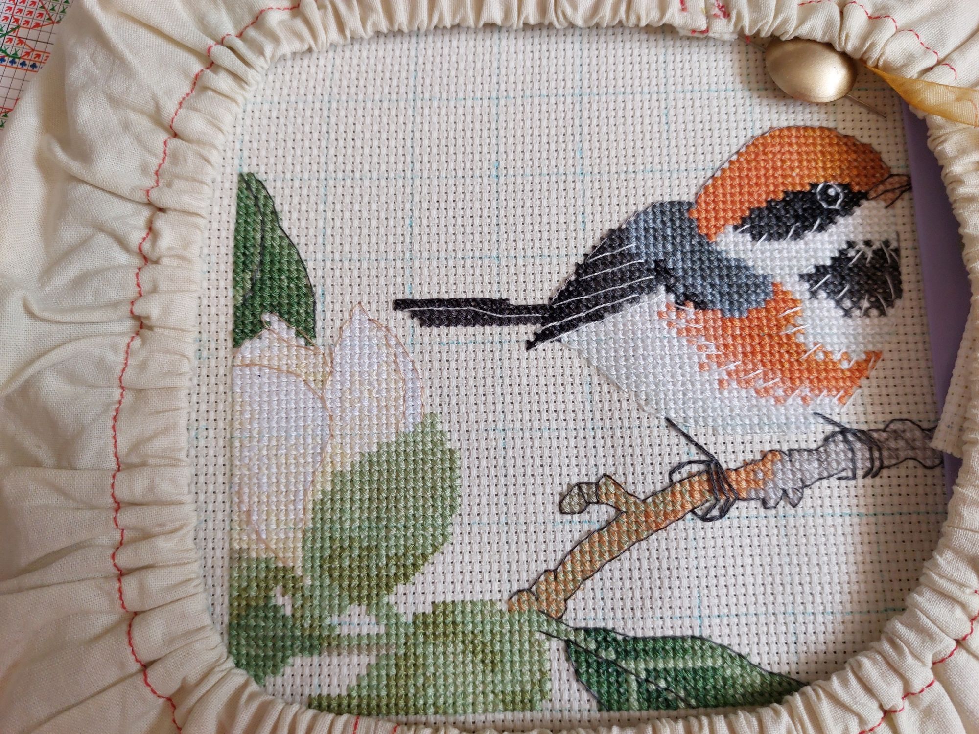 5 марта 2023 Всем привет! Весь февраль прошёл в каких-то вышивальных метаниях) Солнечный лес, Панна. Продолжение Только здесь всё спокойно) Продолжаю наслаждаться всевозможной зеленью и миниатюрными крестиками) Прям-таки процесс-релакс перед работой)) Байкал, Риолис. Продолжение Редко показываю, но активно вышиваю) И по-прежнему вышиваю то тут, то там) Закончила весь бэкстич, он был сосредоточен на левой половине вышивке: сосна, да немного камней. И закончила небо. Дело активно движется к финишу: полностью закончила несколько символов! Правда потом мне резко надоело его вышивать, нарезать нитки и всё-такое, метнулась к другой вышивке, через неделю вернулась обратно: только и делаю, что перетасовываю процессы по разным местам хранения)) Aroma All Around, Xiu Crafts. Новый процесс! Будет: Байкал резко наскучил, а вышивать под вечерний фильм хотелось, выбрала для вышивки птичку (хотела Оленей от Алисы, но во время разметки в очередной раз поняла, что 16 каунт для вечера мелковат). Всё время вышивания звала пташку воробьём, а она оказалась синицей)) Знакомьтесь, рыжеголовая длиннохвостая синица: Птичка вышилась весьма бодро: молниеносно, я бы сказала, но потом энтузиазм пропал. Главное вышито, чё там продолжать Птицу отложила, вернулась к Байкалу) На этом всё) Всем спасибо! Скрытый текст ЛАДОМИРА, Каори, murgatroit и 9 других сказали спасибо Поделиться сообщением Ссылка на сообщение
