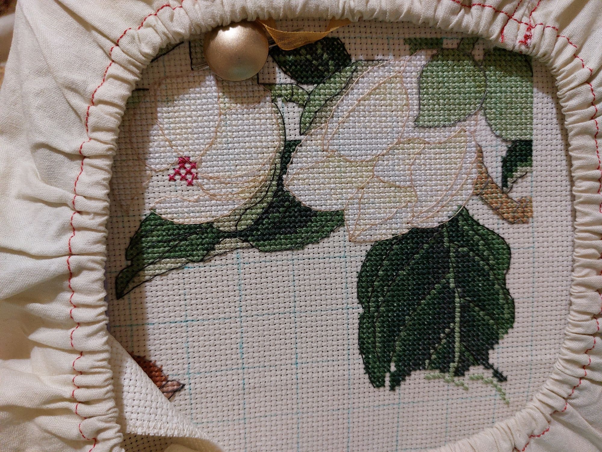 8 февраля 2023 29.01.2023 в 09:07, TheSunniestDay сказал(а): Всем привет! Я пришла с первыми итогами этого года) Место в жизни, Риолис. Финиш! Итак, Васька Второй – первый финиш этого года! Да, я не очень оригинальна в выборе имён)) Вышился легко, на одном дыхании. Очередной раз убеждаюсь, что 14 каунт и шерсть в два сложения – идеальная пара! Пухлые крестики не толкаются и не лежат слишком свободно) Василий будет висеть на кухне, как и положено) Надеялась, что вышью Ваську, нашедшего место место в жизни, и тогда отступятся от моего Васьки, что слушает да ест, но увы: теперь ему прилетают комментарии типа «Наш-то лучше, не то, что эта мелочь». Никак не отстанут от него, завидуют, наверно)) Солнечный лес, Панна. Новый процесс Будет: Есть: Вышивка понравилась с первого взгляда – столько оттенков зелёного! А посмотрите, как нитки сочетаются с обложкой книги: (не знаю, зачем ниткам подходить к книге, но здорово же!) Подготовка началась ещё в прошлом году, а в этом наконец (ага, можно подумать много времени прошло), приступила к вышивке. Рамка к работе уже куплена, но не подходит размер (пошла на это в здравом уме и трезвой памяти, хотя насчёт здравого ума сомневаюсь, но рамочка так понравилась, что уйти без неё не смогла). Был вариант не вышивать несколько рядов или же уменьшить каунт и добавить несколько рядов. Как ярый противник мелкого каунта, и страстная любительница 14 аиды я, естественно, решила пойти по второму пути и уменьшила каунт с 16 до 18. Цвет основы поменяла с белого на кремовый в надежде, что будет проще (белая от Гаммы очень яркая, на мой вкус, на 16 каунте было тяжело вышивать, а тут 18). Однако, пока делала разметку, думала, что ослепну, настолько плохо были видны дырочки. А ещё начертила несколько кругов: внешний круг, чтобы обозначить границы картона для натяжки, и внутренний круг – видимая часть вышивки, причём на внутреннем круге съехала и получилось две окружности. Перенабирать всю схему не стала, только края, и уже к ним пририсовала дополнительные ряды. Так что вышиваю одновременно с электронной и бумажной схем. Причём с электронной схемы вышиваю не всё – местами дополнительные ряды нарисованы с запасом, так что в вышивке ориентируюсь на круги. В общем, сделала всё, чтобы максимально усложнить процесс. Но нет, вышивать очень приятно) Умиляюсь каждому зелёному крохотульке-крестику)) Надеюсь, что так продолжится и дальше! Вот, что надеюсь получить в итоге: (это не вышивка, это бутафория - обложку вставила в рамку) Vegetable Patch, Heritage. Новый процесс Будет: Пока особо ничего нет: В общем, у меня не оказалось занятия на выходные под сериальчик и было решено начать ещё один новый процесс, но уже по бумажной схеме. Из двух наборов как водится победил третий, и этим третьим оказался Огород от Heritage. Зря, конечно, начала его сейчас: продвигаться будет ни шатко, ни валко, но уж что есть, я никуда не тороплюсь) Оказалось, что тут короткая нарезка ниток. Но это, впрочем, оправдано: 40% символов - блэнды. И я уже ошиблась в узкокрестиках) Рюкзак Вообще-то сшила его ещё в прошлом году, но мне надо было время, чтобы подобрать приличные слова. Мне очень нравится, что получилось, хотя можно было сшить и лучше) Возможно, я учту свои ошибки и следующий раз наворочу новые) Вид снаружи: Вид внутри: Вид во внутрь: Мысли о пошиве спрячу под спойлер, а то их очень много)) Показать содержимое Решила сшить рюкза