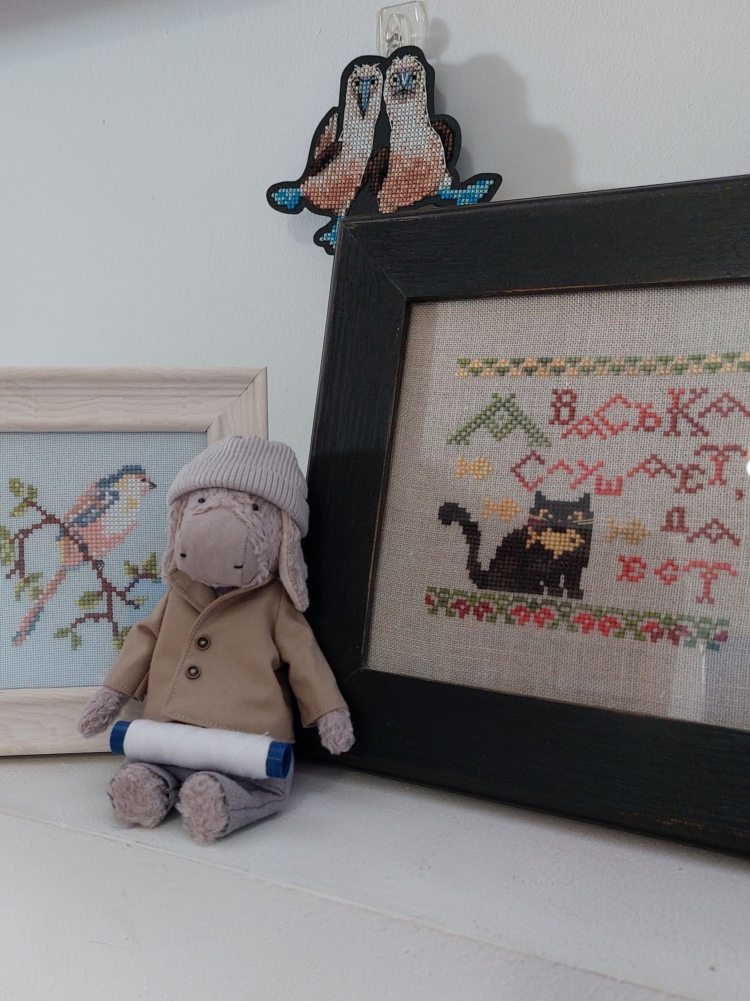 8 октября 2023 И новые процессы. Розовый сад, Мари Суаре. Новый процесс и Финиш! Давно решила попробовать строчевую вышивку, а тут ещё попали на сюжет о крестецкой строчке, и я решила, что пора. Должно быть: Процесс: Поразвлекавшись минут 30 на «пробнике» решила, что уже готова к полноценному сюжету, а все остальные элементы буду изучать по ходу дела. О, как я была наивна. По неделе рефлексировала чуть ли не перед каждым новым элементом. В середине работы решила, что подбор цветов мне не нравится. И вообще, почему-то с первого раза не получается на «пять с плюсом», удивительно просто. Нитки ещё закончились, а вышивка – нет. Несколько раз порывалась забросить. Пришла к таким выводам: - всё-таки начинать следовало с чего-нибудь поменьше, - я упорно не понимаю, как отрезать нитки для выдёргивания, чтоб они не торчали на пол-метра (тут небольшое преувеличение), - мне больше нравится строчевая вышивка в тон основе, - в строчевой вышевке мне нравится только блоки гладью и прорезание с выдёргиванием, всё остальное подозрительно напоминает какое-то плетение и нравится только внешне, а не процессом, - строчевая вышивка ещё будет в моей жизни, полагаю так же часто как гладь, но будет) Но я-таки победила вышивку и оформила. Собственно с оформления всё началось: мне показалось, что для «сшивной» рамки подойдёт в самый раз будет смотреться прорезрая вышивка. К получившейся цветовой гамме уже привыкла, хотя и счиатаю, что можно было лучше. Но в целом я собой довольна)) Олуши, Дивная вишня. Новый процесс и финиш! Увидела их в сжатых у Оли @Путешественница, поумилялась, но была кремень, т.к. перфорированная основа – это не моё (ага, как и 18 каунт). Потом почитала у Оли в теме и не удержалась, тут же заказала и вышила. Должно быть: Процесс: Так вот, перфорированную основу я по прежнему не люблю, какой бы классной она при этом не была. Но результат висит около стола и неимоверно радует и улыбает! Олуши так по-дурацки (в хорошем смысле) выглядят, а эта походка в развалочку, а хвост трубой, а взгляд, взгляд-то какой! Как можно остаться равнодушной? Никак)) У лесного озера, Алиса. Новый процесс Что надо делать, если времени на вышивку нет? Правильно, начинать новый процесс)) Будет: Есть: Это аж два подхода к вышивке)) Невышивальное Ещё весной сшила третье по счёту покрывало. Но первое по размеру и первый раз чётко следуя МК) Вот теперь всё, когда буду в следующий раз – не знаю) Путешественница, Bogdan, ЛАДОМИРА и 7 других сказали спасибо Поделиться сообщением Ссылка на сообщение