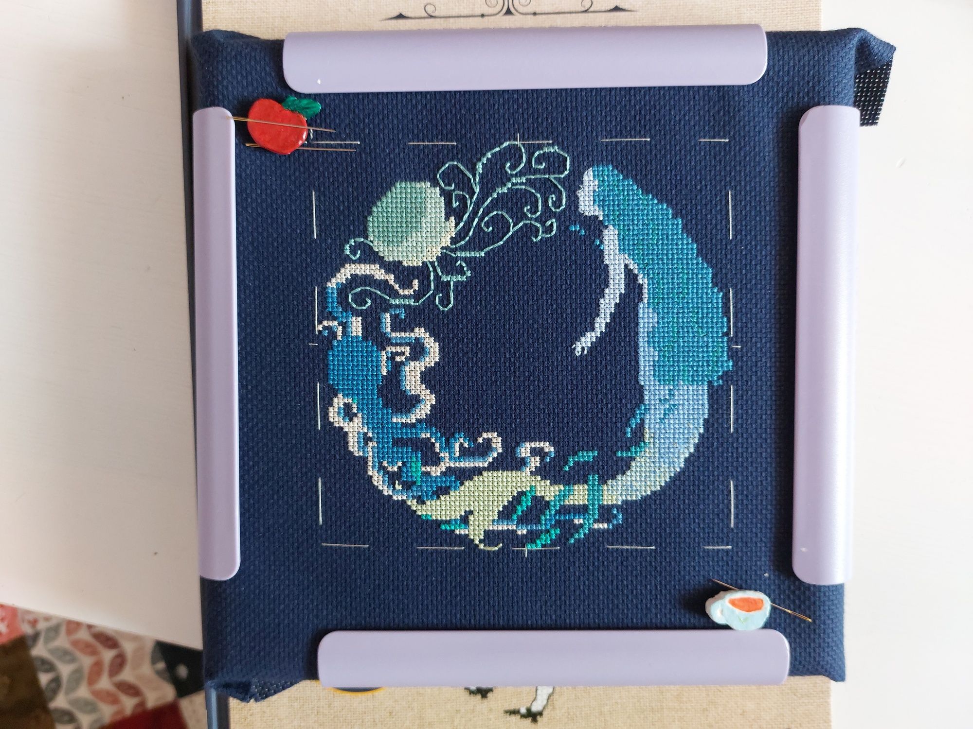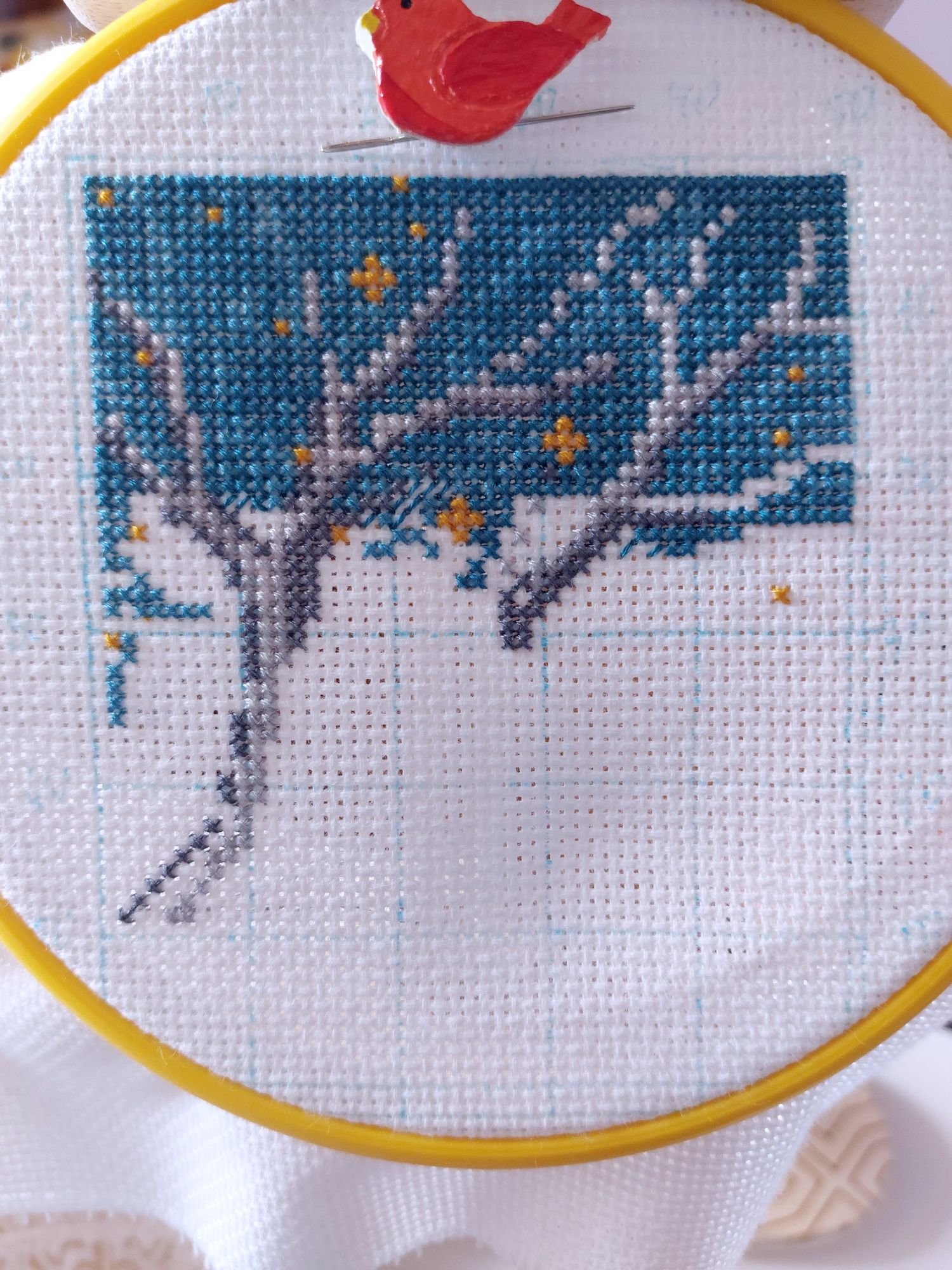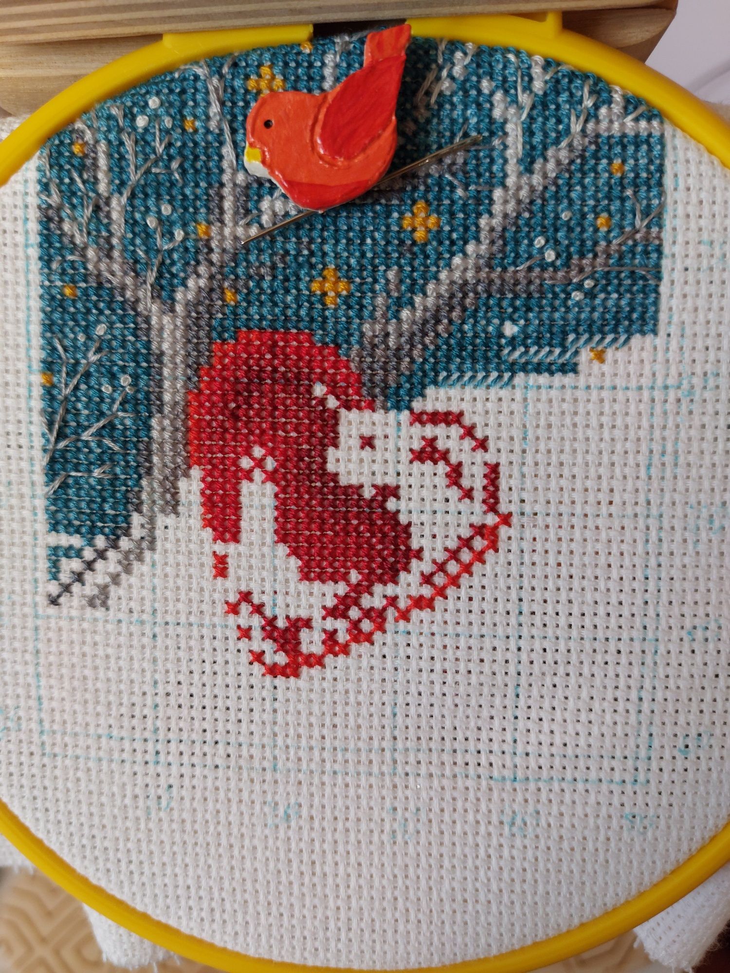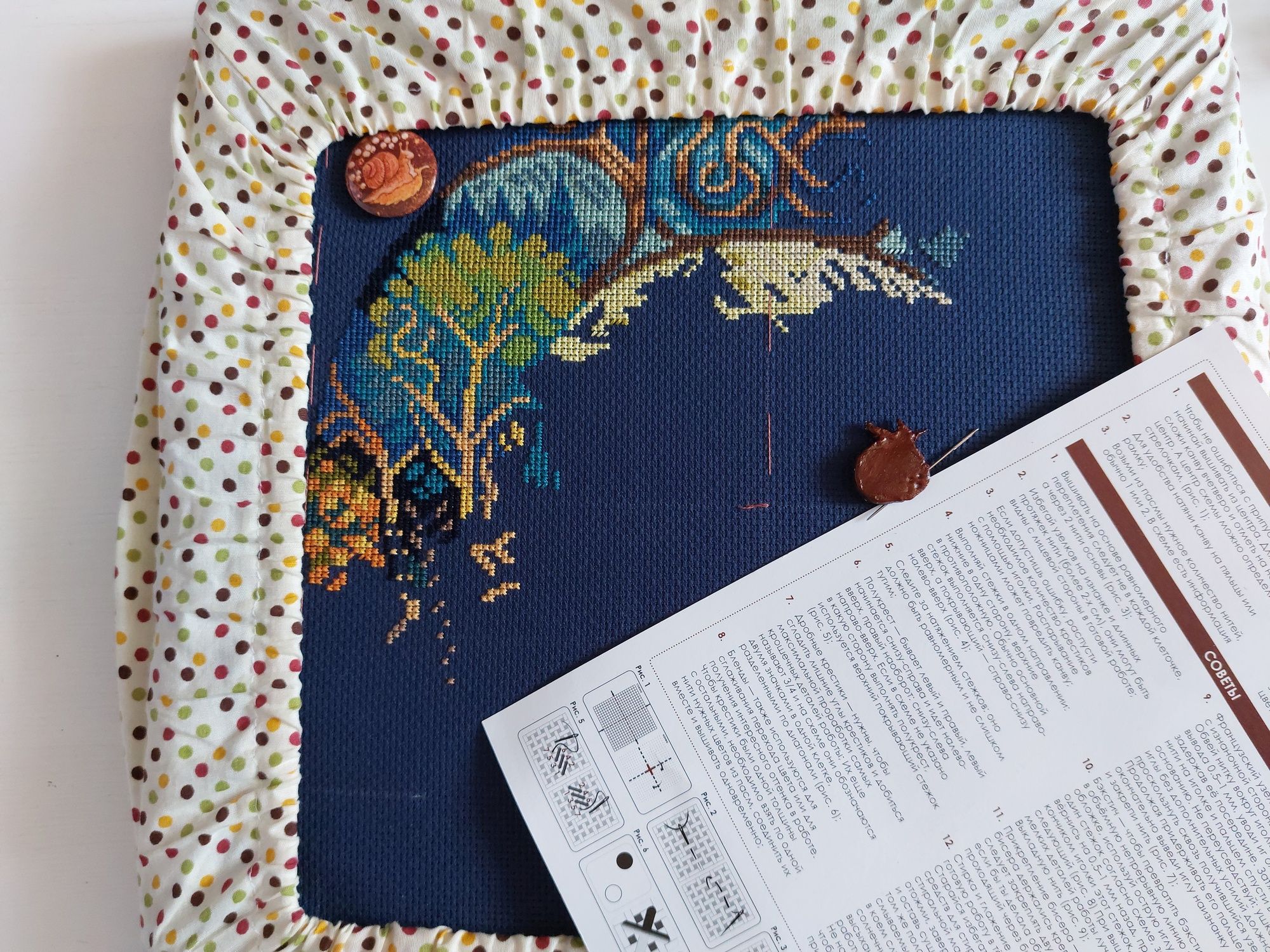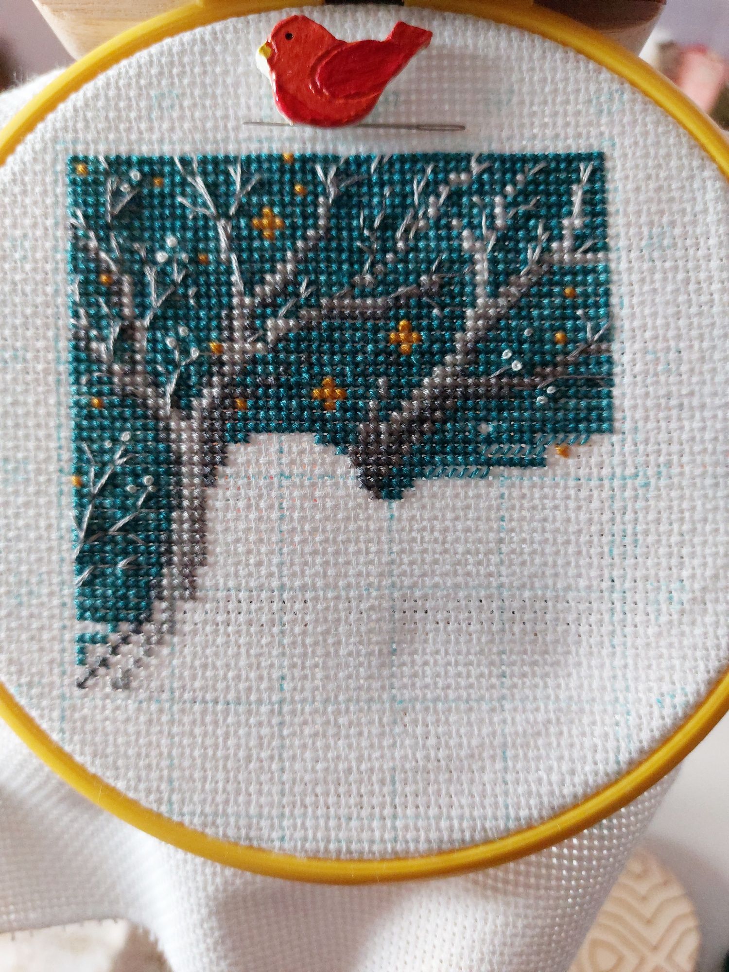11 августа Всем привет! Так-с, планировала рассказать о навышитом пару недель назад, но не получилось. Что ж, зато принесла большую груду всякого-разного) Начну с неизменного представителя моих отчётов. Несравненный... Flaming Kapok, Xiu Crafts. Продолжение. Было: Стало: Как-то раз говорила, что ствол вышивать не скучно. Забудьте. Я его еле домучила. Вообще, кажется, пресытилась уже этой вышивкой. Весь июль металась между «отложить на месяц или хотя бы на пару недель» и «там же скоро птички!», «если вышивать по 500 крестиков в неделю, то за 2 месяца закончу», «не хочу распяливать вышивку, а запяленную негде хранить». Как видите по фотографиям: птичек я уже вышила, и дальнейшая судьба вышивки опять подвисла в воздухе. Кстати, первое фото «стало» - это итог июля, а второе фото «стало» - итог первой трети августа Так что, теперь я точно пресытилась процессом. Надеюсь, не надолго. Ах, да. Эта вышивка загубила ещё одну иглу, итого на её счету уже 5 игл. Первый раз у меня такое) Ещё один представитель продвижений... Озеро, Мир вышивки. Продолжение. Было: Стало: Ровно спустя месяц после старта Болотце перешло в основной процесс выходного дня. Игла и нитки скользят как по маслу - полный восторг! Один минус, иногда приходится хвосты подтягивать, а то норовят выскользнуть)) Пока ещё вышиваю рамочку, но цвета так нравятся, так нравятся! Сплошное наслаждение! А теперь к процессам, которые нас покидают (не совсем, а только как процессы) Дом в горах, Кларт. Финиш! Внепланово нарисовались свободные вечера и овечки внезапно пришли к финишу. Бекстич оказался не таким контрастным, как на обложке, ну да ладно. Главные тут - овечки, а они прекрасны! Такие крохотные (23 крестика на двоих), а такие ми-ми-милые!! Уже оформились и поселились к своим подружкам) Мой велосипед, Изабель Вотье. Финиш! Вполне ожидаемый и закономерный финиш. Даже перешила виднеющийся в дали противоположный берег, вот такая я молодец. Фото «до» перешивания, правда, почему-то нет, но верьте на слово стало лучше) И сразу оформила работу. Пришлось замерять ширину рамы у Маяка, и искать что-нибудь максимально похожее, т.к. производителя рамочки для Маяка не было на маркетплейсе, уж не знаю временно или насовсем. Зато теперь они висят вместе (извиняюсь за ракурс: люстра искренне считает, что если что и стоит фотографировать в комнате, так только её абажур). И последний процесс на сегодня: Сердечное тепло, РТО. Новый процесс! Будет: Есть: Долго выбирала между зимними малютками от РТО и кактусом от Овна, что начать в качестве вечернего процесса вместо овечек, и остановилась на Сердечке. Решила, что кактус может быстро закончится, а Снежинка больше, чем Сердечко, поэтому выбрала средний размер. Схема тут прям вообще крупная, так что надеюсь, что никакие крестики, прячущиеся под бэком, от меня не ускользнут) А теперь перейду к другим категориям вышивок. Покупки! Мне очень понравились Белая цапля и Тихие дюны от Чудесной иглы. Сперва купила только Дюны, они оказались неожиданно большими. Если Дюны вышивать по 500 крестиков в неделю, то на вышивку уйдёт 10 месяцев! Они примерно как 4/5 «Вместе» от Xiu, которых я вышиваю уже 9 месяцев. Куда в этот полупрозрачный сюжет запихнули столько крестиков, я не знаю (знаю, конечно, там всё, что белое (облака, песок) - всё вышивается. Поэтому покупку Цапли отложила, но так долго брела до форума и своей темы, что ус