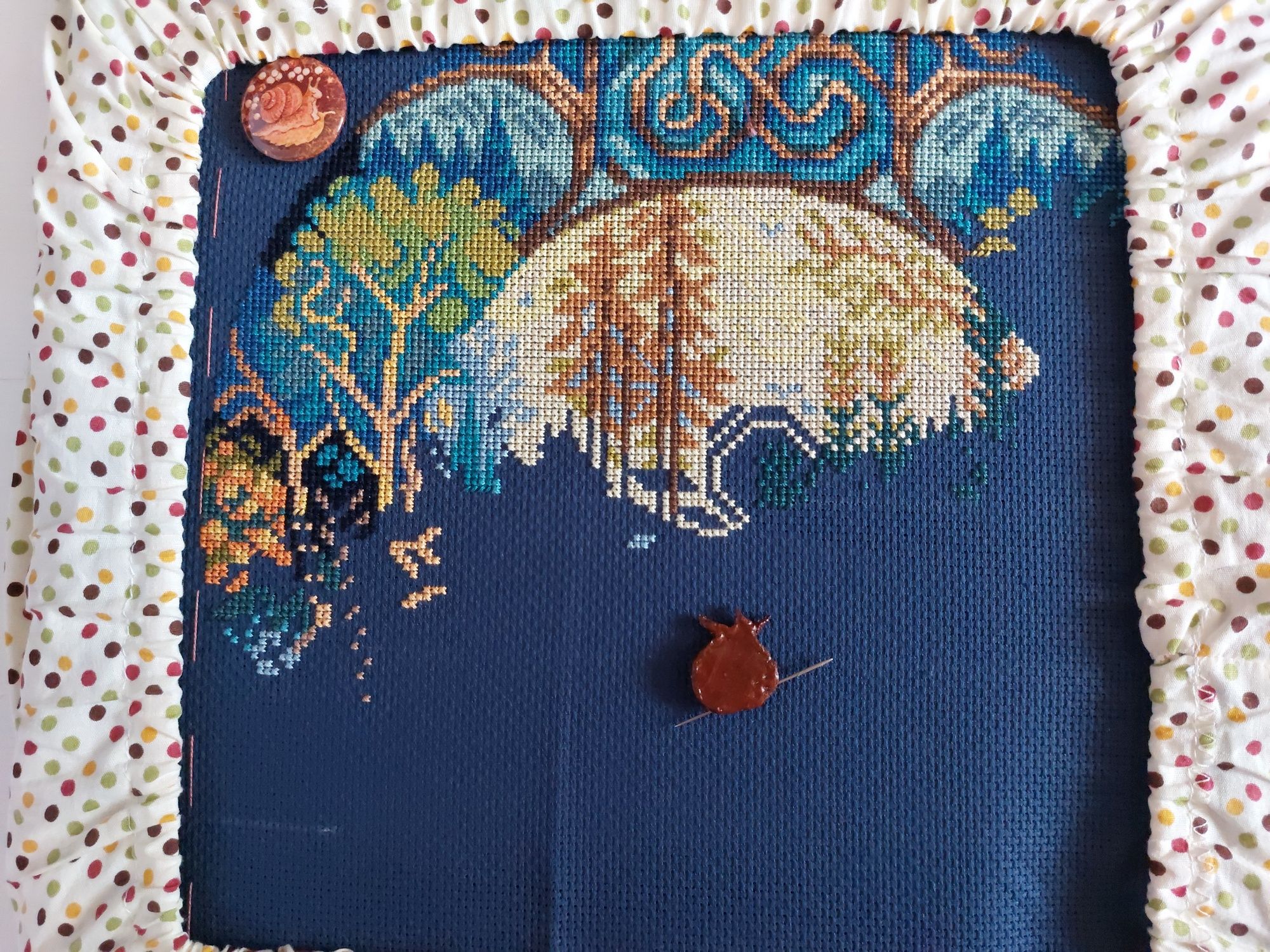 10 октября 01.10.2025 в 09:55, TheSunniestDay сказал(а): Всем привет! Месяц прошёл под флагом«синих» процессов) Синий номер раз! Озеро, Мир вышивки. Продолжение. Было: Стало: Тут всё стабильно. Процесс стал «основным», а потому заметно прибывает. Единственное, не могу отделаться от ощущений, что жёлтое небо похоже на луну. Надеюсь, это пройдёт когда вышью больше) Синий номер два! Сердечное тепло, РТО. Продолжение. Было: Стало: Тут, конечно, стало появляться красное сердце, но голубые оттенки по-прежнему превалируют. Синий номер три! Лето, по книге «Вышивка крестом из страны чудес». Финиш! В оформлении истина в цветах где-то посередине: В итоге по ключу осталось вышитым только купол медузы, остальное всё заменила, начиная с основы. До сих пор не уверена в белом бэкстиче (который на самом деле голубой), но менять что либо уже поздно, т.к. вышивка сразу оформилась. Очень нравится цвет рамы - цвет почти в тон основы. И особенно нравится как выделяется вышивка - будто серебрится, особенно русалка. И синий - номер четыре! Павлин, Панна. Новый процесс! Будет: Есть: Только начала, а потом с ужасом обнаружила, что вышивка на самых больших снапах не влезает в рукодельный чумодан не из-за подвёрнутой основы (как я думала, когда вышивала птиц от Xiu), а из-за размера снапов. Это стало ударом, от которого я никак не оправлюсь и всё никак не перепялю павлина во что-нибудь поменьше)) И наконец, синяя покупка) Точнее тут только обложка голубая. И пара домиков голубые. Посмотрела я у Нади процесс и решила, что мне эти домики жизненно необходимы. До этого они меня так не цепляли) Разбавлю синеву не вышивальным. Знакомьтесь, это барбарисик, ему, если не ошибаюсь 2 годика исполнилось с момента высадки. И вот пошла третья осень и он впервые дал плоды)) Вот так стремительно прошёл сентябрь, в отличии от августа) Всем спасибо! Леночка, с продвижениями, озеро очень красивое получается! И с началрм нового процесса. Павлин шикарный. TheSunniestDay сказал(а) спасибо Поделиться сообщением Ссылка на сообщение