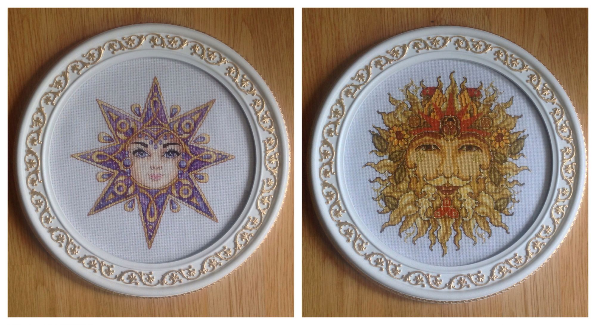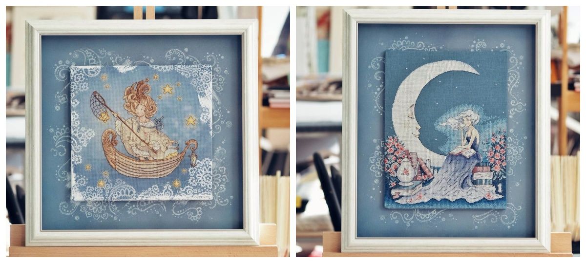 19 октября 2018 Добрый день! Это просто продолжение праздника после Формулы Рукоделия, столько красоты, даже унылая осень отходит на второй план! 1. Моя сказочная парочка Ловец звезд (Олли) от МП студии и Лунная Соната (Луна) от Черепановой Натальи. Обе работы дались мне не просто. Олли из-за чудовищного бэка, разработанного не для Аиды и нехватки ниток, а Луна из-за темного льна 32 каунта (куда я больше не иглой). Сначала был вышит Олли, но увидев, Лунную Сонату, я поняла, что не смогу жить спокойно, этот дуэт олицетворяющий приятные сновидения сильно запал мне в душу! Казалось очевидная идея для оформления появилась у меня не сразу, но отправляя вышивки в мастерскую я совершенно точно знала, чего я хочу и здесь нет случайностей. Цвет фона-паспарту и бабушкины кружева помогли мне "подружить" эти два сюжета, а так же цвет фона сделал холодную гамму Луны теплее, оформление вышивки с дистанцией здесь очень уместно, она выводить на первый план героя и служит продолжением волшебного неба, вытканного бабушкиными сказками вместо звезд. Если у Вас есть желание познакомиться с этими персонажами чуть ближе и увидеть их как вижу их я, то милости прошу в мою тему, https://forum.stitch.su/topic/4470/?do=findComment&comment=1730155 . там вы узнаете как Олли помогает детям ловить звезды, которые исполняют желания, а так же чем закончилось неожиданно путешествие Феи Луны. 2. Финист, Ясный Сокол и его невеста Аленушка, герои любимой сказки и потрясающего детского фильма. Очень рада, что смогла найти для них удачные образы, Звездочка от Марии Бровко и Солнце-Батюшка от Джоан Эллиот. С самого начала хотела выбрать для них что то лаконичное и кругленькое, и оформление получилось им под стать, девочкам оно напомнила сказочную тарелочку с наливным яблочком, да и мне тоже)) 3. Ловец Звезд от Мп Студии, он же Олли. Добрый сказочный герой, который помогает детям ловить звезды, получил логичное оформление, цвет фона-паспарту раздвинул границы, а оформление с дистанцией вынесло на первый план самого героя и служит продолжением волшебного неба, вытканного бабушкиными сказками вместо звезд. За время вышивки у меня получилось небольшая история о нем, которую вы может прочитать в моей теме. https://forum.stitch.su/topic/4470/?do=findComment&comment=1730155 Zheneva, svetuek, mamatata и 150 других сказали спасибо Поделиться сообщением Ссылка на сообщение